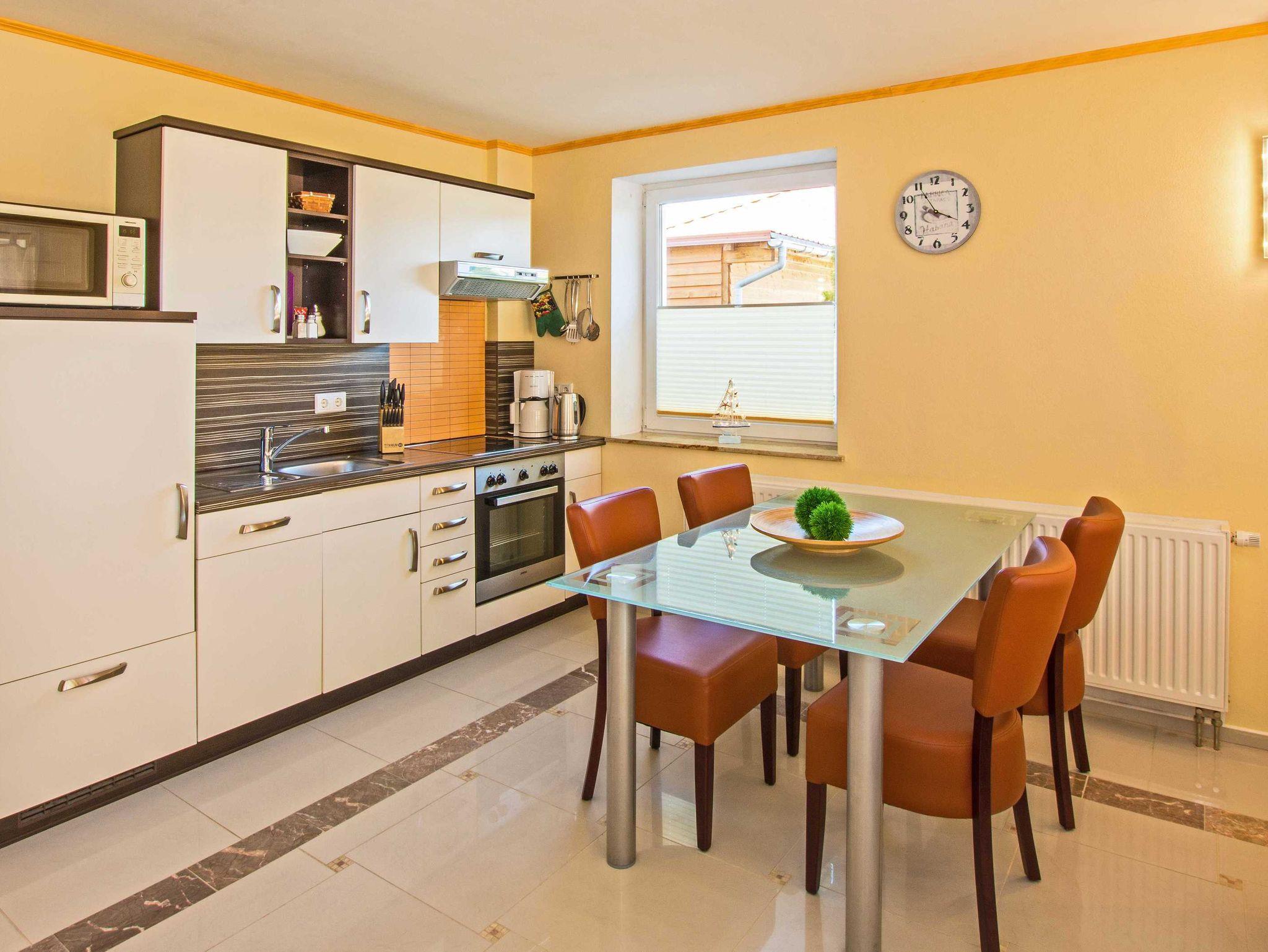 Nehmen Sie Platz auf den beiden gemütlichen Sofas im offenen Wohnbereich, die Ihnen die Sicht auf den Fernseher und hinaus durch die bodentiefen Fenster auf die Terrasse . Eines der beiden Sofas lässt sich als Schlafbett für eine weitere Personen ausziehen. Die Küchenzeile, bestehend aus Backofen, Herd mit Ceranfeld, Kühlschrank mit Gefrierfach, Geschirrspülmaschine, sowie Kleinelektrogeräten wie einer Mikrowelle, Kaffeemaschine, Toaster und Wasserkocher steht vor dem großen Esstisch mit vier Stühlen. Zu Ihrer Unterhaltung stehen Ihnen ein 3D 40“Flat TV mit Blue-Ray HiFi-Anlage zur Verfügung. Der Kamin schafft in den Wintermonaten eine wohlige Atmosphäre. Das maritime Badezimmer stellt Ihnen eine gläserne Duschkabine, ein unterbautes Waschbecken mit Spiegel und Kosmetikspiegel, Haartrockner, Bidet und WC bereit.