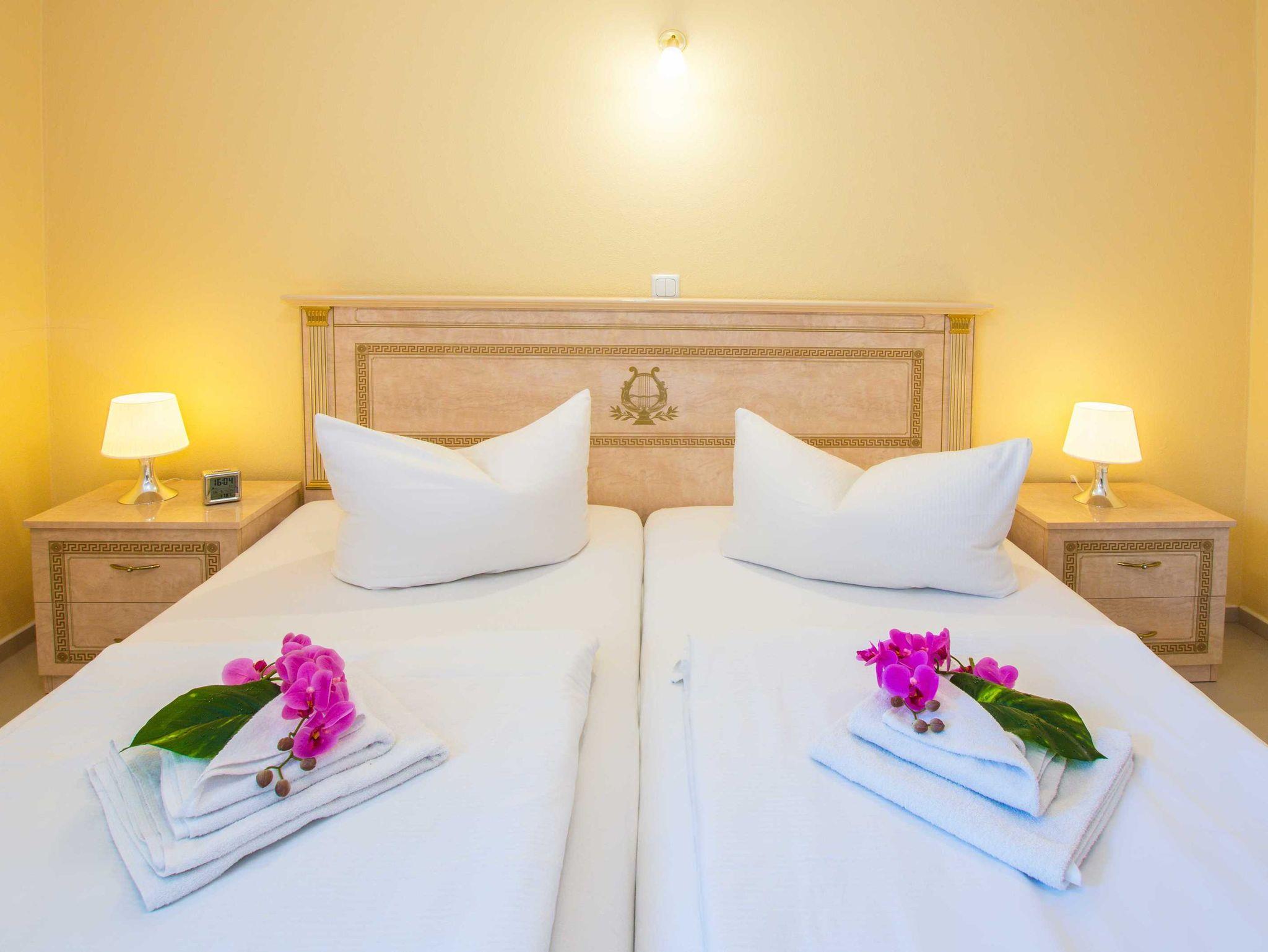 Jede der Ferienwohnungen ist ein gemütliches Zweiraumapartment mit einer großzügigen Wohnfläche von 50 Quadratmetern. Die Wohnung Nizza im 2. Obergeschoss ist perfekt für bis zu 2 Gäste plus Baby, während die anderen vier Wohnungen (Barcelona und Granada im Erdgeschoss, Pisa und Florenz im 1. Obergeschoss) Platz für bis zu 3 Gäste plus Baby bieten. Genießen Sie die exklusiv gestalteten Schlafzimmer und die bequeme Schlafcouch in den Wohnzimmern, die in einem warmen südländischen Flair erstrahlen und auch in der kalten Jahreszeit ein angenehmes Raumklima schaffen. In vier der Wohnungen (die im Erdgeschoss und 1. OG) sorgt ein Kamin im Wohnbereich für zusätzliche Gemütlichkeit. Der Wohnbereich ist mit modernem Komfort ausgestattet, darunter ein 40 3D Flat TV, eine Hifi-Soundanlage mit Blue-Ray Player und hochwertigem Mobiliar. Die voll ausgestattete Küche lässt keine Wünsche offen. Die maritim gestalteten Bäder verfügen über eine Dusche, WC, Bidet und einen Waschtisch mit Spiegel.