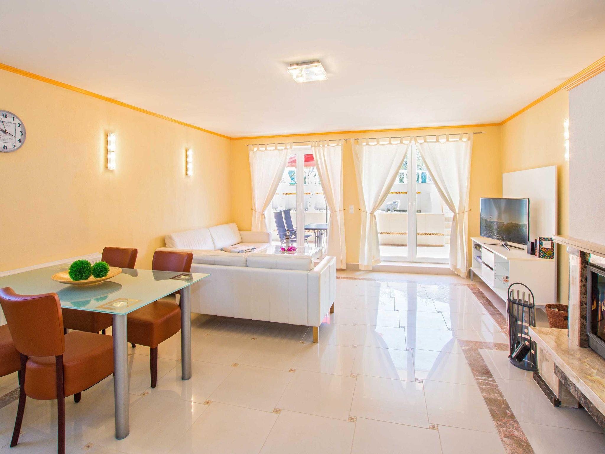 Über die Terrasse gelangen Sie direkt zum sonnenbeheizten gemeinschaftlichen Außenpool, dem Grillplatz, den Sonnenliegen, den Sitzmöglichkeiten sowie dem XXL-Strandkorb.