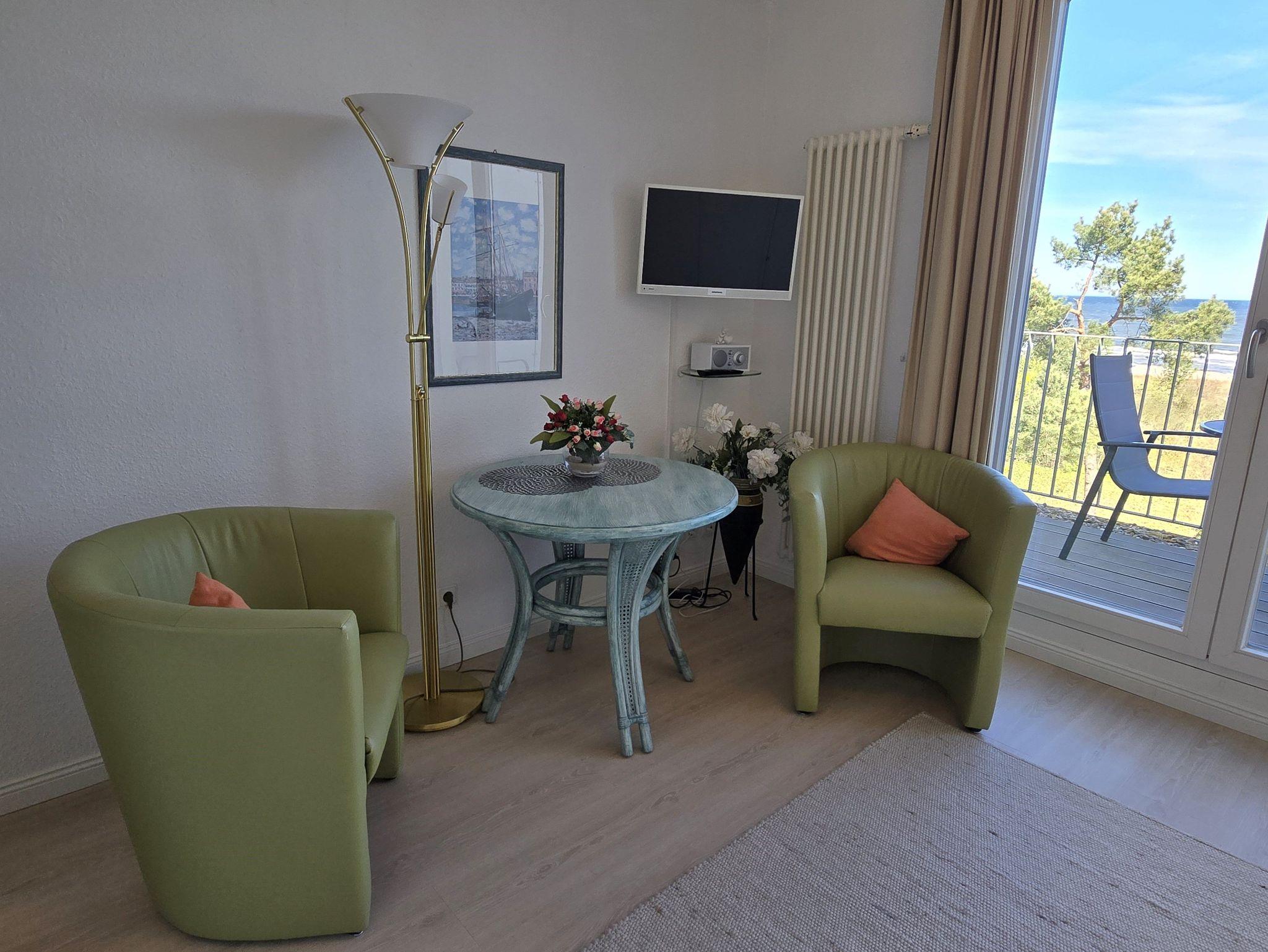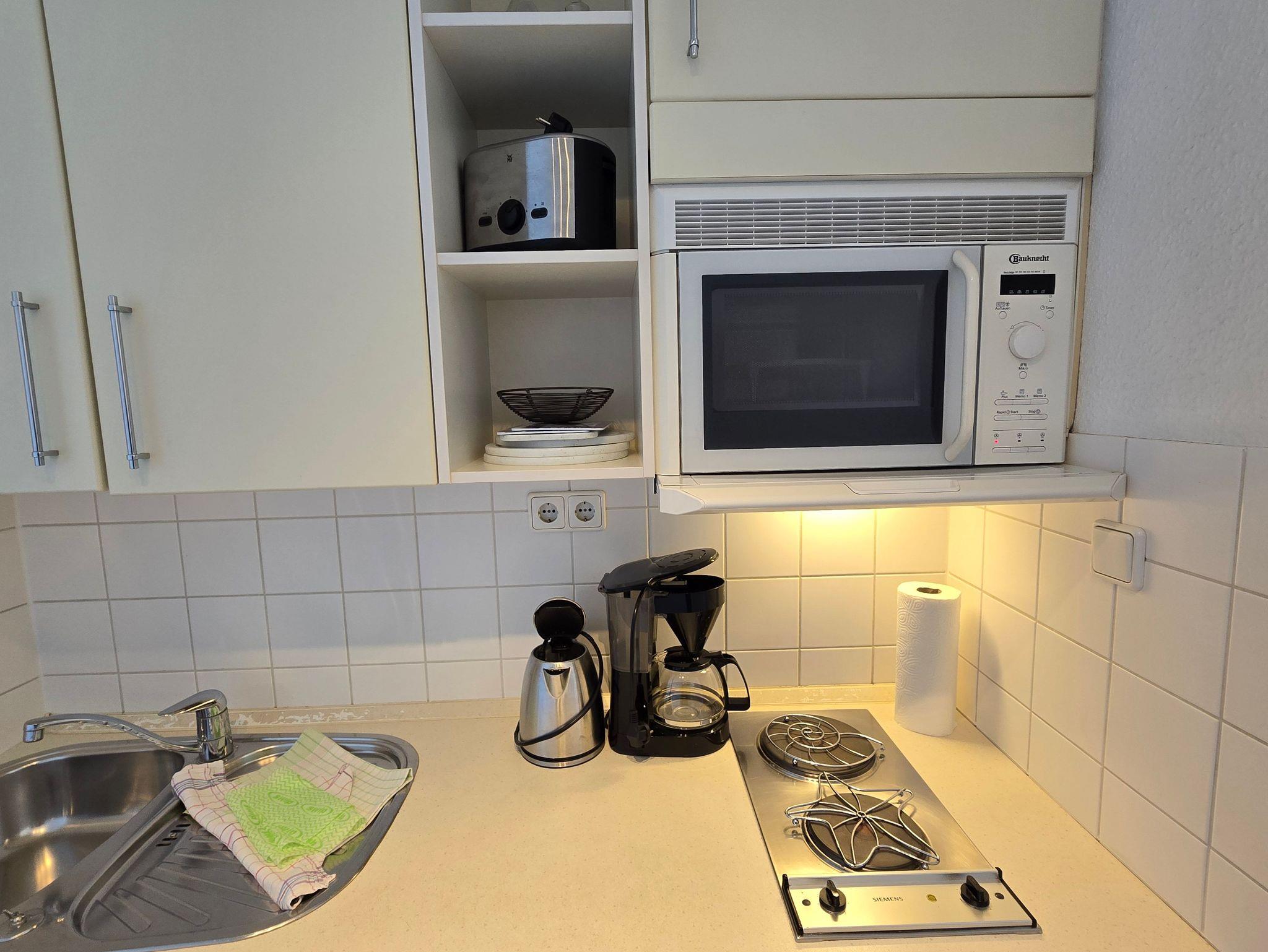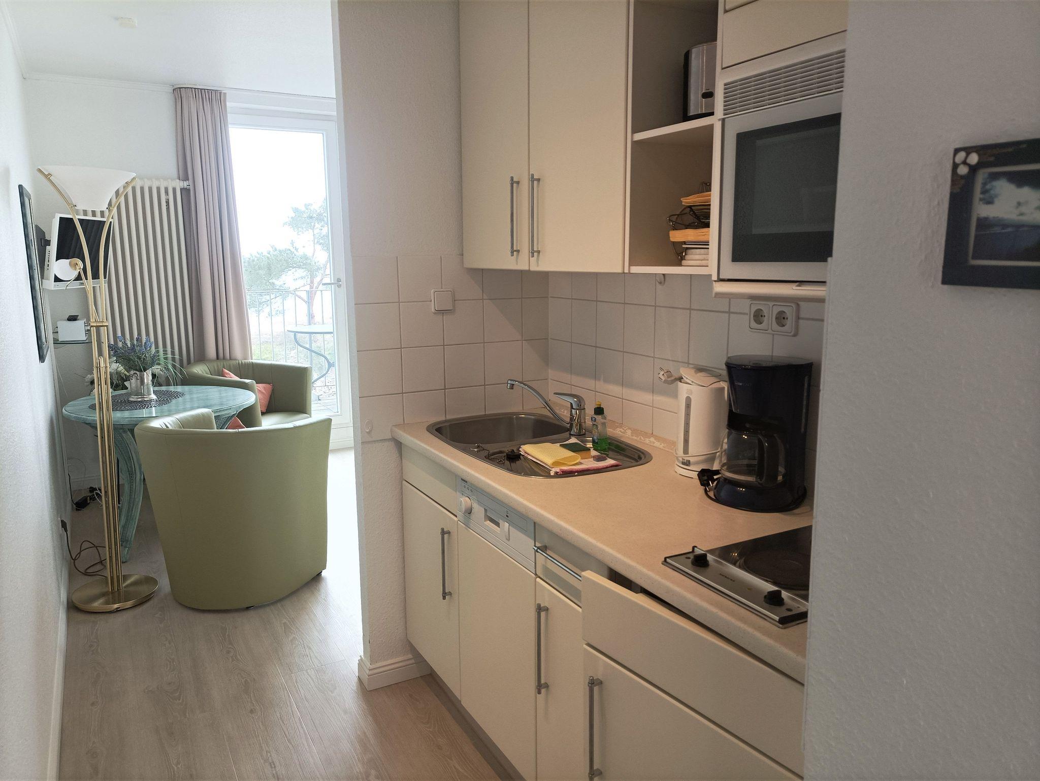 Komfortables, modernes NICHTRAUCHER-Appartement (30 qm) in der 3. Etage mit Balkon und einem herrlichen Meerblick. Ein kombinierter Wohn-u. Schlafraum, einer Küchenzeile (mit Geschirrspüler, Mikrowelle, E-Herd, Kühlschrank, Kaffeemaschine etc.), W-Lan, Kabel-TV, Radio, Safe sowie ein Bad mit DU/WC + Haarfön. Parkplatz. Die Erstausstattung Bettwäsche und Handtücher ist inklusive.