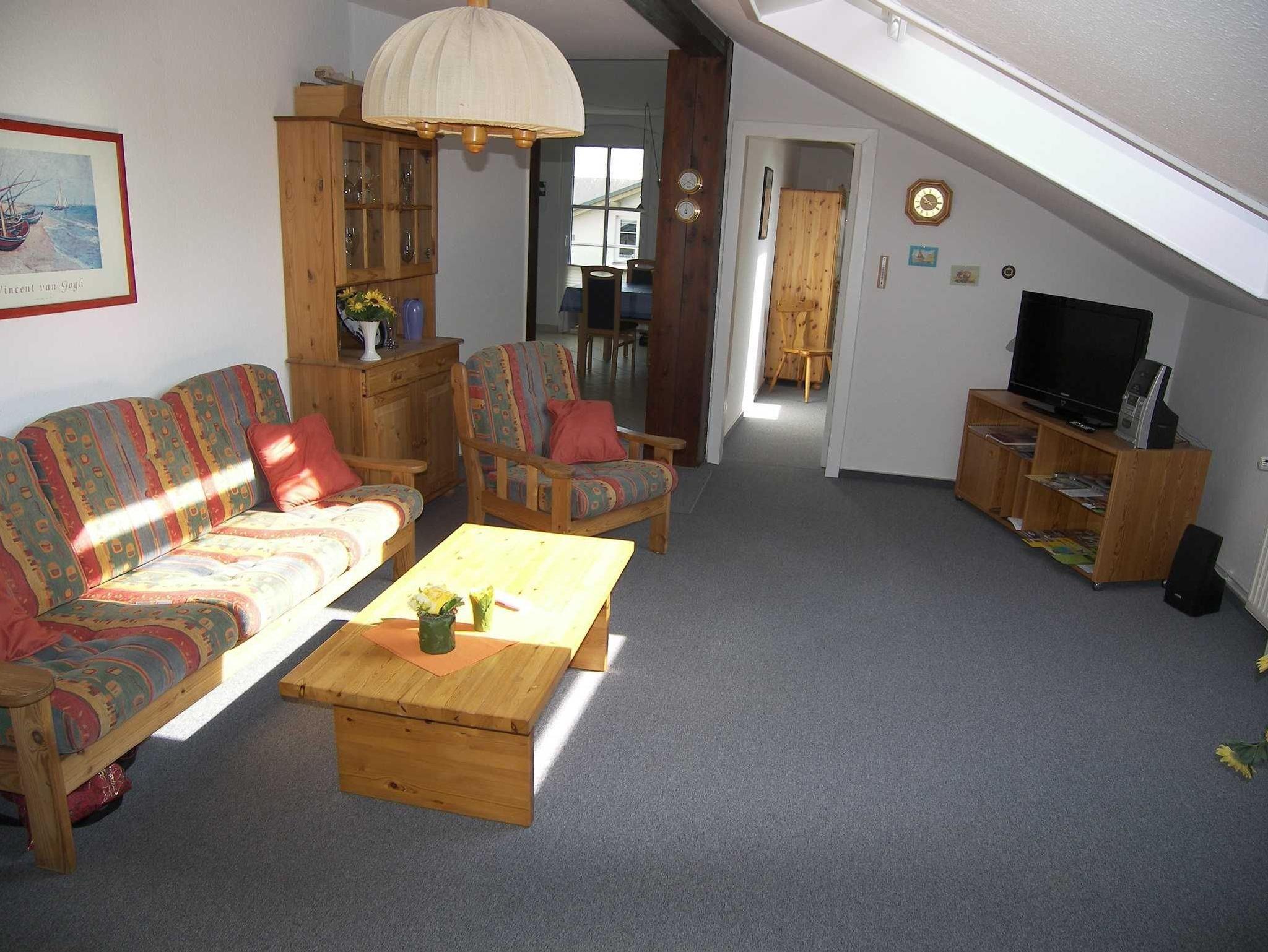 Die gemütliche 2-Raum-Ferienwohnung ist 55 m² groß und befindet sich im 2. Obergeschoss (Dachgeschoß) der Villa Christian. Sie verfügt über einen nach Osten ausgerichteten Balkon.