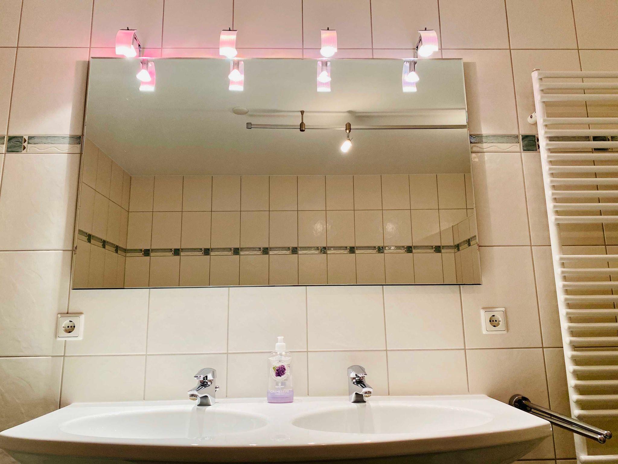 Die großzügige Ferienwohnung besticht durch ihre komfortable Ausstattung in jeder Hinsicht. Der gesamte Wohnraum ist mit Echtholzparkett ausgelegt (außer Bad), die Möbel sind absolut hochwertig. Das Wohnzimmer ist mit Sitzecke, Esstisch und Küchenzeile funktional und gemütlich zugleich. Beide Schlafzimmer haben ein Doppelbett und genügend Stauraum für Ihre Kleidung. Das Badezimmer ist mit Dusche , Wanne, Doppelwaschtisch, WC und Bidet auf die Bedürfnisse einer Familie eingerichtet. Tolle Terrasse mit großem Sonnenschirm, ein Stellplatz