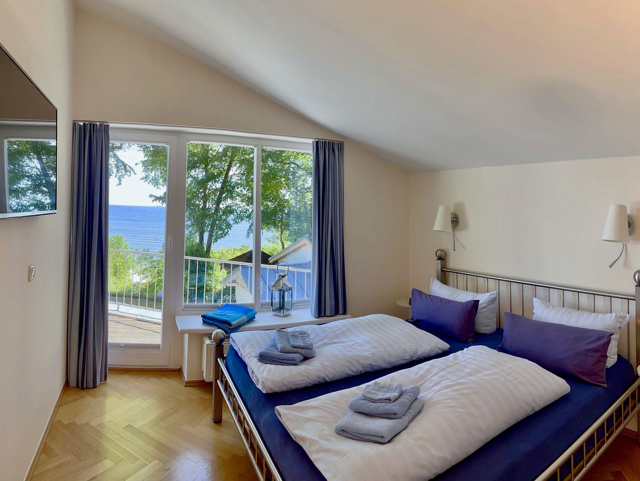 Sie bewohnen großzügig eine komplette Etage der Villa mit zwei Schlafzimmern und Bädern. Dabei genießen Sie die vorteilhafte Ausrichtung des Hauses mit dem herrlichen Meerblick auf der Nord-Ost-Seite und dem historischen Verandenvorbau auf der Süd-West-Seite, mit Sonnenschein bis in die Abendstunden. Da eine Etage aus zwei miteinander verbundenen Wohnungen besteht, kann durch Schließen der zweiflügeligen Verbindungstüren eine Trennung der Wohnbereiche vorgenommen werden. Ausgesuchte Möbelstücke und Bilder, Echtholz-Parkett - teils mit hochwertigen Teppichen belegt ? prägen den Stil des Hauses. Die Meerblick-Schlafzimmer sind mit manufakturgefertigten Edelstahlbetten, Einbauschränken incl. Safe, Flachbild-TV sowie Verdunklung und Insektenschutz ausgestattet. Komfortable Leder(Schlaf)couches in den Wohnzimmern können als zusätzliche Schlafgelegenheiten genutzt werden. Zum Inventar gehören weiterhin Smart-TV`s mit Soundbar - zur einfachen Verbindung mit dem Smartphone, iPad oder einem anderen bluetoothfähigen Gerät - sowie DVD-Player. Es steht eine komplett ausgestattete, in sich abgeschlossene Küche (Kühlschrank mit Gefrierfach, Backofen, Cerankochfeld, Dunstabzug, Mikrowelle, Toaster, Wasserkocher, Filter-Kaffeemaschine u. Nespresso-Kapselmaschine, Rührgerät etc.) zur Verfügung. In den meerseitigen Wohnbereich ist eine weitere komplett ausgestattete Küchenzeile integriert. Bei den Bädern handelt es sich um Tageslicht-Badezimmer, wobei ein Bad zusätzlich mit einer Badewanne ausgestattet ist.