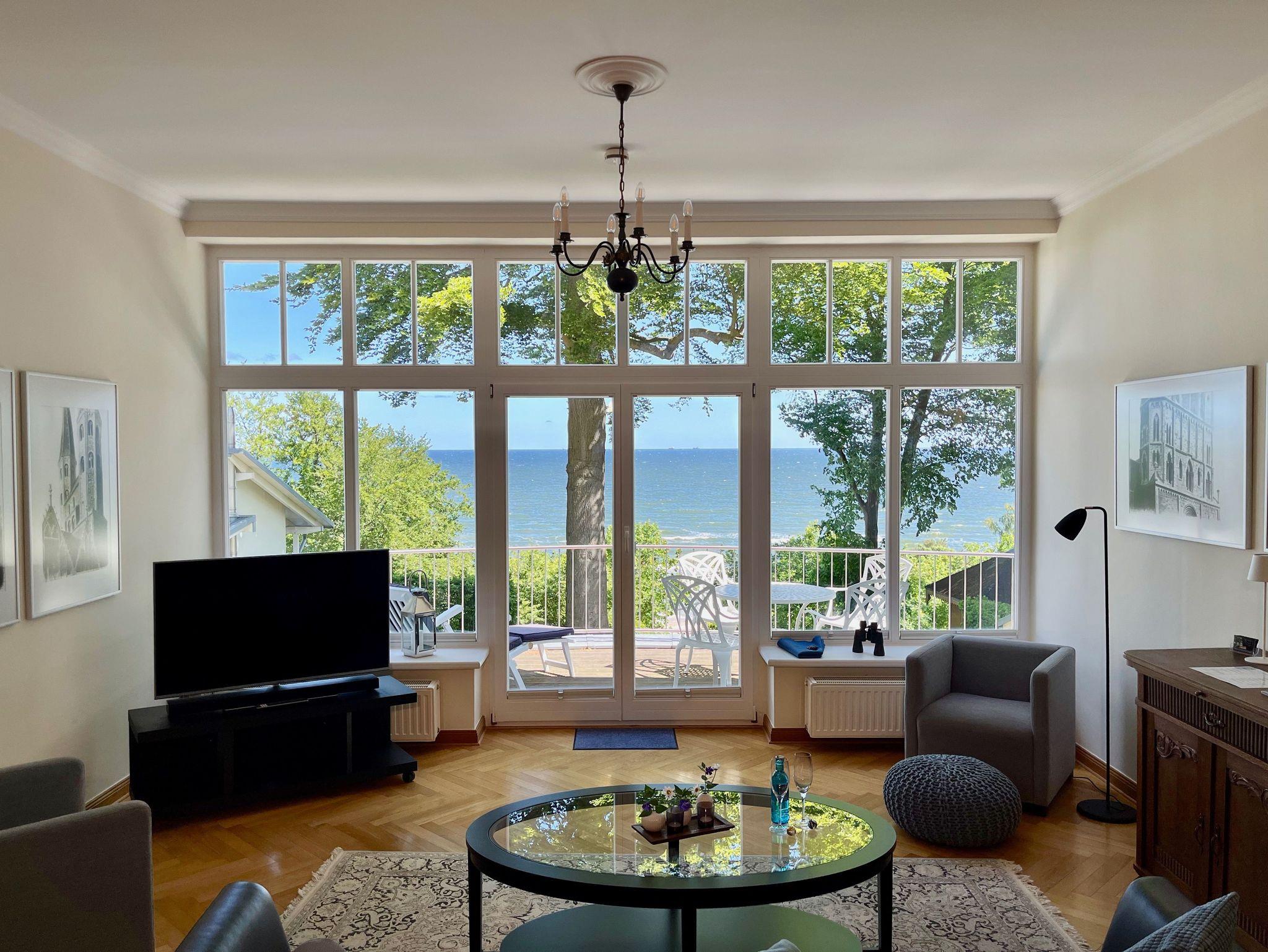 - 1 Wohnzimmer mit herrlichen Meerblick und großem seeseitigen Balkon