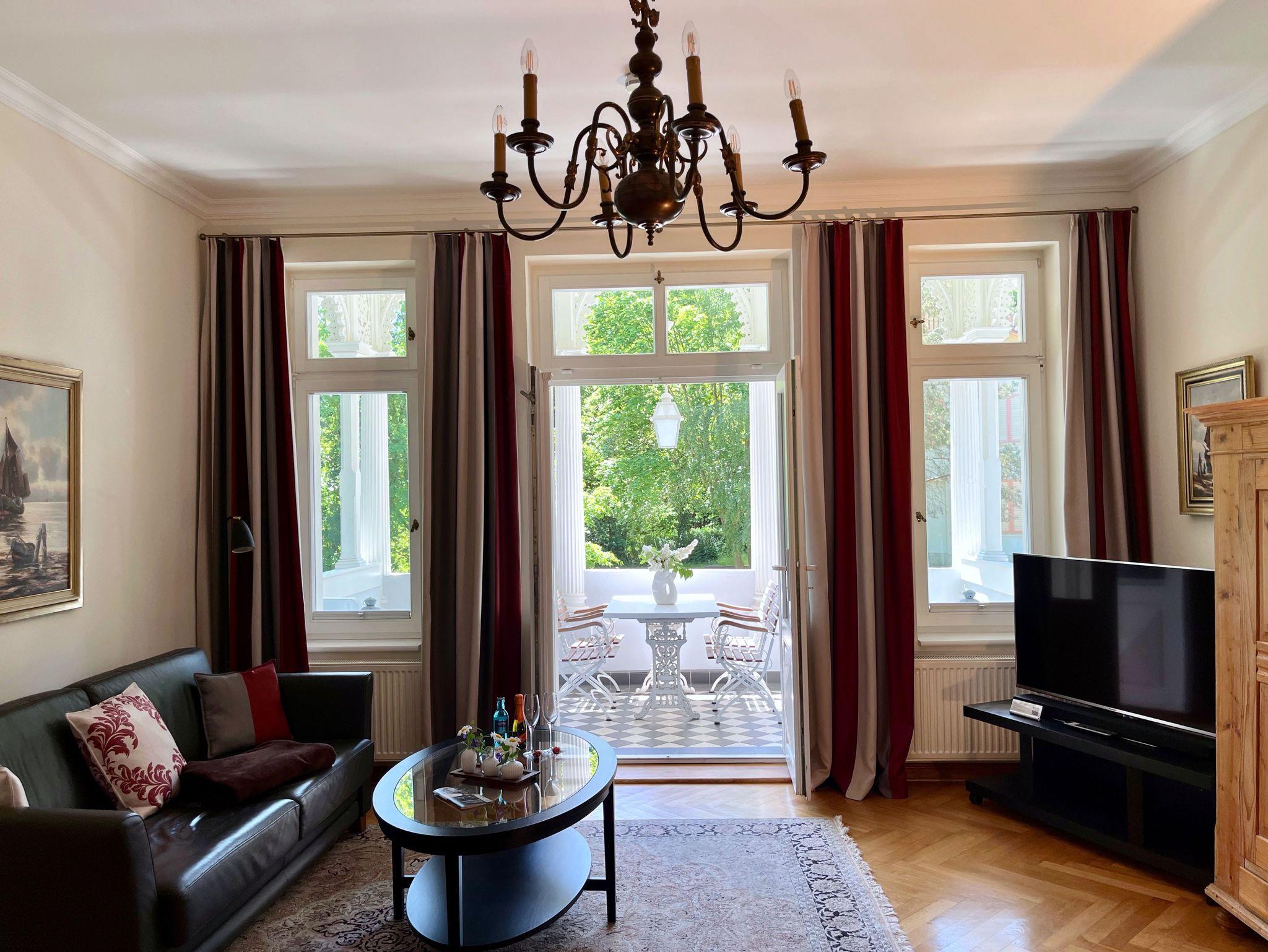 - 1 Wohnzimmer mit großer historischer Loggia auf der Süd-West-Seite