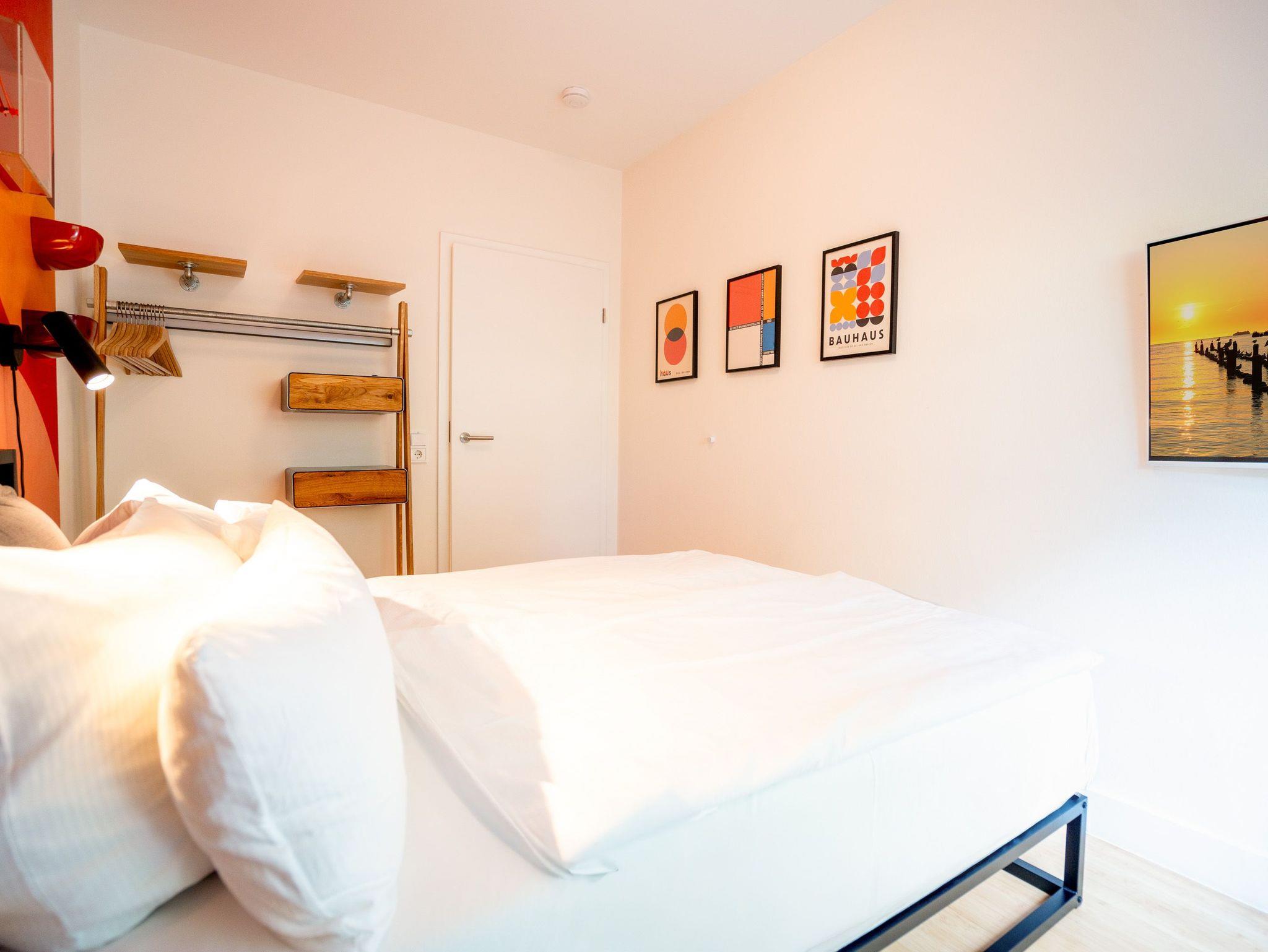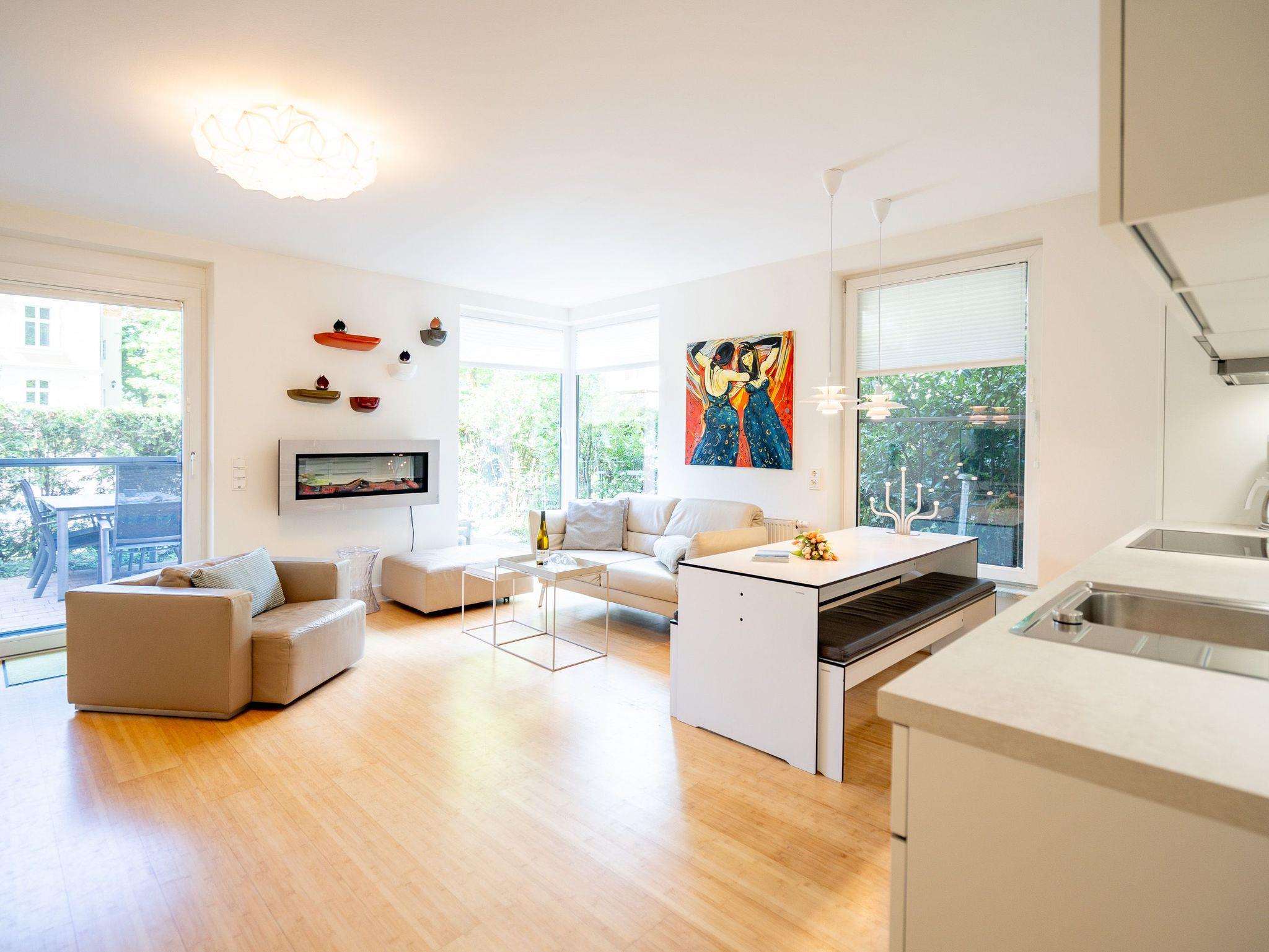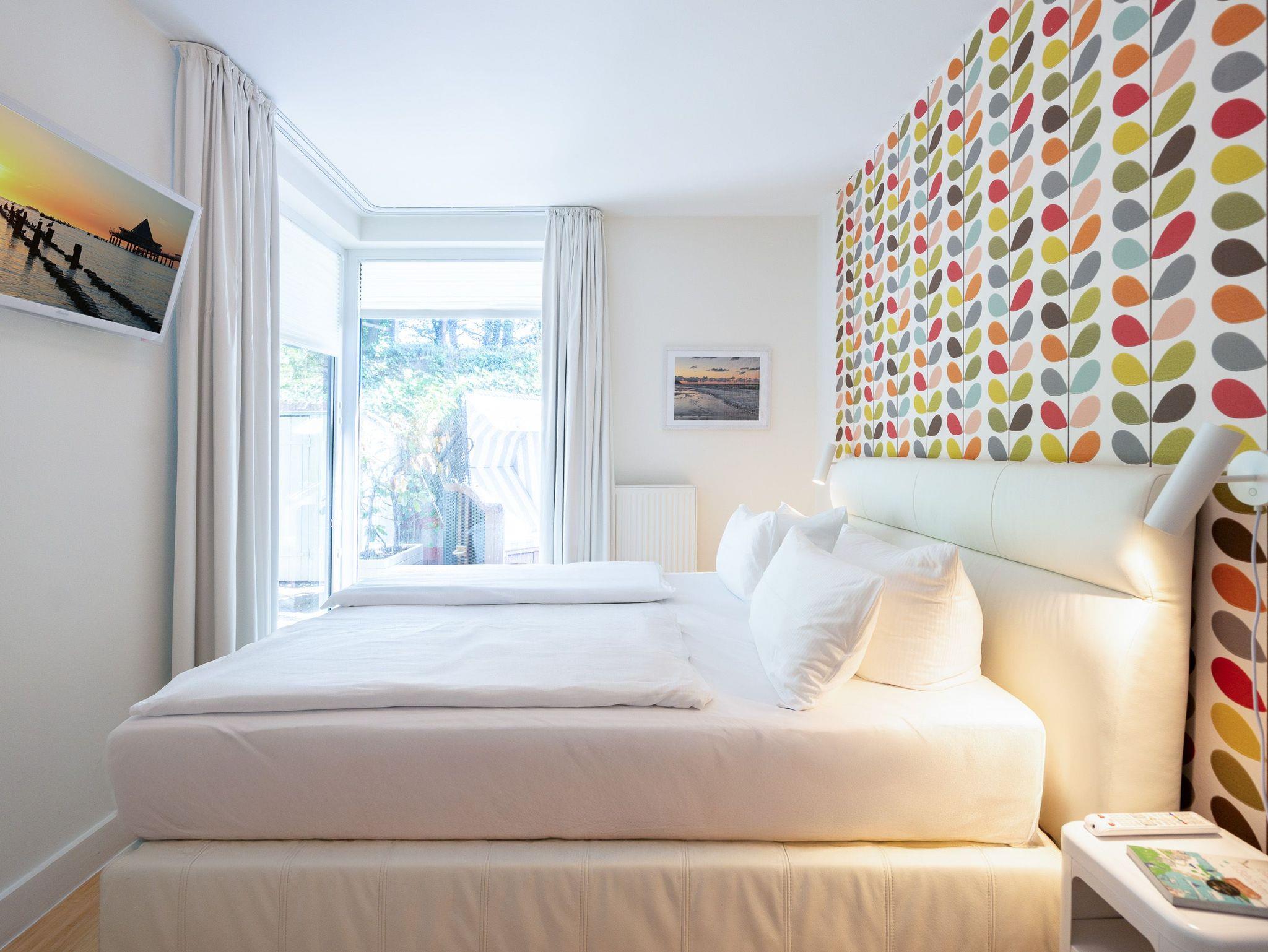 Wellness, Entspannung und die unmittelbare Nähe zum Meer machen die Erdgeschoss-Ferienwohnung 10 zu einem ganz besonderen Urlaubserlebnis. Die helle und modern eingerichtete Wohnung bietet drei stilvolle Zimmer, eine perfekt ausgestattete Küchenzeile mit großem Esstisch und gemütlichen Sitzbänken sowie einen Designer-Elektrokamin, der für eine behagliche Atmosphäre sorgt. Das luxuriöse Badezimmer verwöhnt mit hochwertigen Markenmöbeln, einem Doppelwaschtisch und einem Duschpaneel mit Fitness- und Massagefunktion. Ein besonderes Highlight ist die integrierte Tylö Infrarotsauna mit Farblicht, Touch-Bedienfeld, Bluetooth und Carbonstrahlern, die nach ausgedehnten Spaziergängen am Wasser oder an warmen Sommertagen wie auch in der kalten Jahreszeit für pure Entspannung sorgt. Das erste Schlafzimmer lädt mit einem komfortablen 1,80 m x 2,00 m Boxspringbett aus Leder, einem Smart-TV, einem geräumigen Schrank sowie einem angenehmen Blick in den angrenzenden Gartenbereich zum Träumen ein. Das zweite Schlafzimmer präsentiert sich in modernem Industrial-Design und bietet ein 1,40 m x 2,00 m Doppelbett sowie einen weiteren Smart-TV. Besonderen Komfort bieten die beiden großzügigen Terrassen: Während die hintere Terrasse zum sonnigen Frühstück einlädt, bietet die vordere den perfekten Platz für entspannte Nachmittage und gemütliche Abendstunden. Zwei Liegen, komfortables Außenmobiliar und ein Strandkorb sorgen für zusätzlichen Genuss. Alle Räume sind mit Insektenschutz ausgestattet, sodass ungestörte Erholung garantiert ist. Für Familien mit kleinen Kindern stehen auf Wunsch ein Kinderreisebett (ohne zusätzliche Matratze [&] Bettzeug) sowie ein Hochstuhl zur Verfügung. Damit der Urlaub von Anfang an entspannt beginnt, sind die Betten bei Anreise bereits bezogen und frische Handtücher liegen bereit. Genießen Sie einen erholsamen Urlaub in erster Reihe zum Strand ? ankommen, abschalten und wohlfühlen.