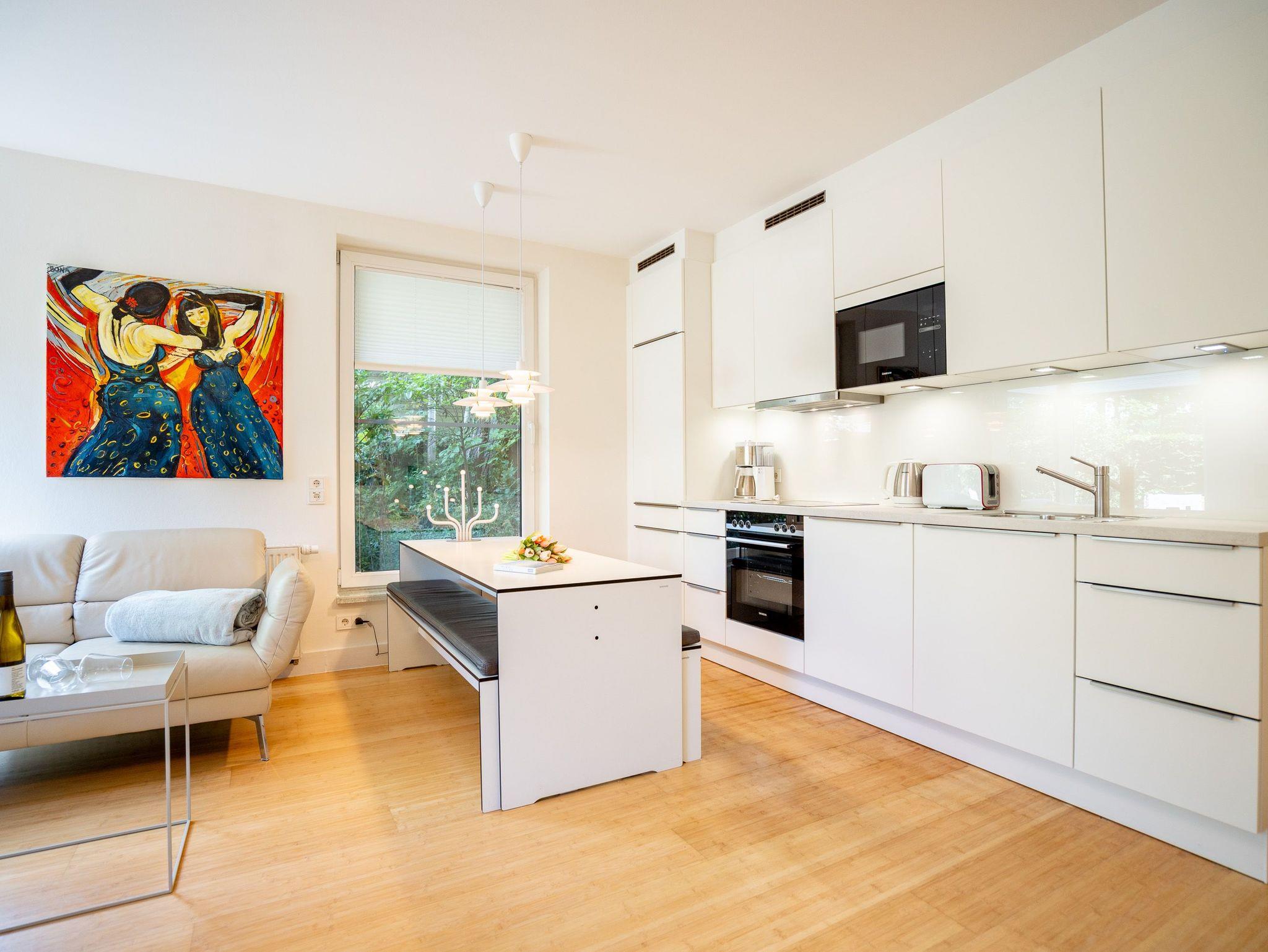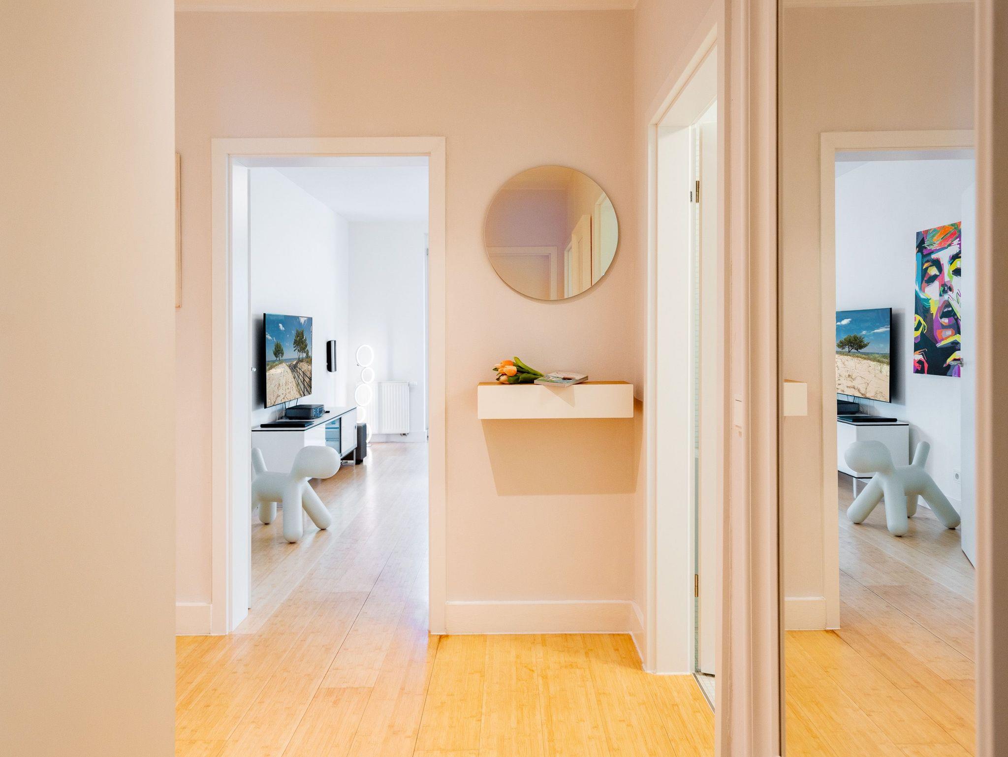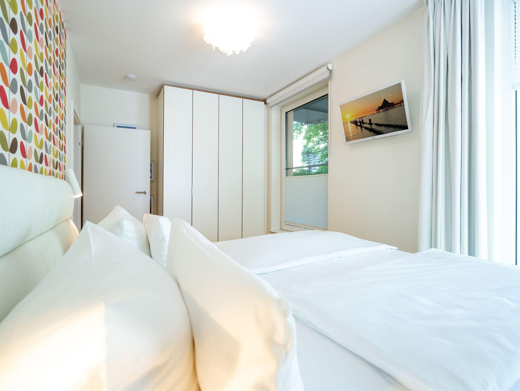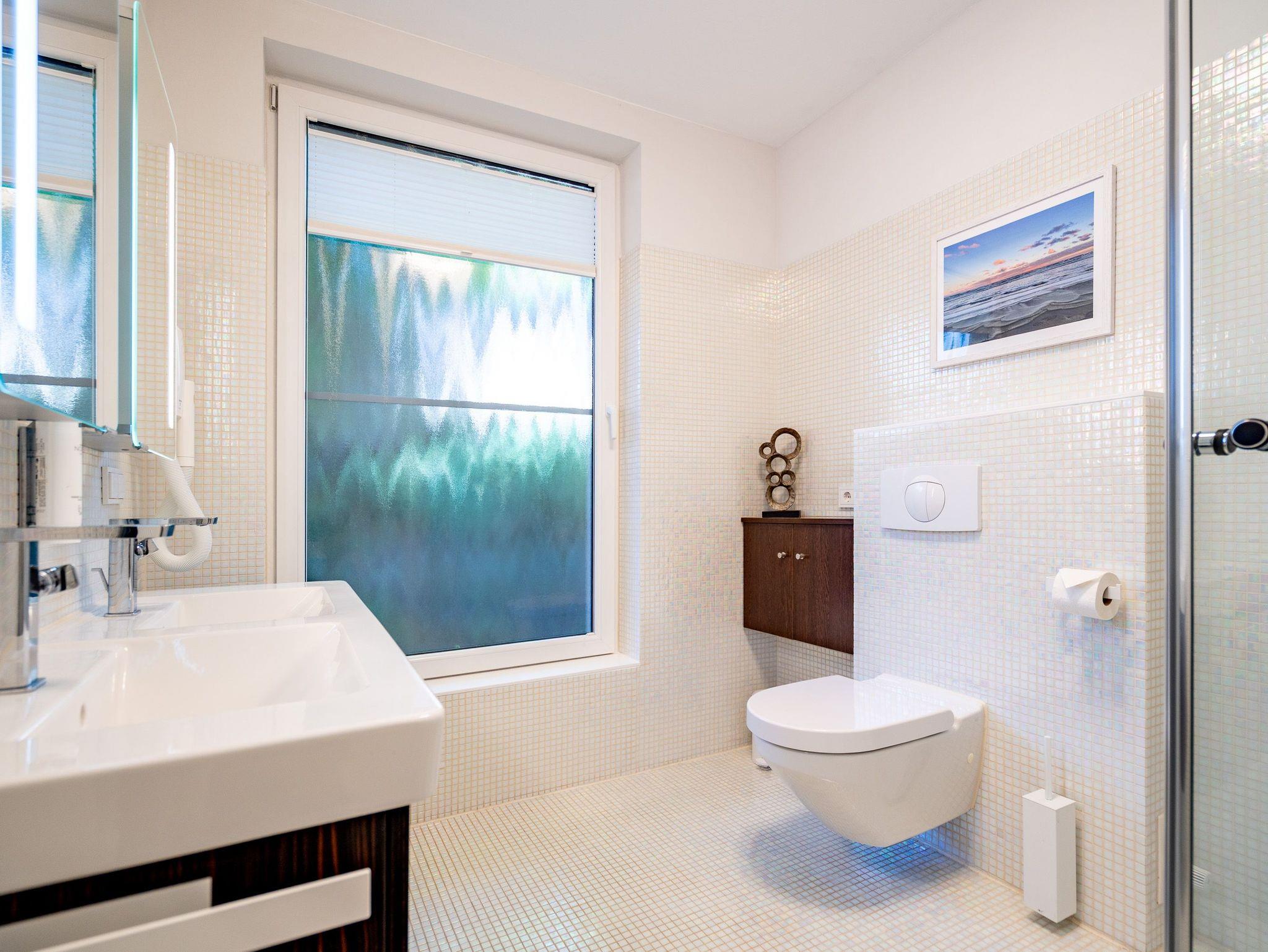 Wellness, Entspannung und die unmittelbare Nähe zum Meer machen die Erdgeschoss-Ferienwohnung 10 zu einem ganz besonderen Urlaubserlebnis. Die helle und modern eingerichtete Wohnung bietet drei stilvolle Zimmer, eine perfekt ausgestattete Küchenzeile mit großem Esstisch und gemütlichen Sitzbänken sowie einen Designer-Elektrokamin, der für eine behagliche Atmosphäre sorgt. Das luxuriöse Badezimmer verwöhnt mit hochwertigen Markenmöbeln, einem Doppelwaschtisch und einem Duschpaneel mit Fitness- und Massagefunktion. Ein besonderes Highlight ist die integrierte Tylö Infrarotsauna mit Farblicht, Touch-Bedienfeld, Bluetooth und Carbonstrahlern, die nach ausgedehnten Spaziergängen am Wasser oder an warmen Sommertagen wie auch in der kalten Jahreszeit für pure Entspannung sorgt. Das erste Schlafzimmer lädt mit einem komfortablen 1,80 m x 2,00 m Boxspringbett aus Leder, einem Smart-TV, einem geräumigen Schrank sowie einem angenehmen Blick in den angrenzenden Gartenbereich zum Träumen ein. Das zweite Schlafzimmer präsentiert sich in modernem Industrial-Design und bietet ein 1,40 m x 2,00 m Doppelbett sowie einen weiteren Smart-TV. Besonderen Komfort bieten die beiden großzügigen Terrassen: Während die hintere Terrasse zum sonnigen Frühstück einlädt, bietet die vordere den perfekten Platz für entspannte Nachmittage und gemütliche Abendstunden. Zwei Liegen, komfortables Außenmobiliar und ein Strandkorb sorgen für zusätzlichen Genuss. Alle Räume sind mit Insektenschutz ausgestattet, sodass ungestörte Erholung garantiert ist. Für Familien mit kleinen Kindern stehen auf Wunsch ein Kinderreisebett (ohne zusätzliche Matratze [&] Bettzeug) sowie ein Hochstuhl zur Verfügung. Damit der Urlaub von Anfang an entspannt beginnt, sind die Betten bei Anreise bereits bezogen und frische Handtücher liegen bereit. Genießen Sie einen erholsamen Urlaub in erster Reihe zum Strand ? ankommen, abschalten und wohlfühlen.