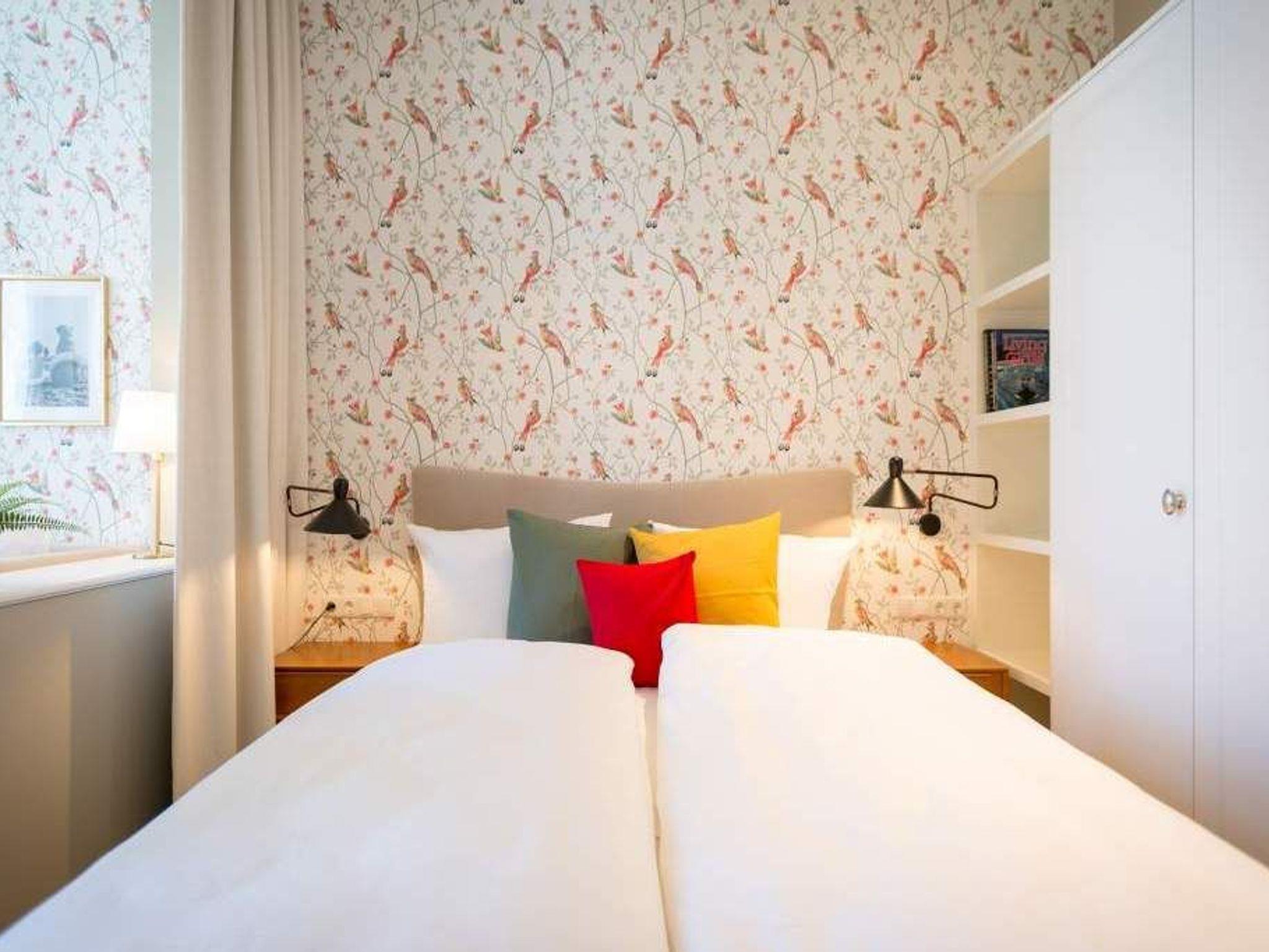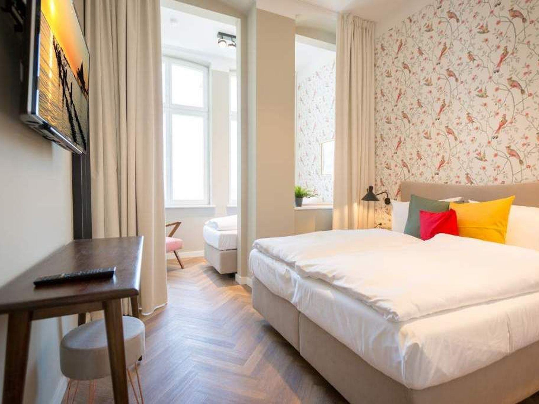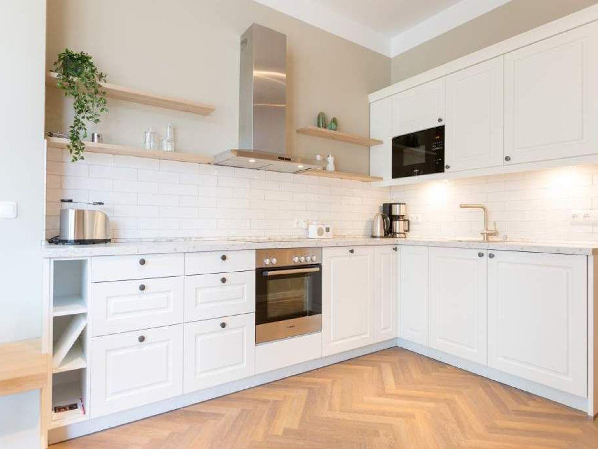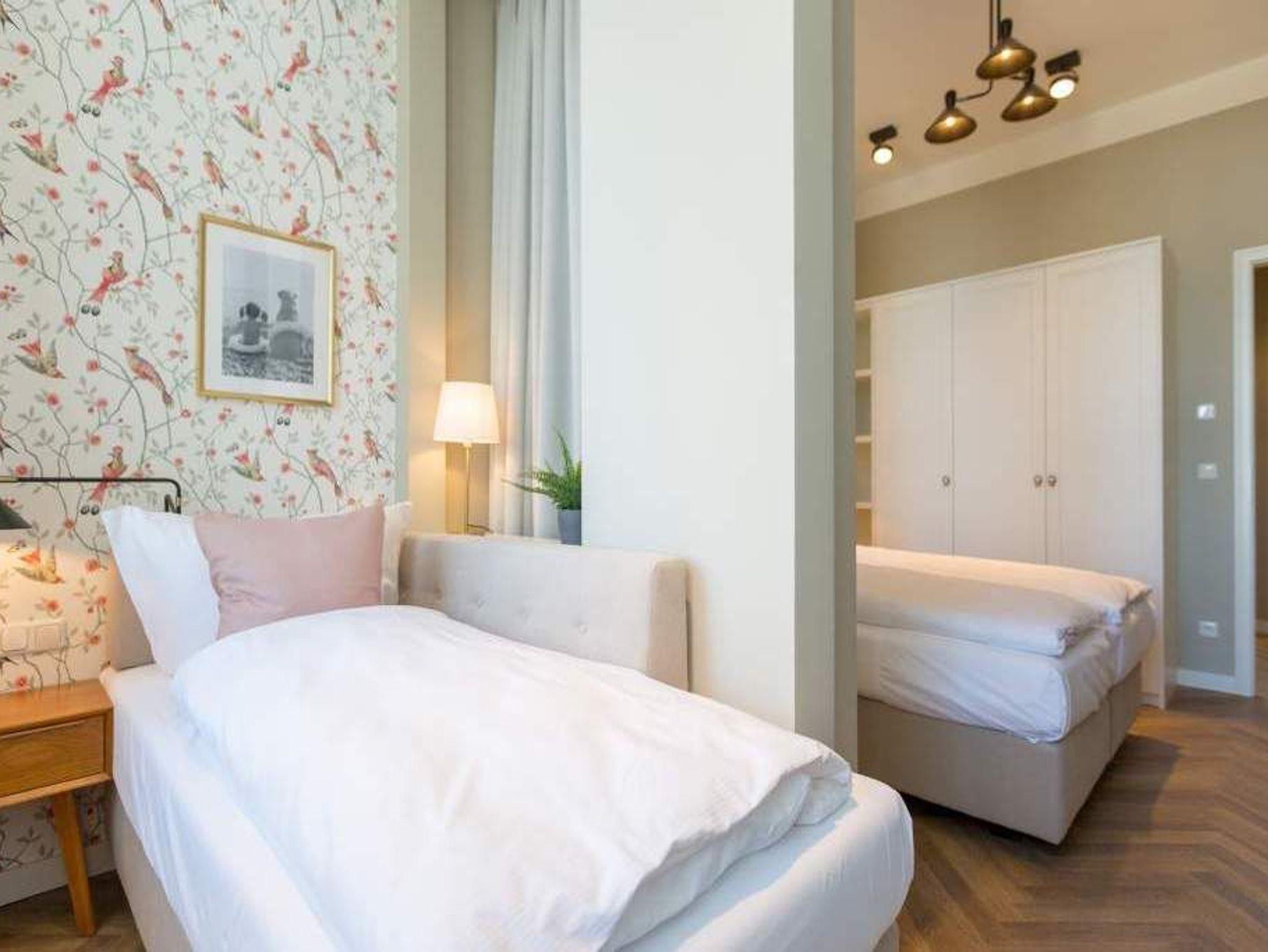 Ein gemütliches und in skandinavischem Design konzipiertes Urlaubsdomizil erwartet Auszeitfreudige im Appartement 4 im Obergeschoss der Villa Bellevue. Zweieinhalb stilvoll eingerichtete Zimmer bietet die 72 Quadratmeter große Wohnung. Hochwertige Materialien wie das edle Fischgrät-Parkett oder die stylischen Design-Möbel, der wunderschöne Gas-Kamin oder die edlen Tapeten geben Ihrem Urlaub einen exklusiven Rahmen. Bis zu drei Personen und ein Kleinkind bis drei Jahre (im Kinderreisebett) können es sich hier gut gehen lassen, am schönen Esstisch mit den Retro-Freischwingern dinieren oder auf der Sofalandschaft vor dem Kamin entspannen. Im Wohnzimmer sowie dem großen Schlafzimmer befinden sich Flat-TVs. Die Küche ist modern und voll ausgestattet. Markengeräte und erlesenes Geschirr machen das Kochen zum Erlebnis. Das Hauptschlafzimmer verfügt über ein komfortables Boxspringdoppelbett (1,60 m x 2,00 m) und einen großen, geräumigen Schrank. Zum Schlafzimmer gehört eine Veranda, in der ein zweites Boxspringbett (0,90 m x 2,00 m) in erholsame Urlaubsträume entführt. Das wahrhaft großzügige Badzimmer ? mit einer traumhaften Kombination aus Vintage- und Metrofliesen gestaltet ? bietet eine Regendusche, einen Waschtisch und ein WC. Tageslicht lässt diesen Raum schon morgens hell und freundlich erscheinen. Als kleines Schmankerl können Sie von hier aus genauso wie auch aus dem Wohnzimmer auf den Balkon treten. Atmen Sie hier die Morgensonne und die frische Brise, die von der nur 400 Meter entfernten Ostsee herüberweht, tief in sich ein. Damit Sie sich in Ihrem Urlaub um nichts kümmern müssen, sind die Betten für Sie bereits bezogen und Handtücher liegen bereit. Zu der Wohnung gehört ein Pkw-Stellplatz.