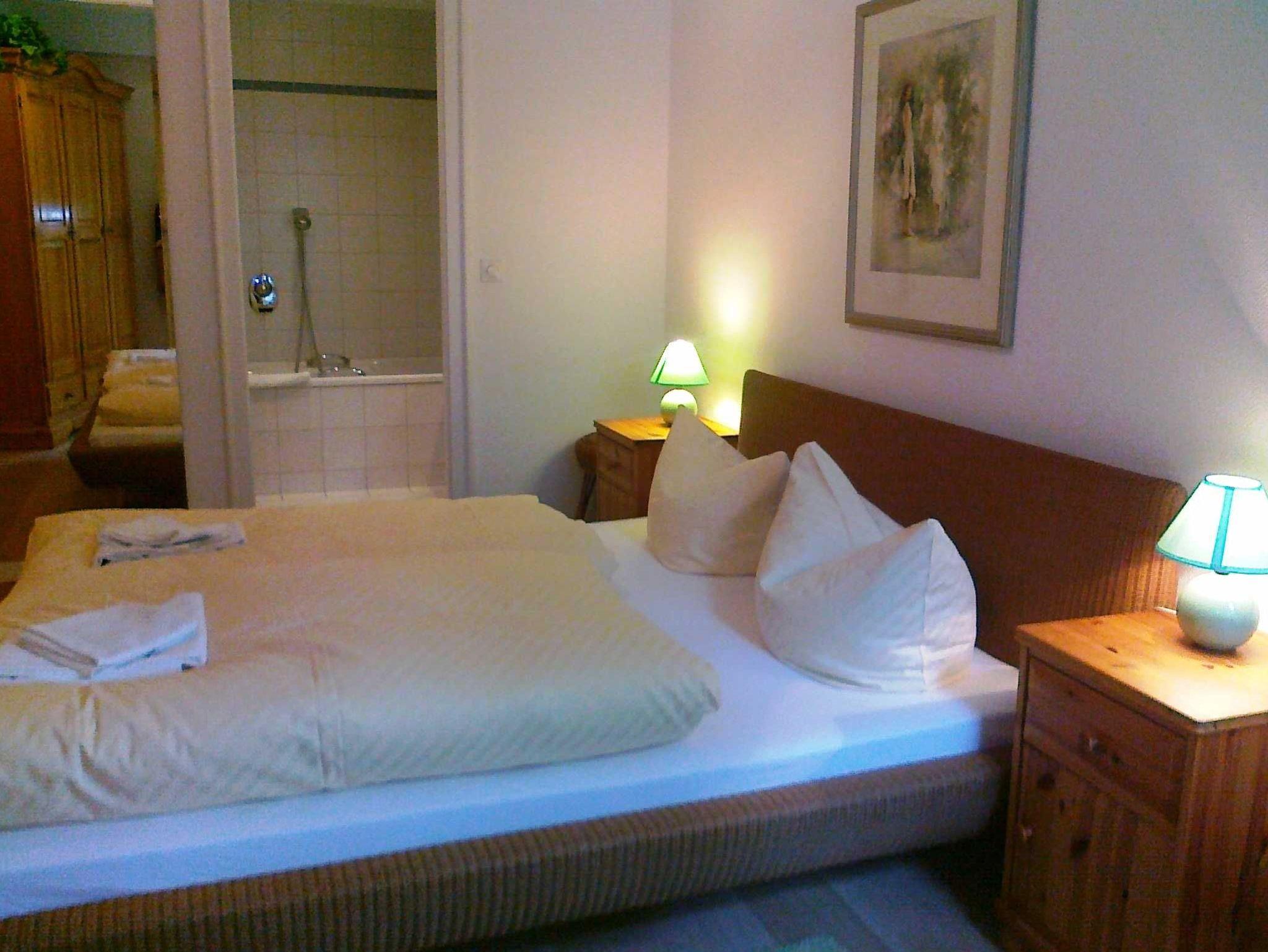 Die exklusive Ferienwohnung 9 im 2. Obergeschoss verfügt über einen großzügigen Wohn-/Essraum mit komplett eingerichteter Küchenzeile, ein Schlafzimmer mit Doppelbett und im Durchgang zum Wohnzimmer befindet sich eine Ausziehcouch für die 3. Person. Moderne Unterhaltungselektronik ist selbstverständlich vorhanden. Zur Ferienwohnung gehören außerdem zwei Badezimmer mit Dusche bzw. Badewanne und ein überdachter Balkon mit Blick auf die Promenade/ bewaldete Düne. Die gemütliche Ferienwohnung ist gefliest und im Schlafzimmer mit Parkett ausgelegt. Parkplatz am Haus
