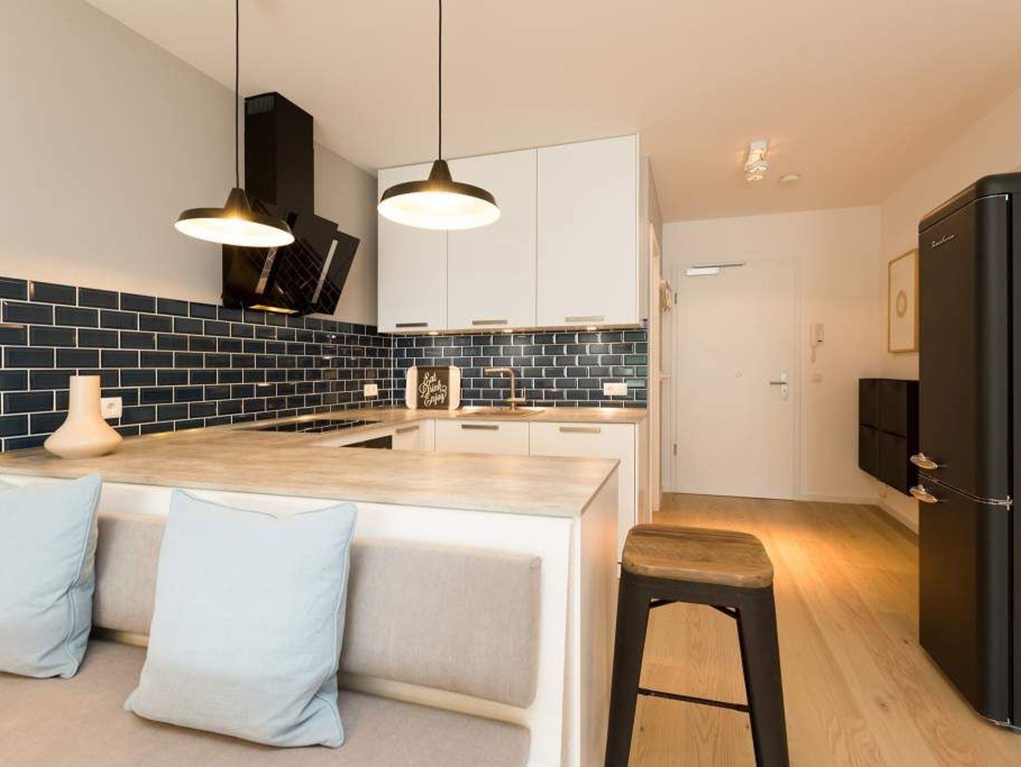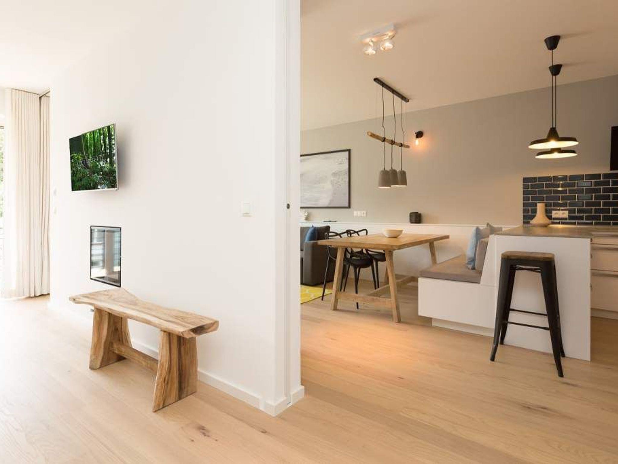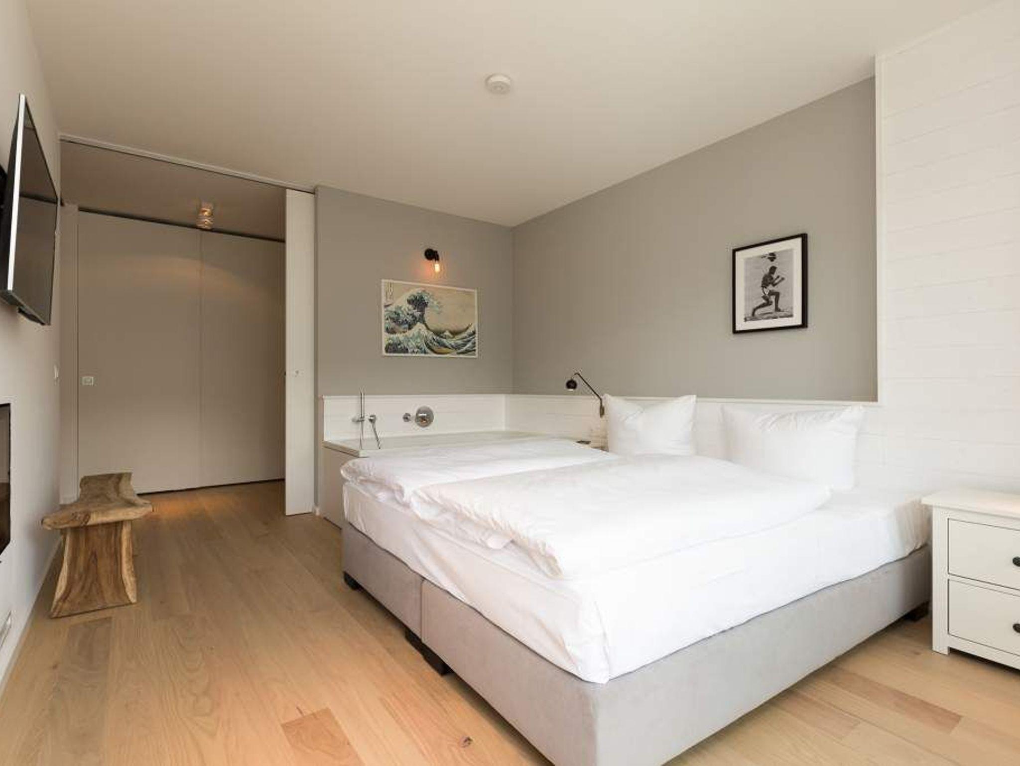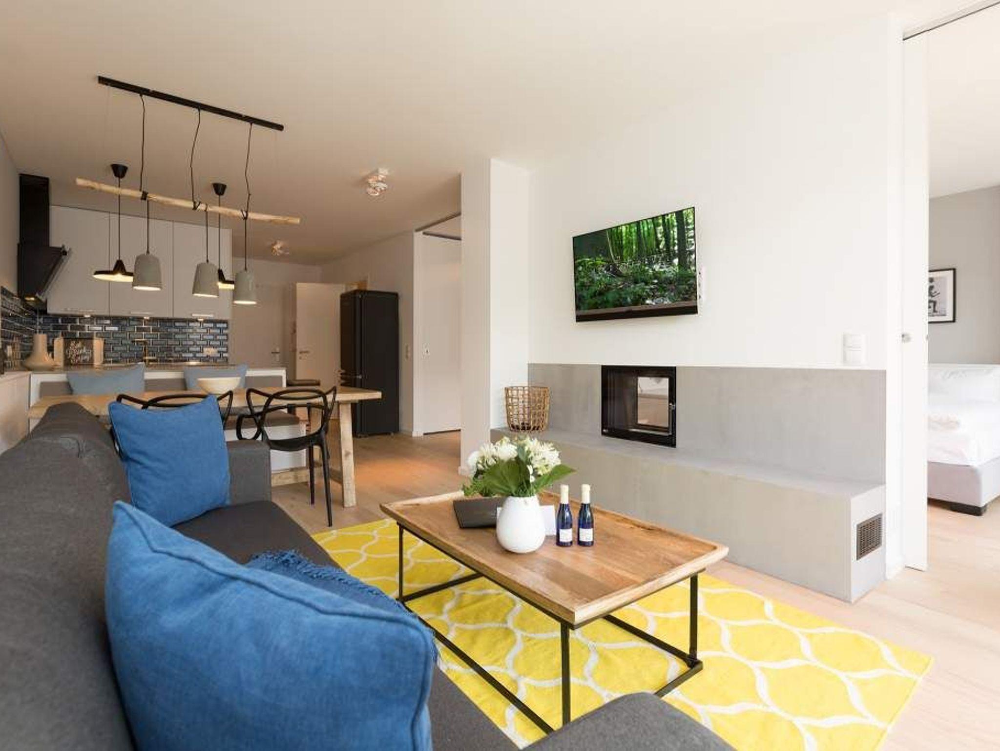 Dieses Appartement ist außergewöhnlich. Die Nummer 08 im zweiten Obergeschoss der Villa Strandgrün in Heringsdorf bietet auf 68 Quadratmetern stylisches Understatement und modernes Wohndesign. Platz ist hier für drei bis vier Personen. Design- und Echtholzmöbel gehen hier eine wunderbar harmonische Liaison mit Industrial Chic ein. Die offene und hochwertig ausgestattete Küche mit großem Vintage-Kühlschrank gibt den Blick auf einen modern und komfortabel eingerichteten Wohnraum frei. An dem großen Echtholztisch lässt es sich wunderbar dinieren. Vom bequemen Sofa aus schauen Sie auf den Flat-TV oder den extravaganten Röhrenkamin, der auch vom Schlafzimmer aus seine romantische Atmosphäre verbreitet. Der Süd-Westbalkon, mit gemütlichen Loungemöbeln ausgestattet, lädt zum Entspannen und Sonne-tanken ein. Im Schlafzimmer wartet ein 1,80 m x 2,00 m großes Doppelboxspringbett nur darauf, Ihnen wunderbare Träume zu schenken. Baden im Schlafzimmer oder schlafen im Bad? Dieses Appartement bietet Ihnen ein ganz besonderes Schmankerl. Denn mit der freistehenden Badewanne direkt im Schlafzimmer können Sie sich herrlich entspannen und gleich danach ins Bett schlüpfen. Für eine dritte und vierte Person gibt es eine gemütliche Schlafkoje (Doppelbett 1,47 m x 1,97 m), die auf Wunsch mit Schiebetüren verschlossen werde kann. Im geräumigen Bad mit Dusche, Waschtisch und WC ist eine Panorama-Sauna eingebaut. Außerdem verfügt die Wohnung über ein Gäste-WC. Das WLAN ist für Sie kostenfrei. Für Ihr uneingeschränktes Urlaubsgefühl sind die Betten bezogen und Handtücher liegen bereit. In der Tiefgarage gibt es einen Pkw-Stellplatz.