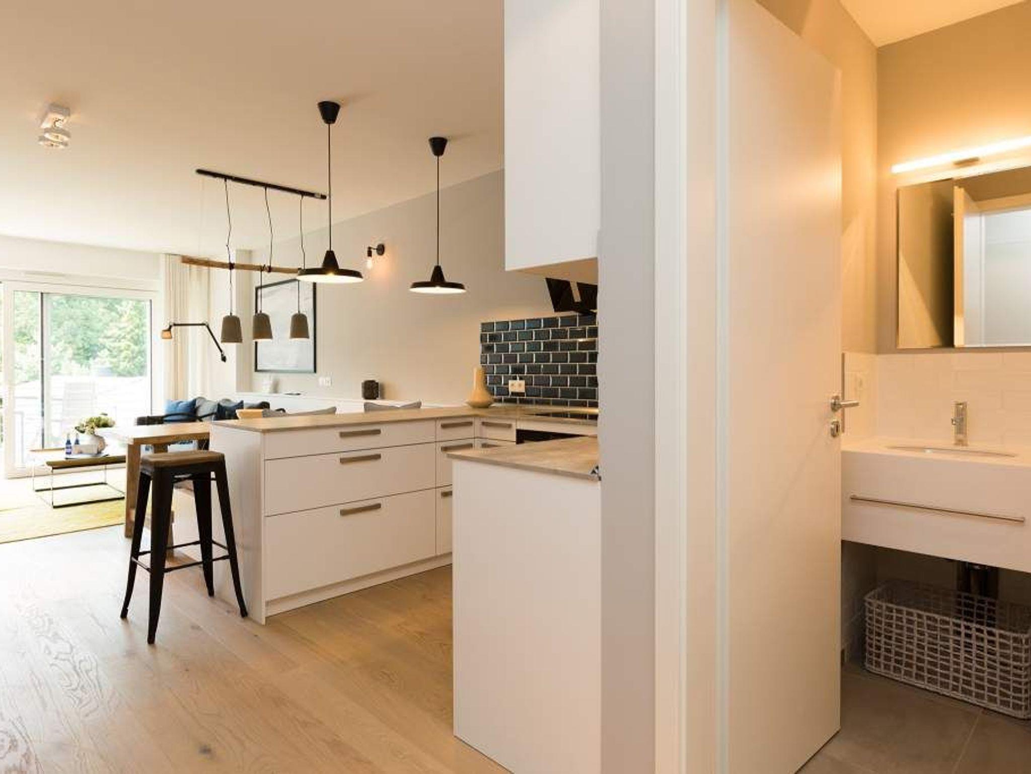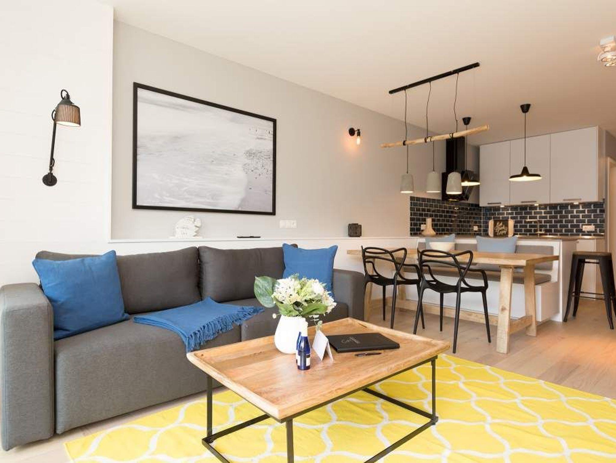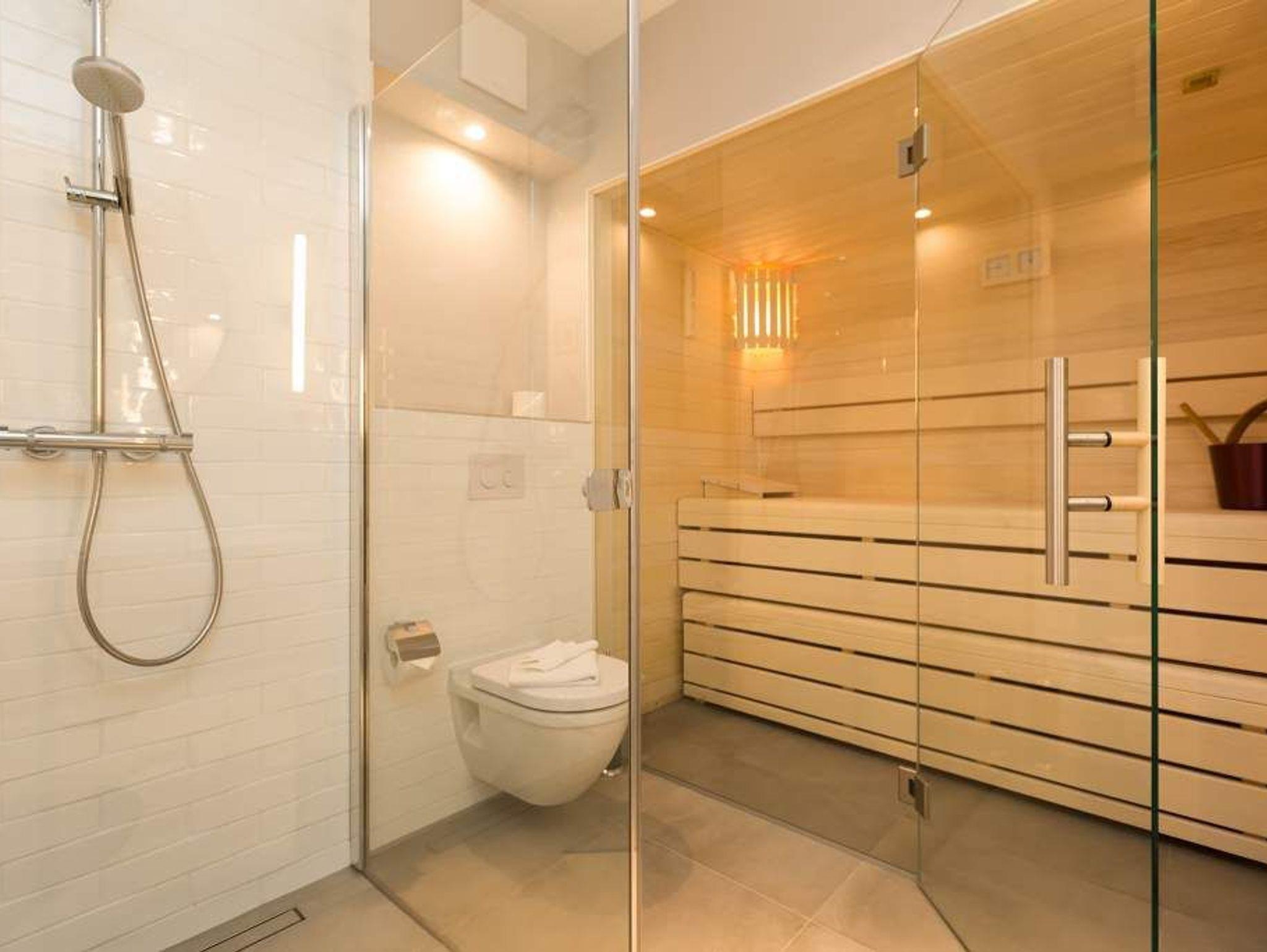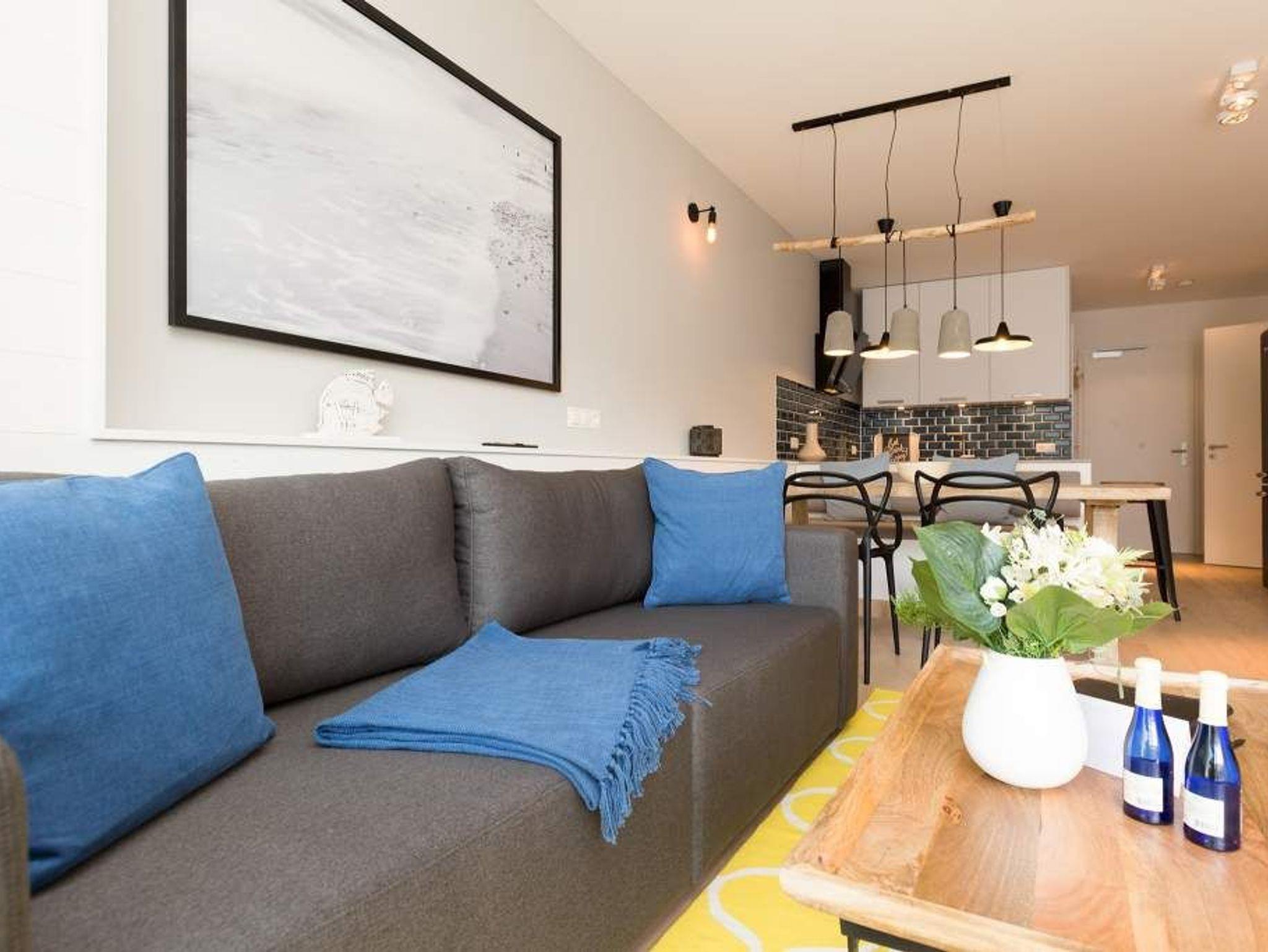 Dieses Appartement ist außergewöhnlich. Die Nummer 08 im zweiten Obergeschoss der Villa Strandgrün in Heringsdorf bietet auf 68 Quadratmetern stylisches Understatement und modernes Wohndesign. Platz ist hier für drei bis vier Personen. Design- und Echtholzmöbel gehen hier eine wunderbar harmonische Liaison mit Industrial Chic ein. Die offene und hochwertig ausgestattete Küche mit großem Vintage-Kühlschrank gibt den Blick auf einen modern und komfortabel eingerichteten Wohnraum frei. An dem großen Echtholztisch lässt es sich wunderbar dinieren. Vom bequemen Sofa aus schauen Sie auf den Flat-TV oder den extravaganten Röhrenkamin, der auch vom Schlafzimmer aus seine romantische Atmosphäre verbreitet. Der Süd-Westbalkon, mit gemütlichen Loungemöbeln ausgestattet, lädt zum Entspannen und Sonne-tanken ein. Im Schlafzimmer wartet ein 1,80 m x 2,00 m großes Doppelboxspringbett nur darauf, Ihnen wunderbare Träume zu schenken. Baden im Schlafzimmer oder schlafen im Bad? Dieses Appartement bietet Ihnen ein ganz besonderes Schmankerl. Denn mit der freistehenden Badewanne direkt im Schlafzimmer können Sie sich herrlich entspannen und gleich danach ins Bett schlüpfen. Für eine dritte und vierte Person gibt es eine gemütliche Schlafkoje (Doppelbett 1,47 m x 1,97 m), die auf Wunsch mit Schiebetüren verschlossen werde kann. Im geräumigen Bad mit Dusche, Waschtisch und WC ist eine Panorama-Sauna eingebaut. Außerdem verfügt die Wohnung über ein Gäste-WC. Das WLAN ist für Sie kostenfrei. Für Ihr uneingeschränktes Urlaubsgefühl sind die Betten bezogen und Handtücher liegen bereit. In der Tiefgarage gibt es einen Pkw-Stellplatz.
