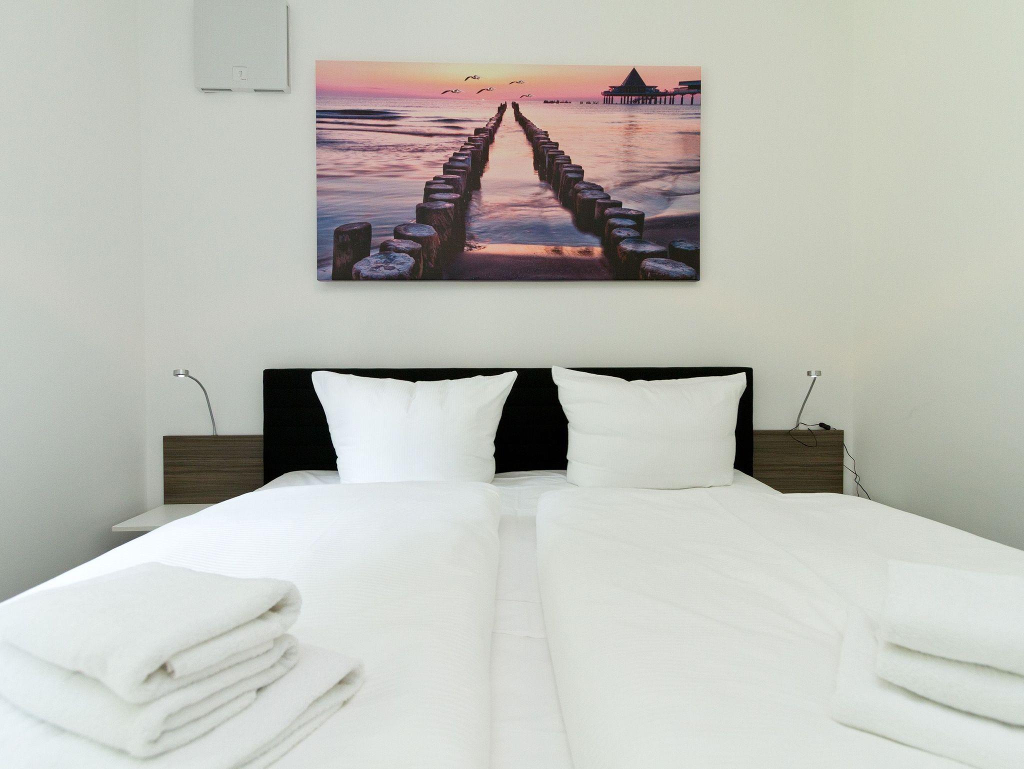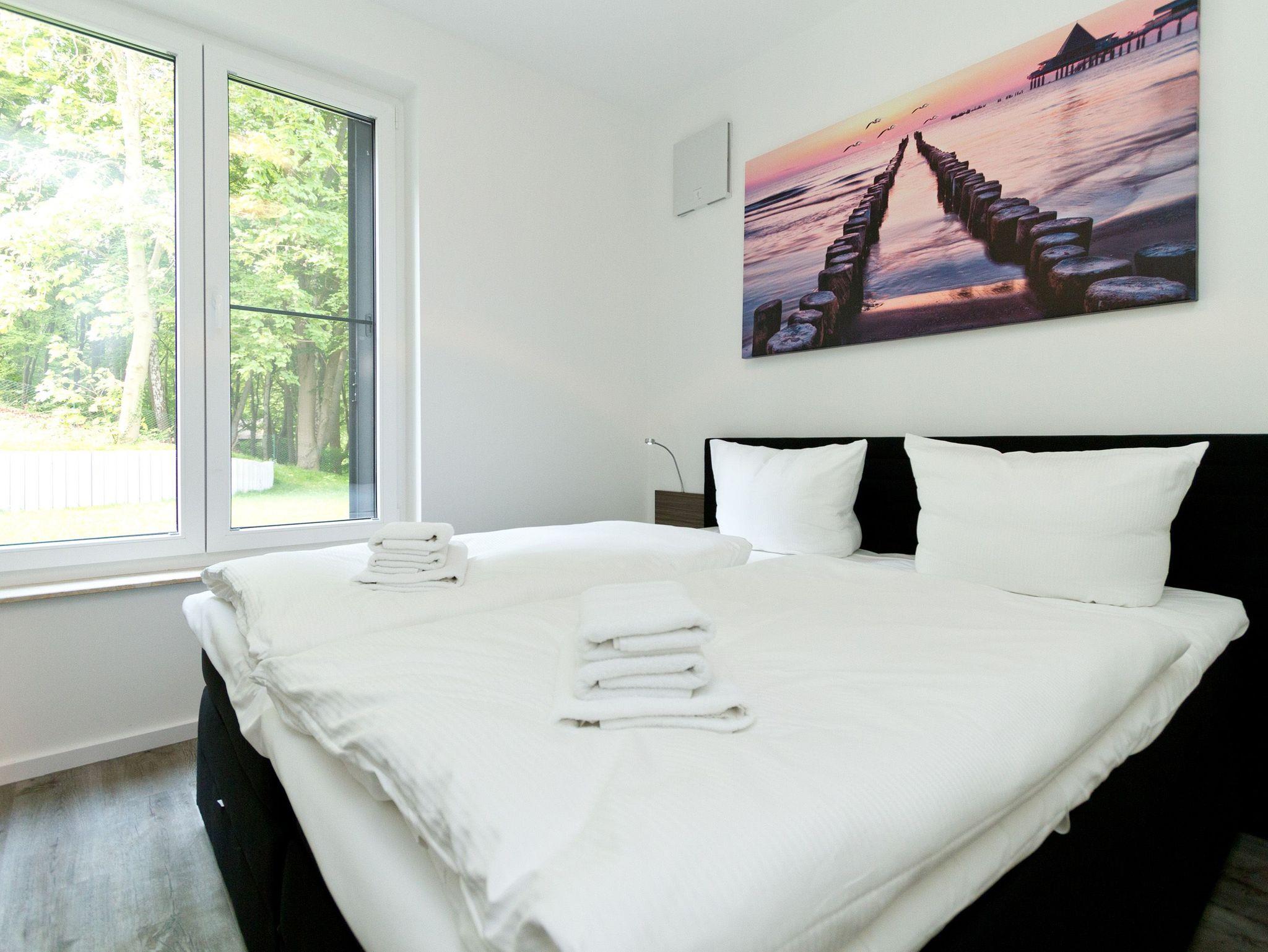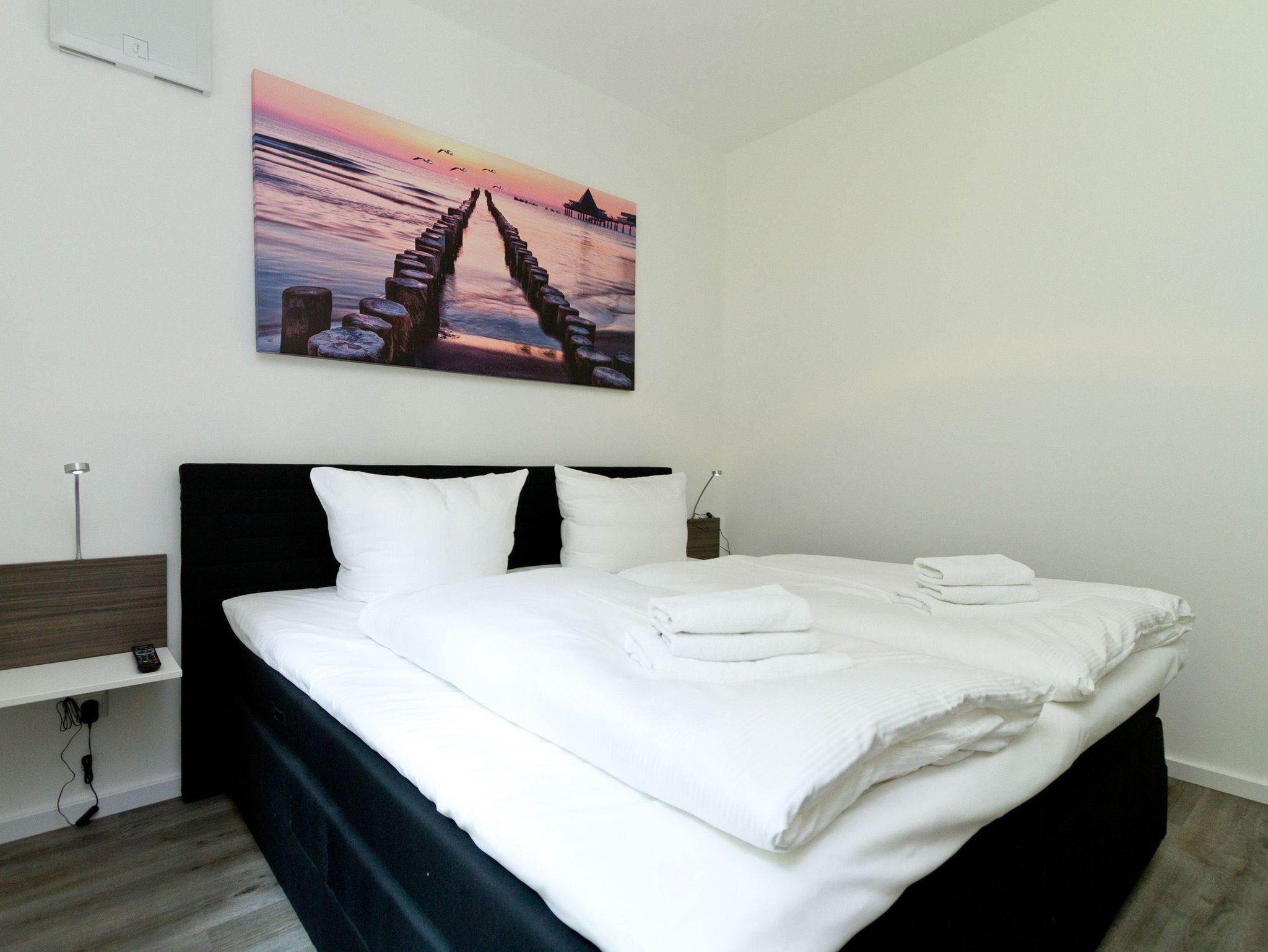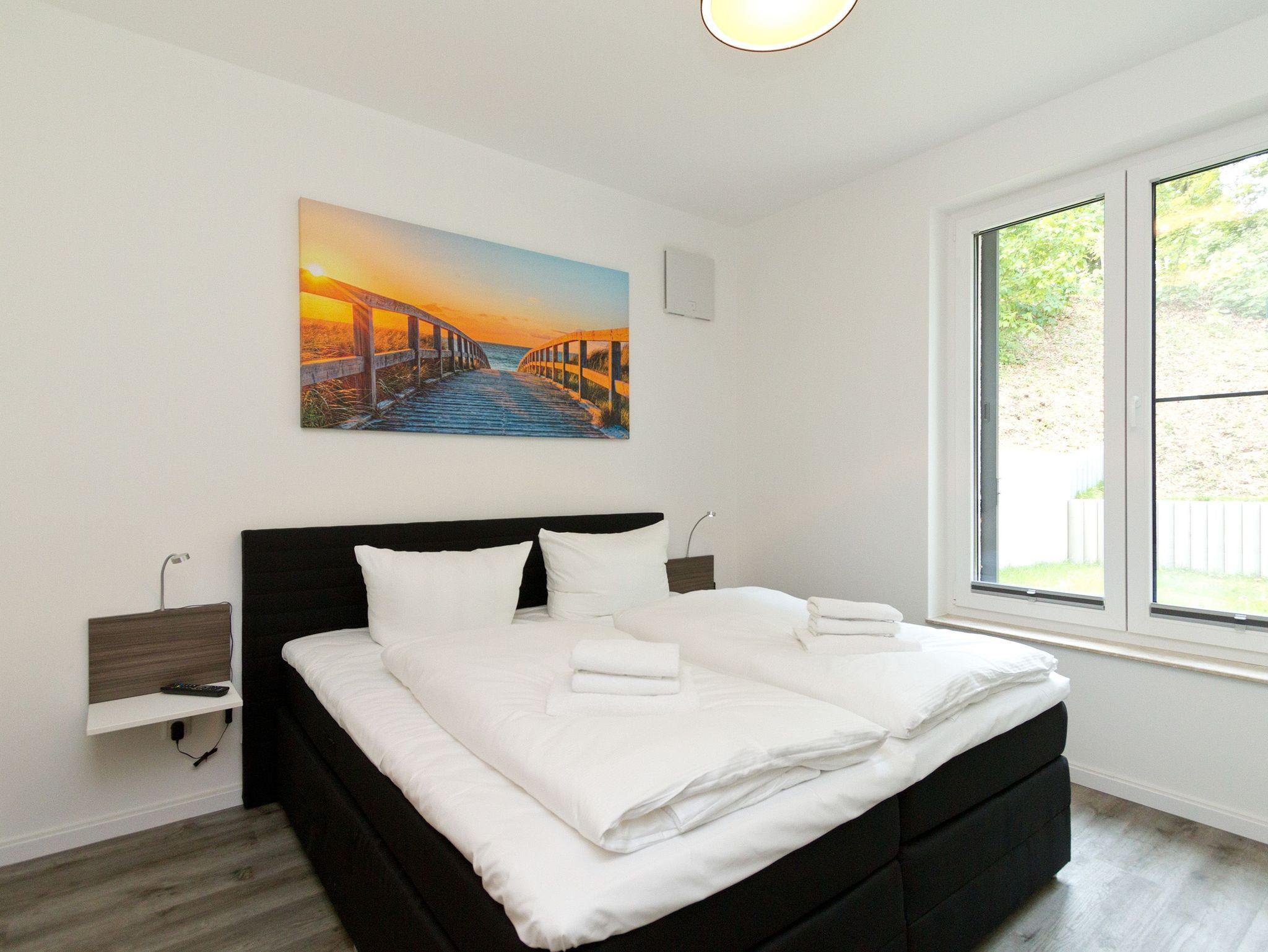 Ausreichend Platz für 4 Erwachsene und 2 Kleinkinder (bis 3 Jahre im Kinderreisebett) erwartet Sie im großzügigen 104 Quadratmeter großen Erd- bzw. Gartengeschoss-Appartement in der Villa Evi. Der helle Wohn-Essbereich empfängt Sie mit einer offenen Gestaltung und ist neben einer gemütlichen Sitzgruppe mit Flat-TV und Kamin ausgestattet. Eine voll ausgestattete Küche samt Essplatz lädt zum gemeinsamen Kochen und Verweilen ein. Eine separate Leseecke lädt zudem zum Lesen ein. Vom Wohnbereich haben Sie außerdem Zugang zur etwa 20 Quadratmeter großen Süd-Terrasse mit Gartenmöbeln und Strandkorb, von dem aus Sie den Blick in den Park genießen können. Das Appartement verfügt außerdem über zwei Schlafzimmer, die beide mit komfortablen Boxspringbetten ausgestattet sind. Das erste Schlafzimmer bietet zudem Zugang zum Masterbad, das mit einer Infrarotsaune (kostenfrei), einer Dusche, einer Badewanne und einem WC ausgestattet ist. Das zweite Schlafzimmer verfügt ebenfalls über ein eigenes Badezimmer mit WC, Dusche und Waschtisch. Ein PKW-Stellplatz direkt am Haus steht Ihnen ebenso kostenfrei zur Verfügung wie das hauseigene W-Lan. Für Ihren Komfort sind die Betten bei Ihrer Ankunft bereits bezogen und Handtücher liegen als Erstausstattung bereit.