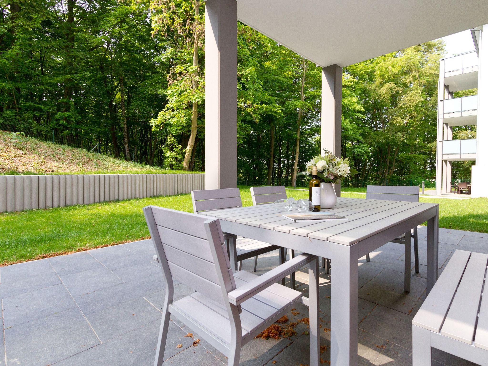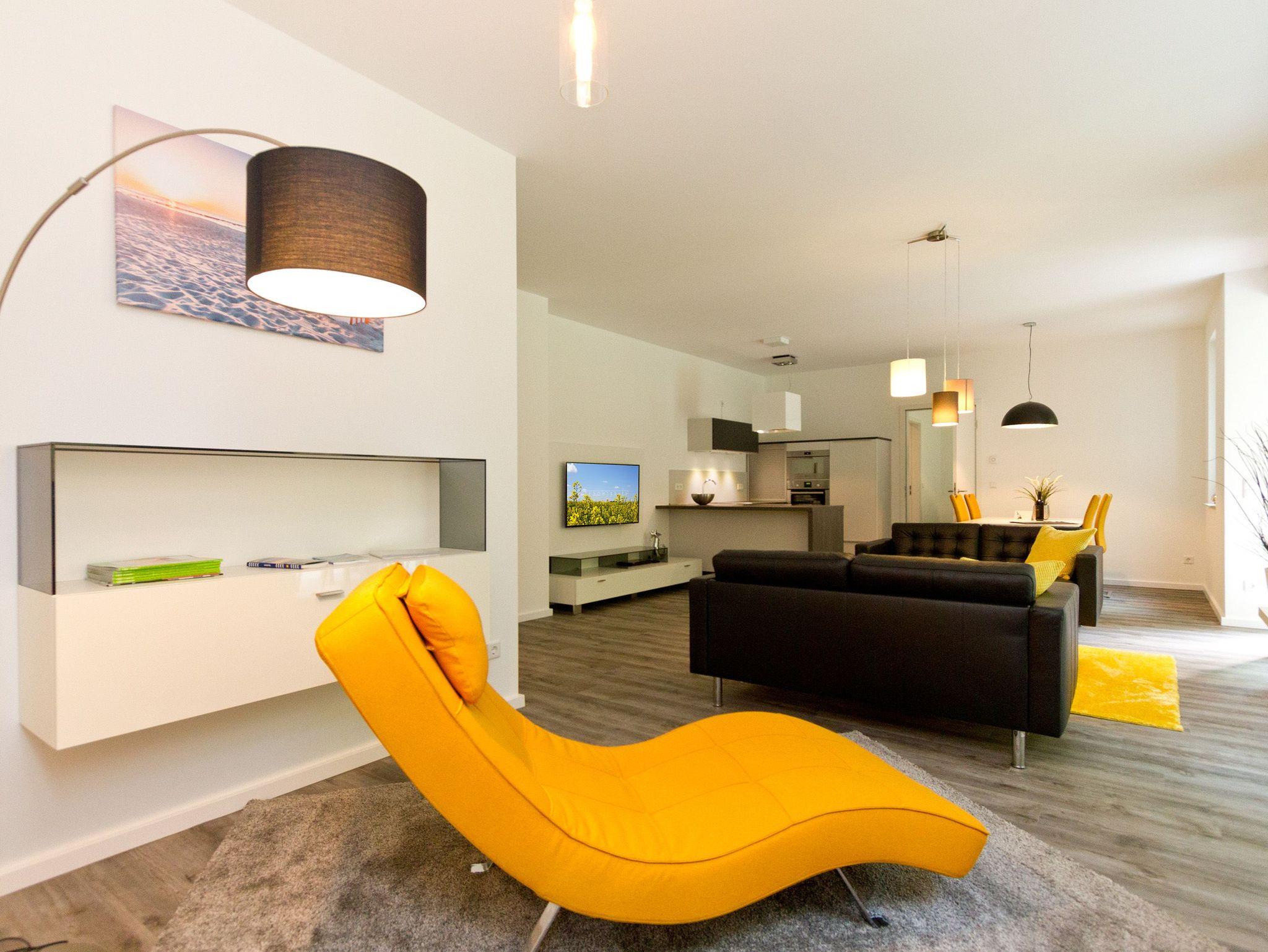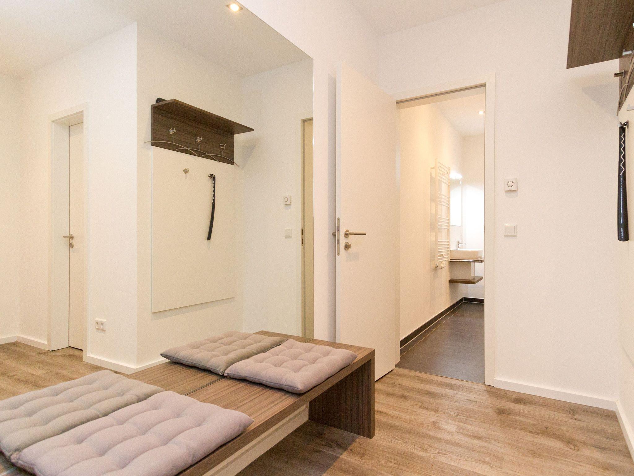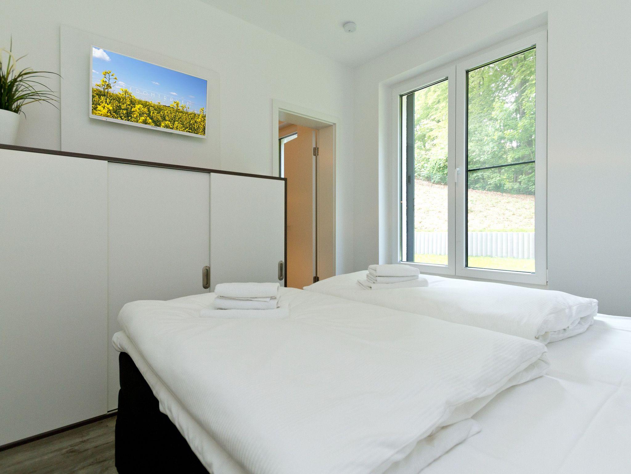 Ausreichend Platz für 4 Erwachsene und 2 Kleinkinder (bis 3 Jahre im Kinderreisebett) erwartet Sie im großzügigen 104 Quadratmeter großen Erd- bzw. Gartengeschoss-Appartement in der Villa Evi. Der helle Wohn-Essbereich empfängt Sie mit einer offenen Gestaltung und ist neben einer gemütlichen Sitzgruppe mit Flat-TV und Kamin ausgestattet. Eine voll ausgestattete Küche samt Essplatz lädt zum gemeinsamen Kochen und Verweilen ein. Eine separate Leseecke lädt zudem zum Lesen ein. Vom Wohnbereich haben Sie außerdem Zugang zur etwa 20 Quadratmeter großen Süd-Terrasse mit Gartenmöbeln und Strandkorb, von dem aus Sie den Blick in den Park genießen können. Das Appartement verfügt außerdem über zwei Schlafzimmer, die beide mit komfortablen Boxspringbetten ausgestattet sind. Das erste Schlafzimmer bietet zudem Zugang zum Masterbad, das mit einer Infrarotsaune (kostenfrei), einer Dusche, einer Badewanne und einem WC ausgestattet ist. Das zweite Schlafzimmer verfügt ebenfalls über ein eigenes Badezimmer mit WC, Dusche und Waschtisch. Ein PKW-Stellplatz direkt am Haus steht Ihnen ebenso kostenfrei zur Verfügung wie das hauseigene W-Lan. Für Ihren Komfort sind die Betten bei Ihrer Ankunft bereits bezogen und Handtücher liegen als Erstausstattung bereit.