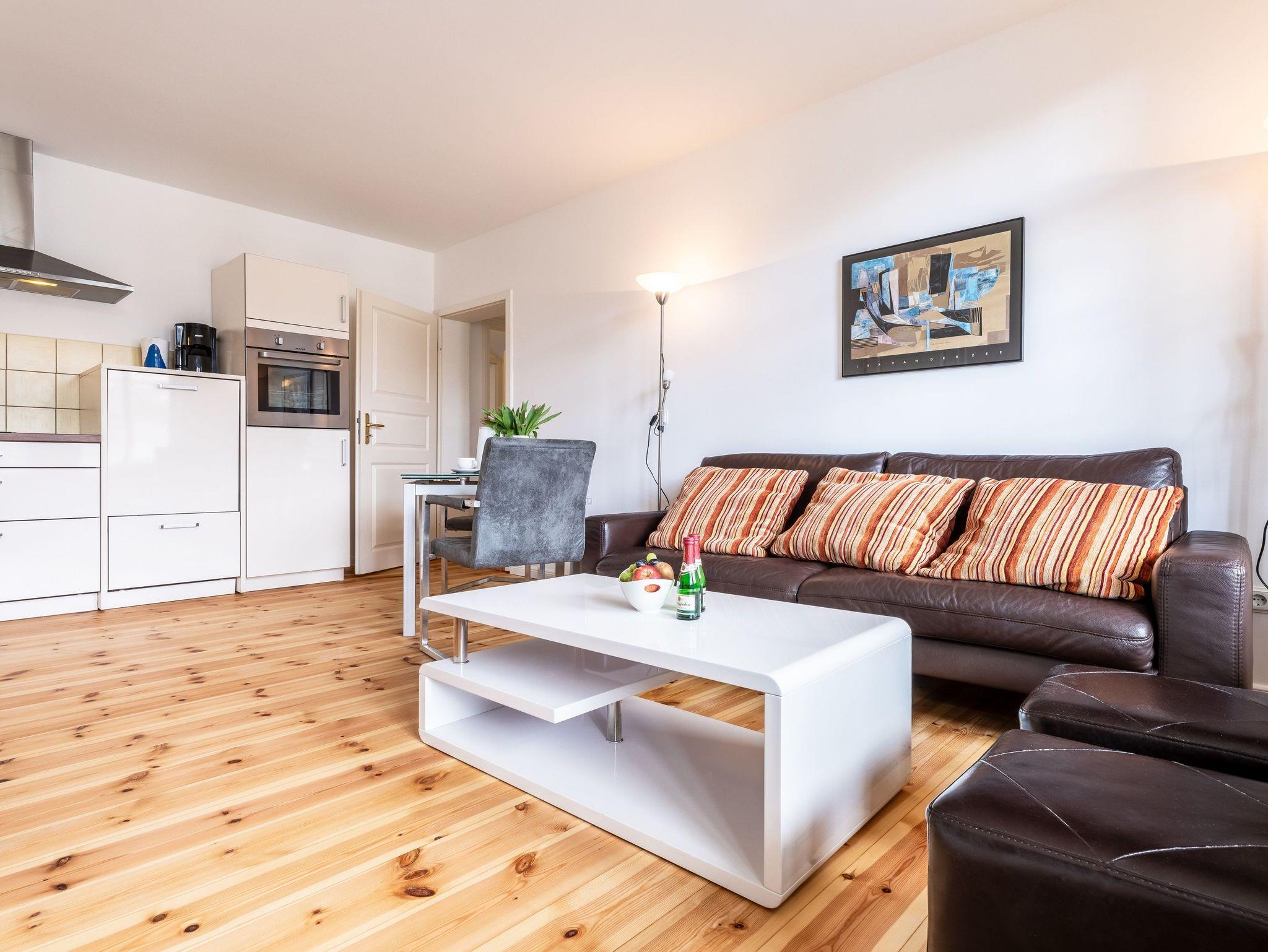 Sie suchen einen Rückzugsort für etwas Zeit zu zweit? Dann ist die Kajüte genau das Richtige für Sie. Sie gelangen durch eine kleine Treppe in der liebevoll sanierten Villa ins Obergeschoß, wo Sie Ihre 52qm große Ferienwohnung mit einem kleinen, gemütlichen Schlafzimmer mit einem 140 cm breiten Doppelbett und einem hellen Wohnzimmer finden werden. Lassen Sie sich von der Morgensonne auf der nach Südosten ausgerichteten Balkonveranda verwöhnen. Von hier aus haben Sie einen großartigen Blick auf das große, grüne Grundstück der Villa. Wahrscheinlich können Sie von hier das Meer schon riechen. Nur 100 Meter trennen Sie und die Ostsee. Der kilometerlange Sandstrand der Insel lädt zu einem ausgiebigen Spaziergang entlang der Kaiserbäder ein. Kommen Sie dann erschöpft zurück, wartet schon eine heiße Dusche oder auch eine kleine Auszeit in der großzügigen Badewanne auf Sie. Wie wäre es zum Ausklang eines romantischen Abends mit einem Glas Wein am kleinen Bio-Kamin? Bei uns bleiben keine Wünsche offen. Kommen Sie mit dem Auto oder vielleicht ganz sportlich mit dem Fahrrad? Für beides haben wir selbstverständlich einen Platz auf dem Grundstück. Das ist noch längst nicht alles. Sie finden bei uns: Gratis-WLAN, LED-TV, DVD-Player, DVD-Filme, Bücher, eine Einbauküche mit Geschirrspüler, Kühl- und Gefrierkombination, Backofen mit Ceranfeld, Wasserkocher, Kaffeemaschine, Toaster, Föhn und für die kleinsten Gäste Babybett, Babyhochstuhl, klappbare Wickelauflage und vieles mehr.