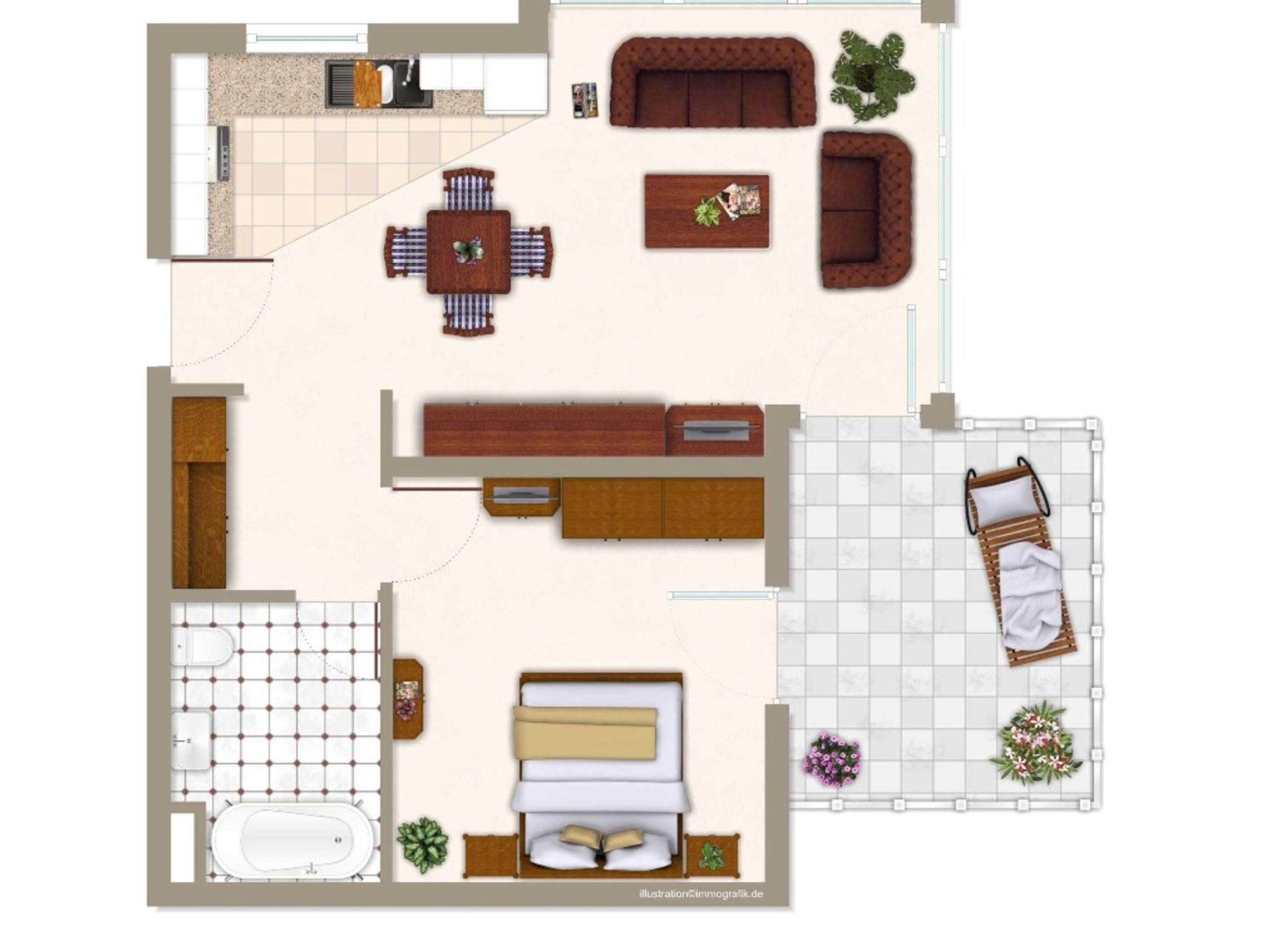 Dieses modern und hochwertig eingerichtete Appartement im Erdgeschoss mit Terrasse des Hauses ist mit allen Annehmlichkeiten ausgestattet. Ihnen stehen neben einem Schlafzimmer mit Doppelbett, ein geschmackvoll eingerichtetes Wohnzimmer mit Schlafcouch für die dritte und vierte Person zur Verfügung. Im Badezimmer finden Sie eine Badewanne mit einer integrierten Dusche. Im Garten befindet sich ein Spielplatz für die Kleinen.