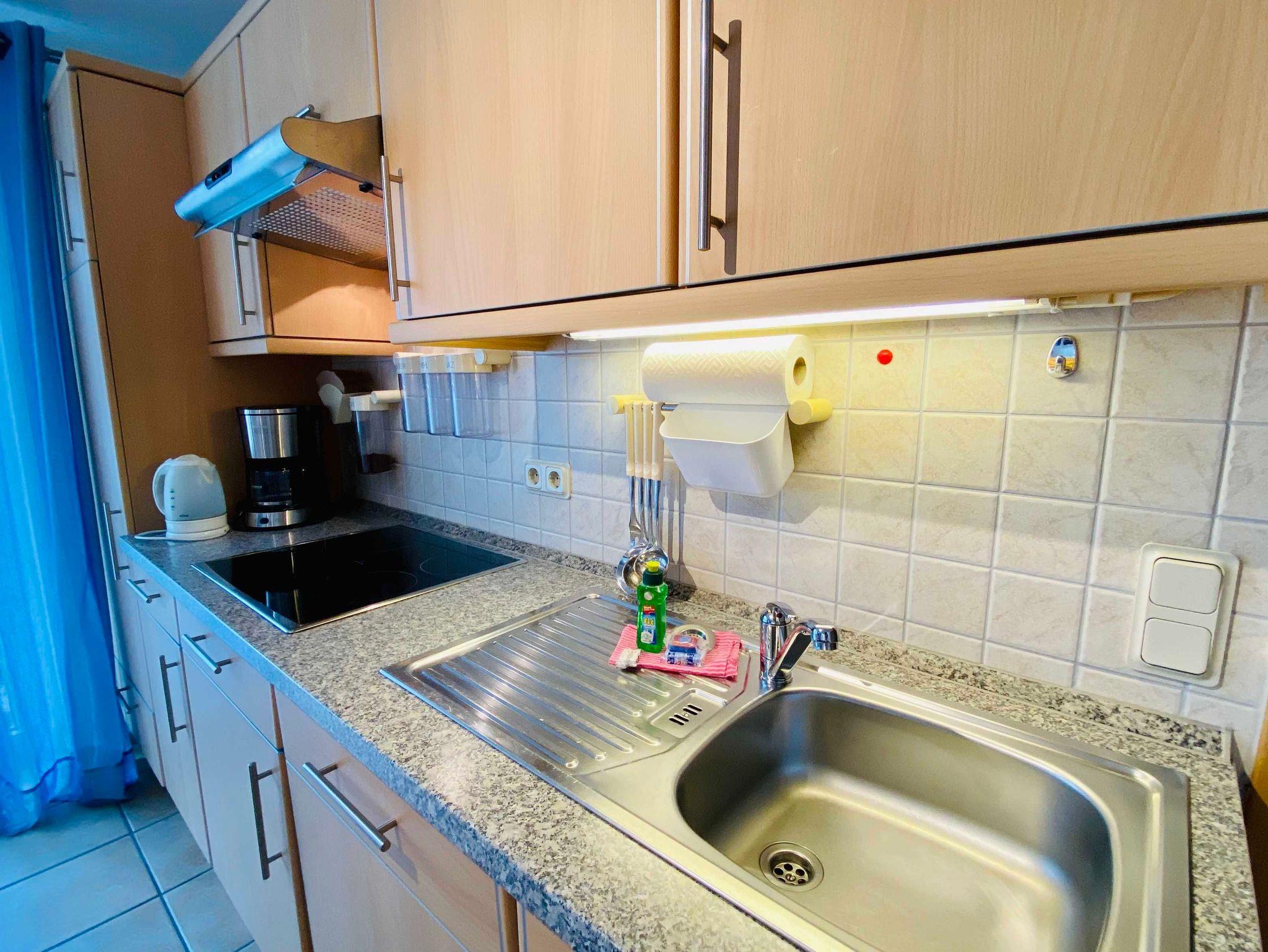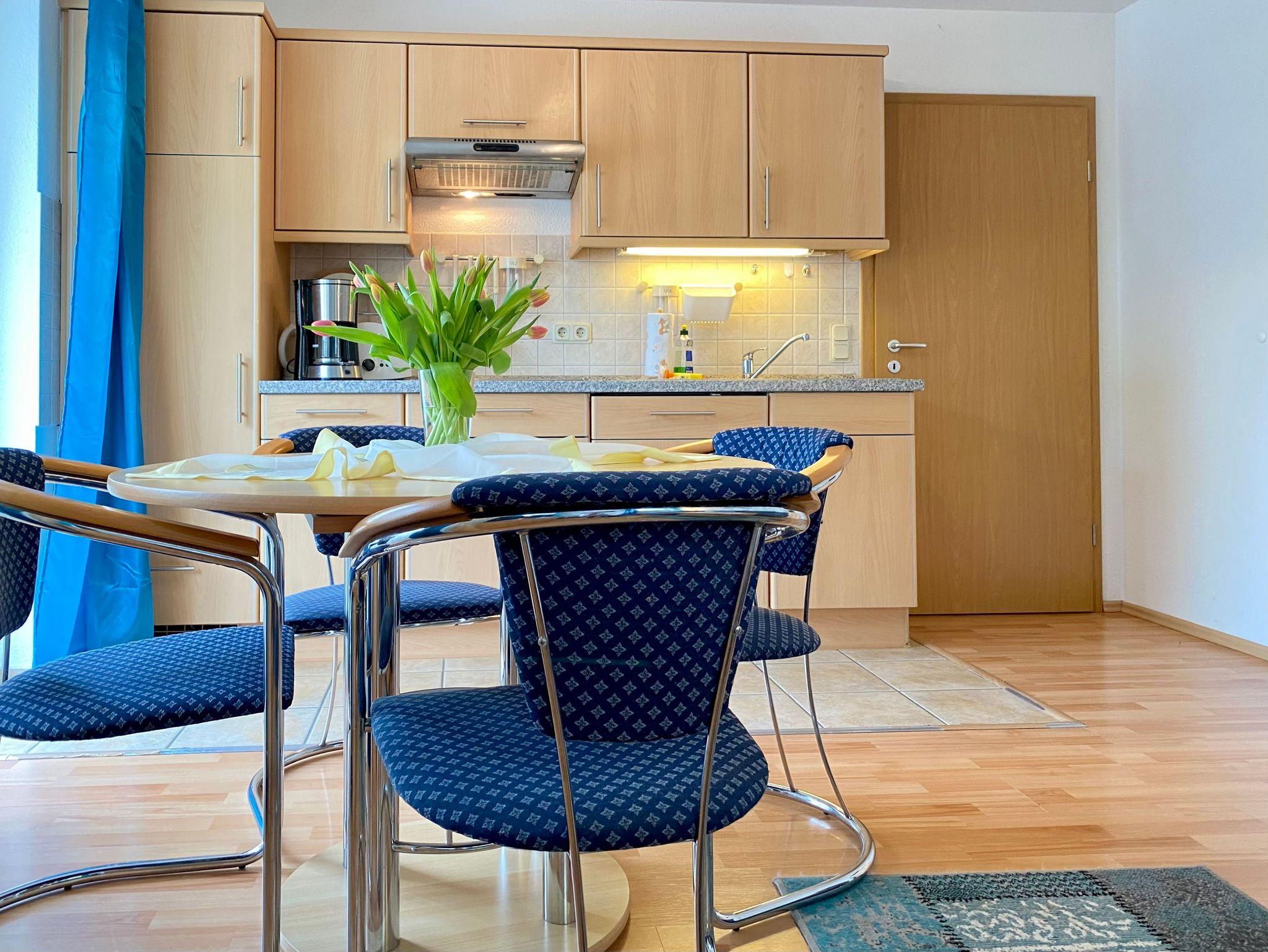 Die 2 Raumwohnung ist funktional eingerichtet und besteht aus einem gemütlichen Wohn-Esszimmer mit offener Küche. Von hier aus gelangen Sie auf den Balkon.