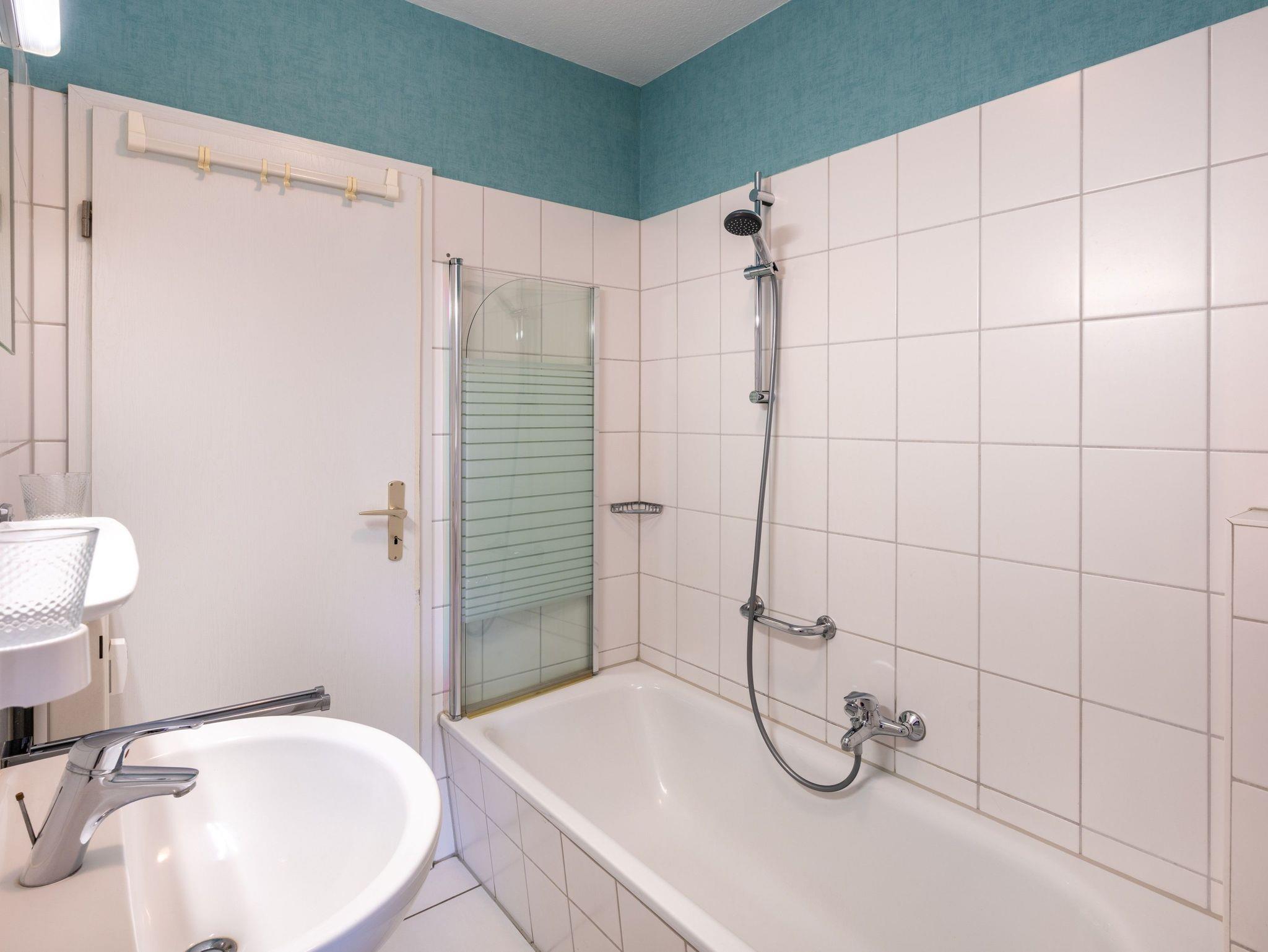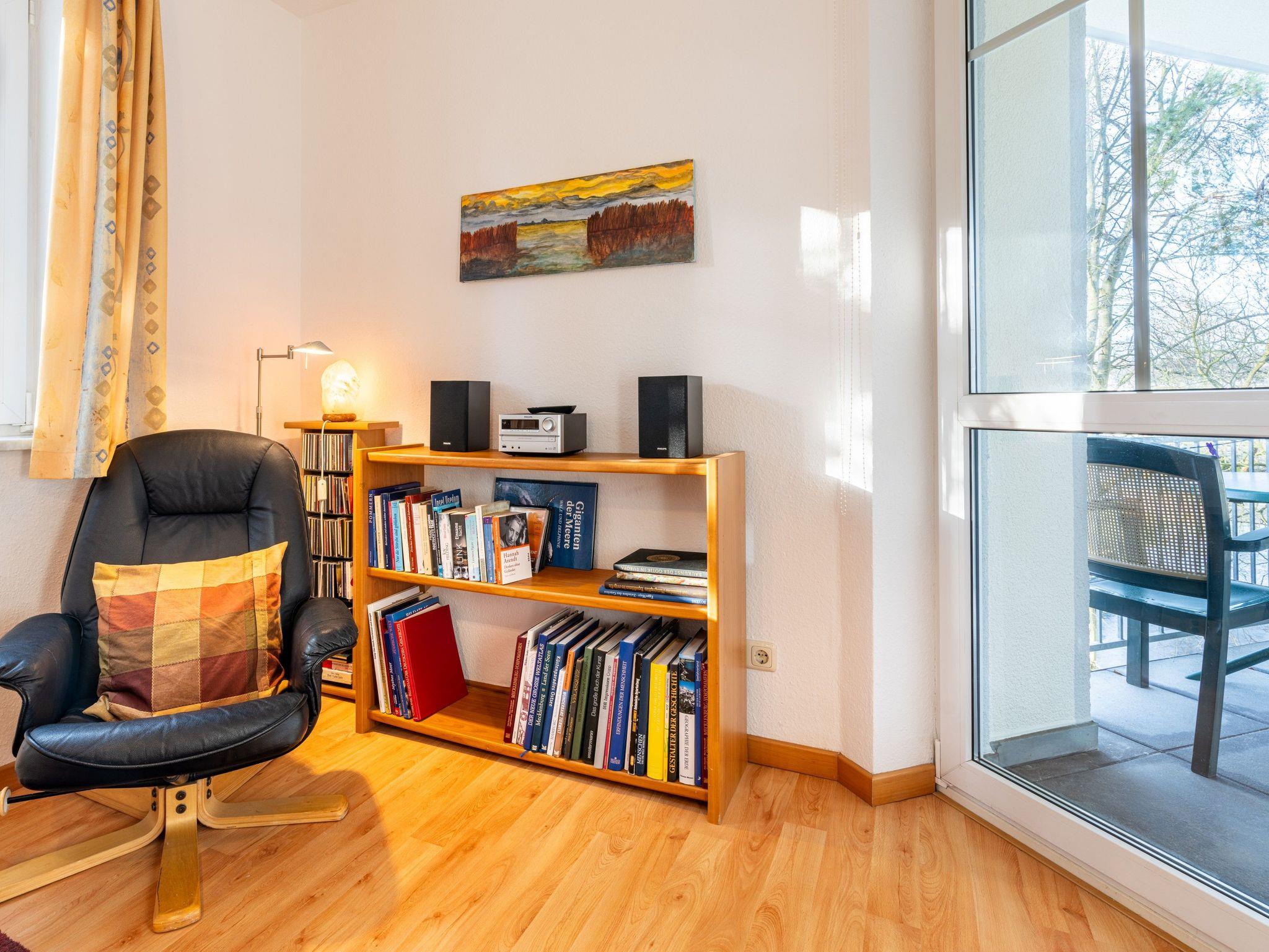 Die individuelle Ferienwohnung befindet sich im 1. Obergeschoss und verfügt über ein Schlafzimmer mit Doppelbett, ein Wohn-/Schlafraum mit einer Doppelbettcouch (Schlafmöglichkeit für eine weitere Person), sowie Kabel-TV und Radio DVD-Player mit einigen CD?s und DVD?s zu ihrer Verfügung. Für Leseratten gibt es eine kleine Bibliothek und auch jede Menge Spiele. Die offene Wohnküche ist eingerichtet mit einem 4-Platten-Ceran-Herd (ohne Backofen), Mikrowelle und Kühlschrank. Das Bad ist mit einer Badewanne mit Duschwand ausgestattet. Der Westbalkon liegt zur Parkseite und lädt mit Tisch und Stühlen zum Essen ein.