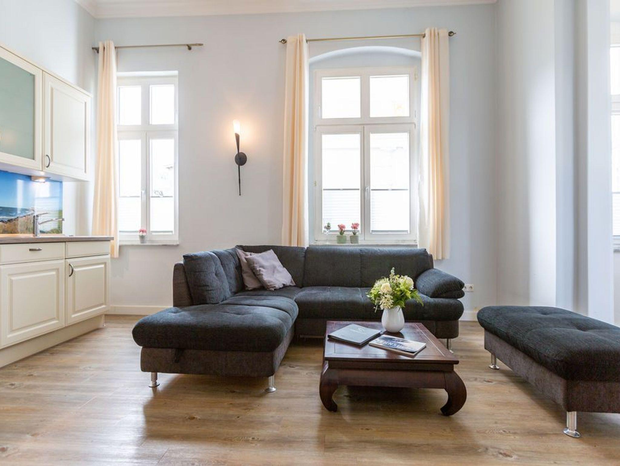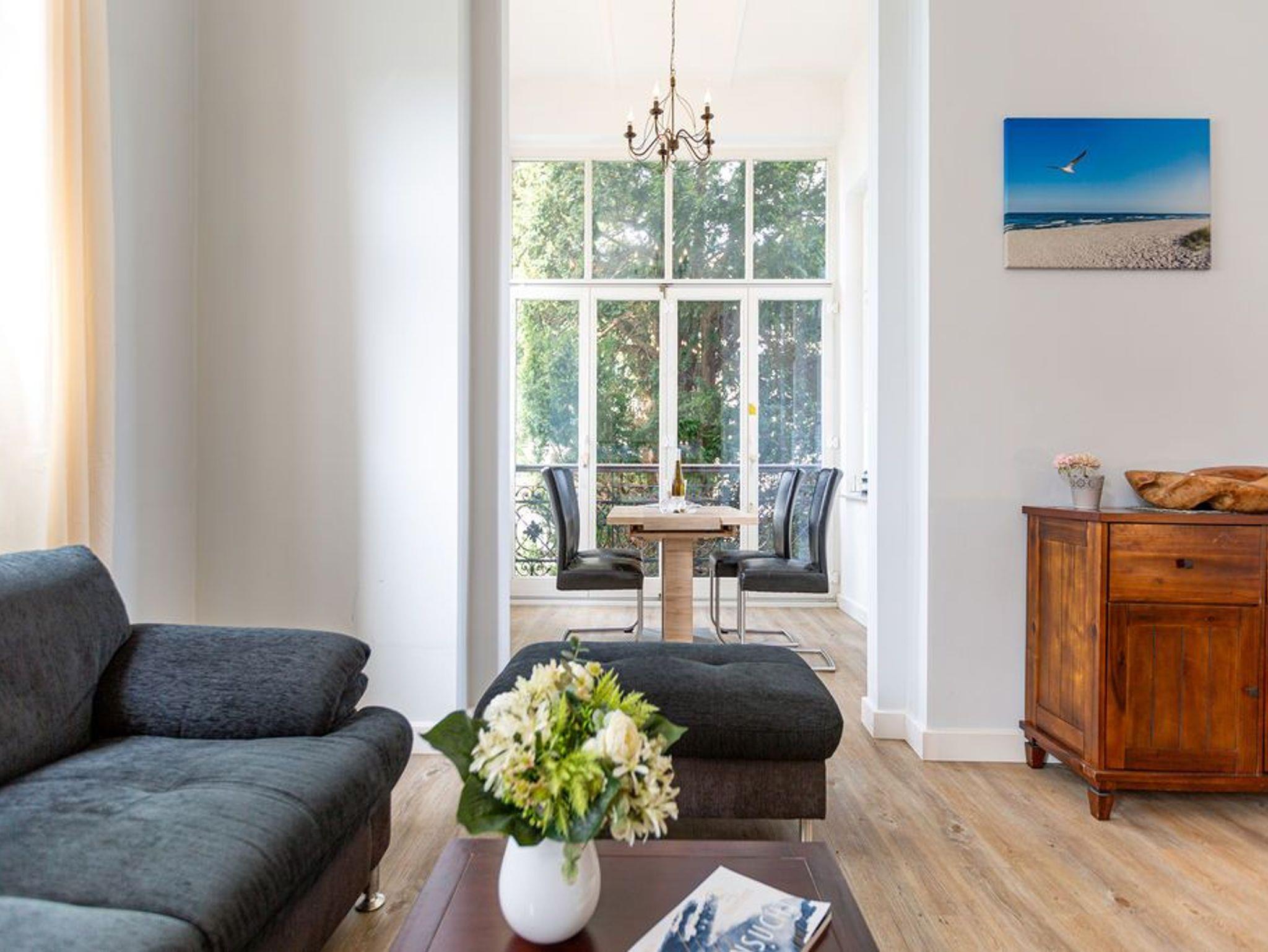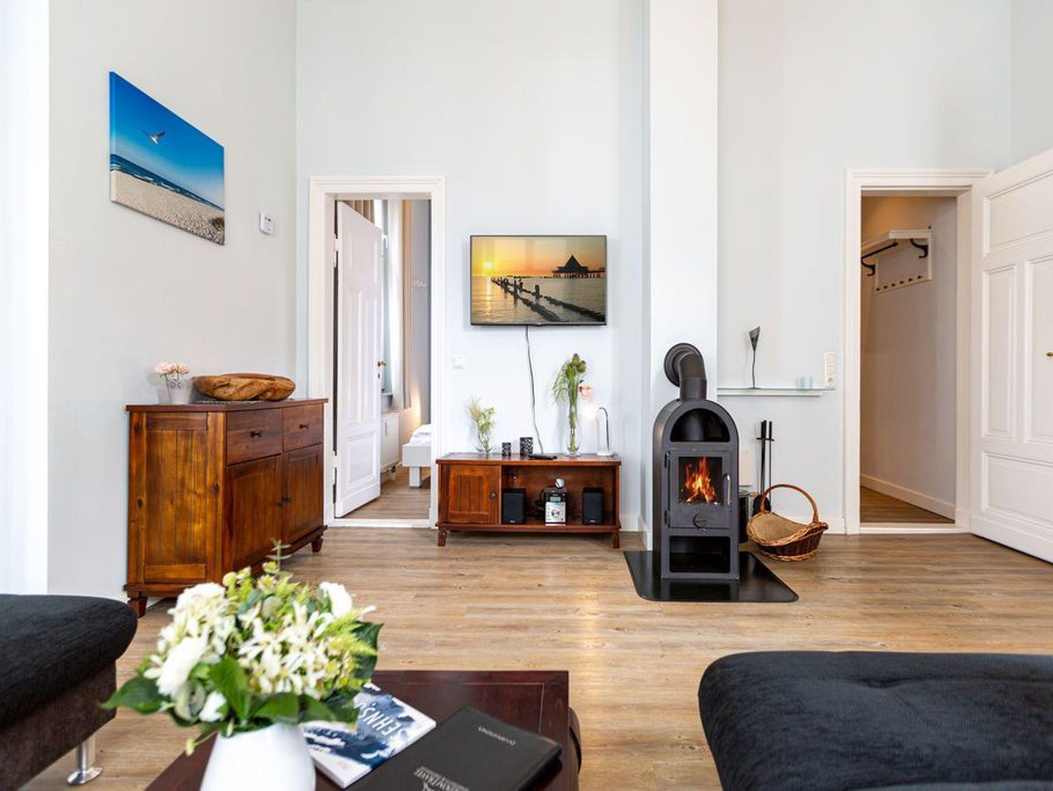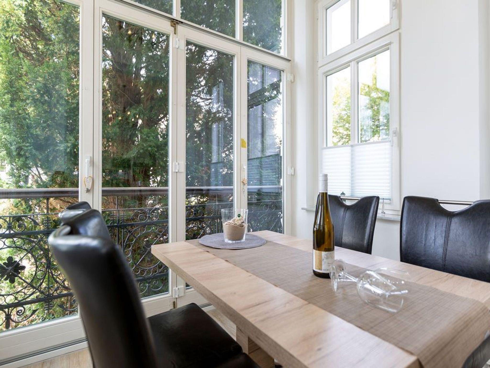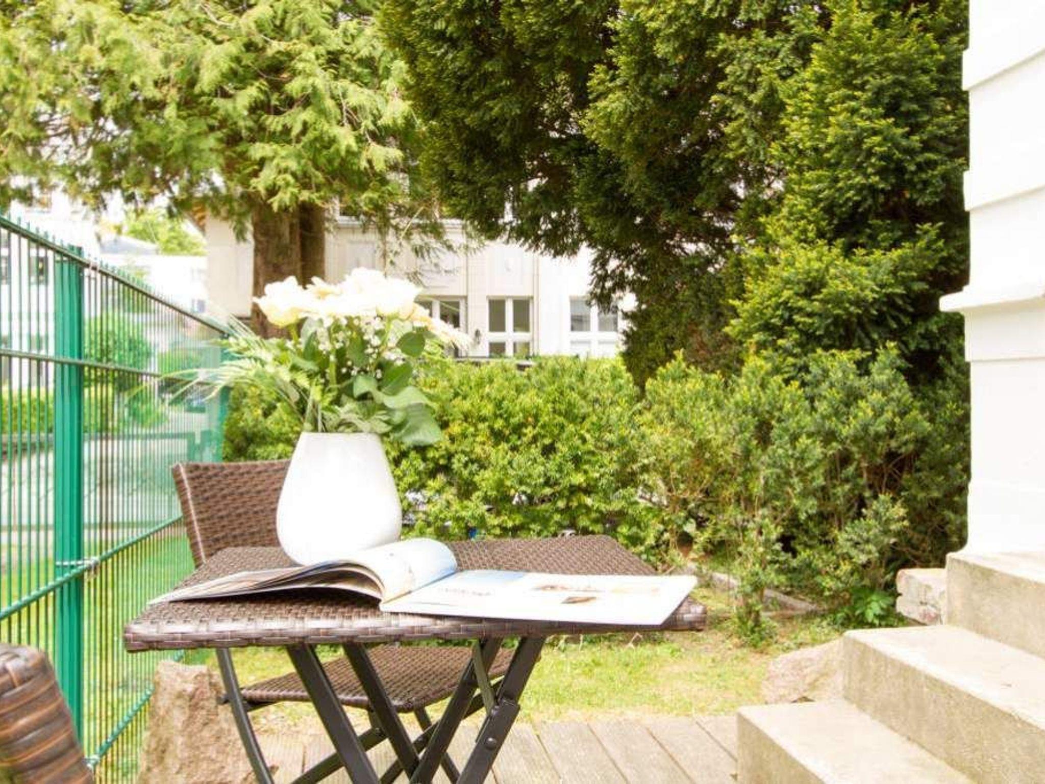 Freuen Sie sich auf eine neu gestaltete 2-Raum-Ferienwohnung (50 qm) im Erdgeschoss der historischen Villa Lucie-Else. Das modern eingerichtete Domizil für 2 Personen gestaltet Ihren Urlaub vom Moment Ihrer Ankunft komfortabel und erholsam zugleich. Der helle Wohnbereich ist mit einer bequemen Sitzgruppe, Flat-TV und Kaminofen ausgestattet, der besonders in der kühlen Jahreszeit für behagliche Stunden sorgt. Auch die offene, komplett ausgestattete Küchenzeile findet sich hier. In der vorgelagerten, verglasten Loggia befindet sich der Essplatz, von hier hat man Zugang zur kleinen Süd-West Terrasse mit Gartenmöbeln. Das Schlafzimmer mit Doppelbett (1,75 m x 2,00 m) verfügt über einen zusätzlichen Flat-TV. Das Bad ist mit Dusche und WC ausgestattet. Ein Pkw-Stellplatz (gekennzeichnet mit Lucie Else 03) steht am Haus zur Verfügung. Das Wlan in dieser Wohnung ist kostenlos nutzbar.