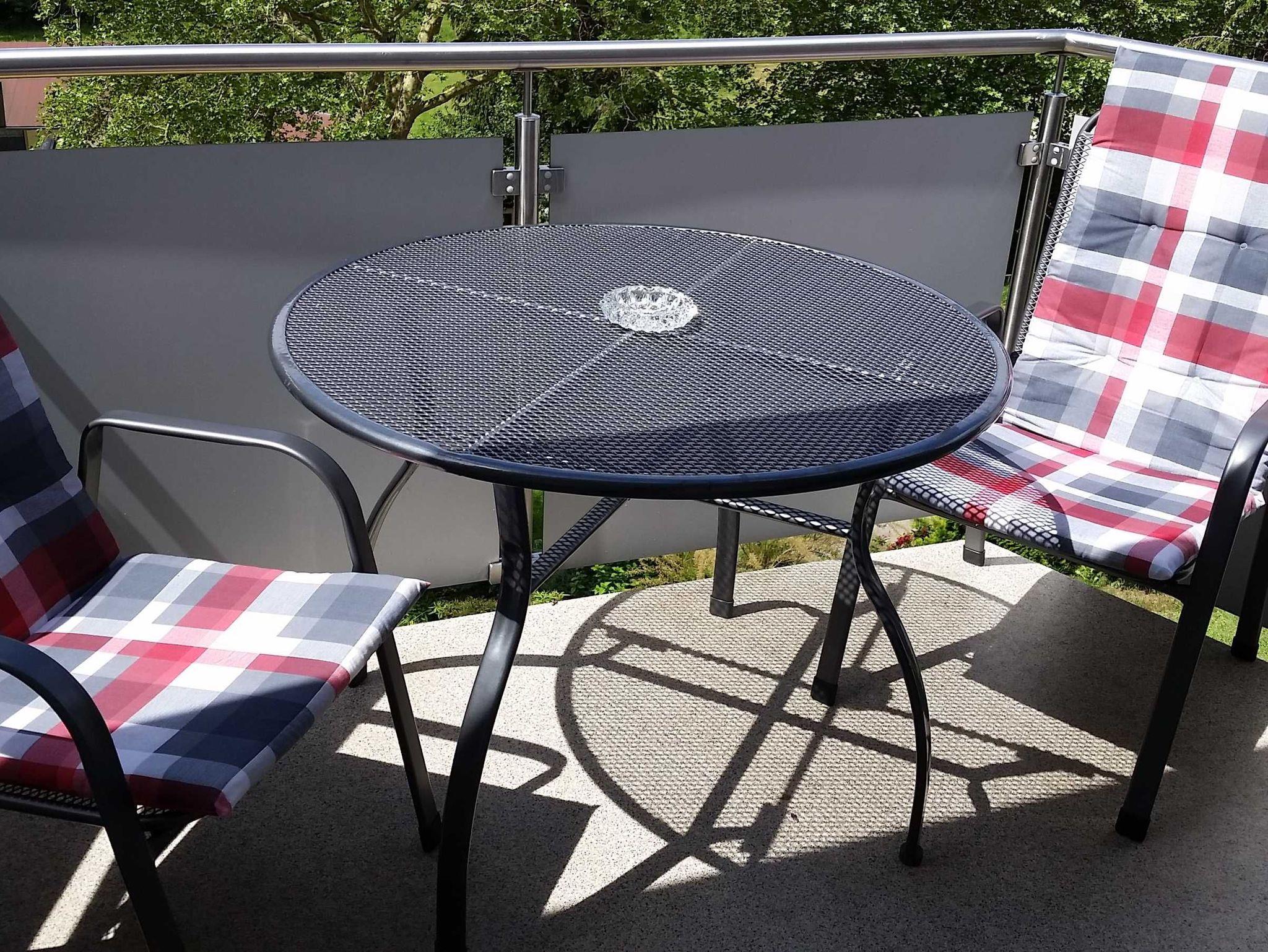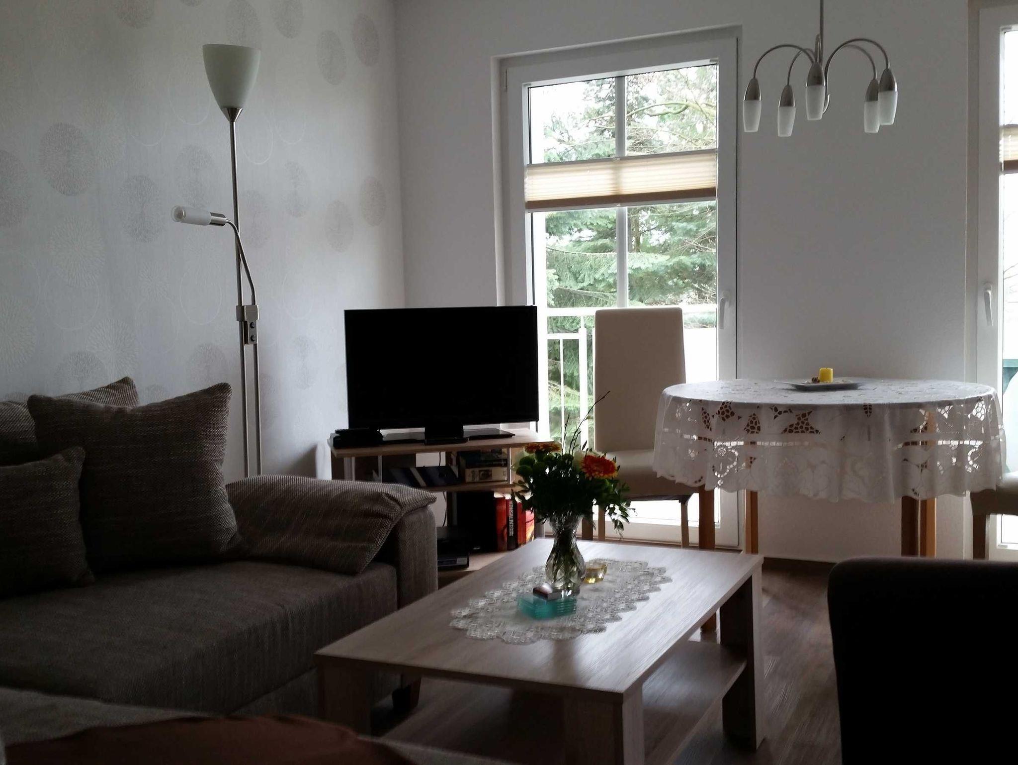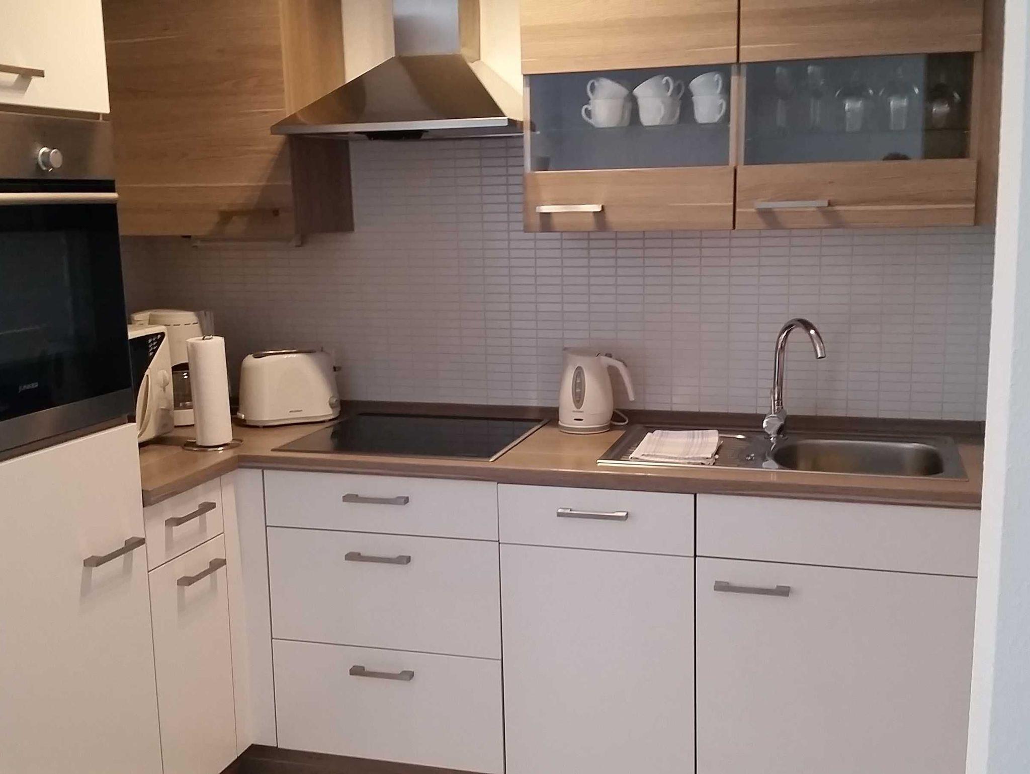 Die moderne, gepflegte NICHTRAUCHER-Ferienwohnung (45 qm) im 1. Obergeschoss mit Balkon verfügt über einen Wohnraum (Sat-TV, Radio, sowie eine offene Küche mit Kaffeemaschine, Toaster, Eierkocher, Cerankochfeld, Backofen, Geschirrspüler,Kühlschrank mit Gefrierfach etc.), einen Schlafraum (Doppelbett, Kommode und Kleiderschrank) sowie ein Bad mit Fenster und Dusche /WC. Erstausstattung Bettwäsche inklusive. Handtücher sind bitte mitzubringen oder mietbar für 8,-€ p.Person (Erstausstattung). PKW ? Stellplatz kostenlos vorhanden.