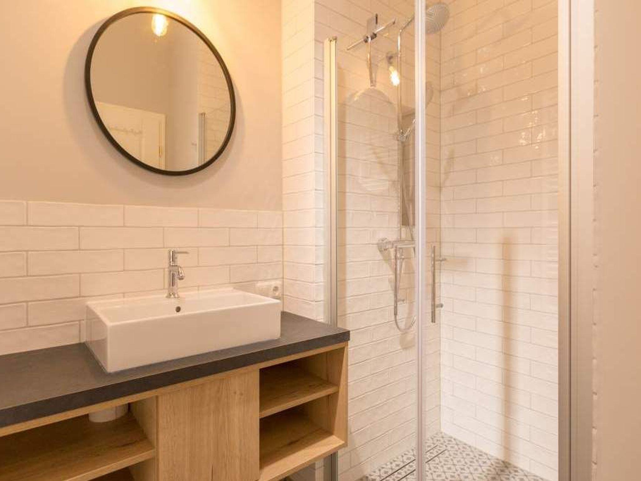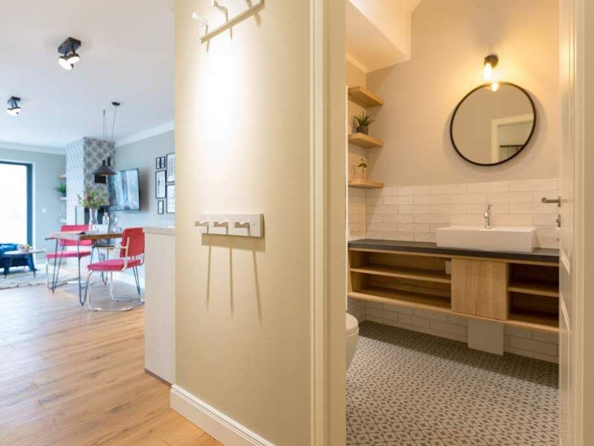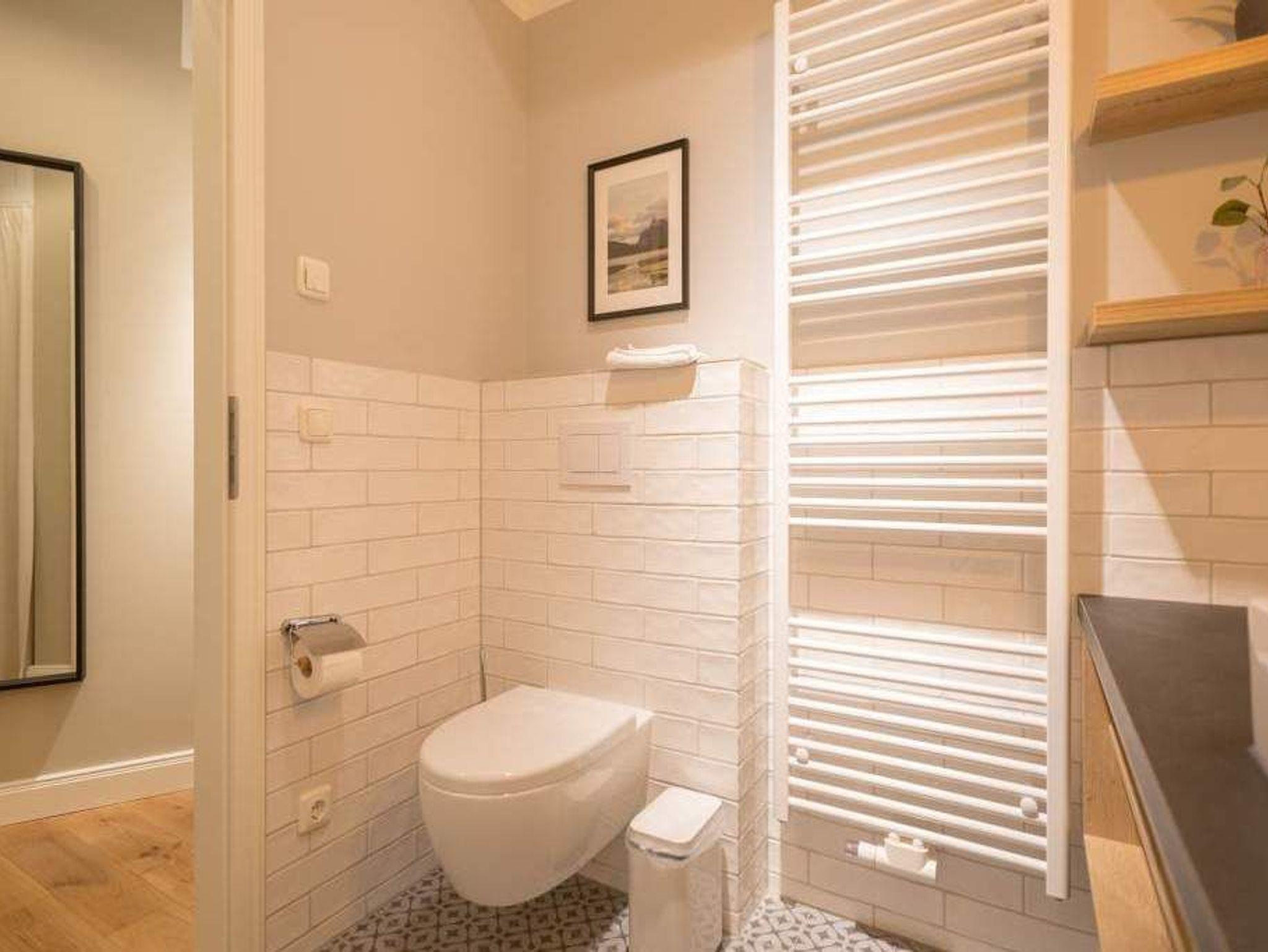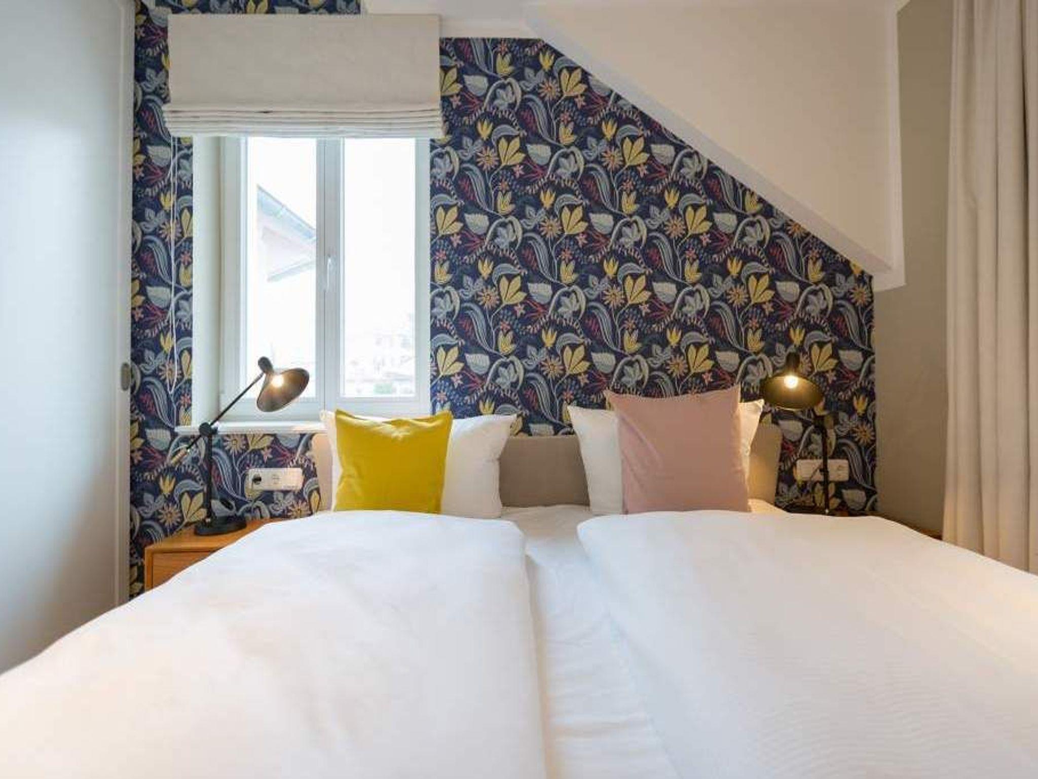 Endlich einmal wieder Zeit zu zweit oder einfach nur für sich ? dieses kleine und kuschelige Urlaubsparadies im Dachgeschoss der Villa Bellevue ist der ideale Ort, auszuspannen und sich zu erholen. Das Zwei-Zimmer-Appartement bietet mit seinen 50 Quadratmetern Platz für zwei Personen. Hell und stilvoll von einer Innenarchitektin konzipiert, sind der Stress und die Hektik des Alltags binnen kurzer Zeit vergessen. Vom ausgewogenen Farbkonzept bis zu den Design-Möbeln ist alles harmonisch aufeinander abgestimmt. Der offene Wohn-Essbereich lädt mit einer gemütlichen Sofalandschaft zum Loslassen ein. Ein wunderschöner Gas-Kamin mit Vintage-Fliesenoptik spendet an kühlen Abenden und stürmischen Tagen Wärme und Geborgenheit. Ganze 42 Zoll misst der Flat-TV. Vom Wohnzimmer aus haben Sie Zugang zum Balkon. Was gibt es schöneres als unter freiem Himmel in der Morgensonne zu frühstücken. Zum Essen können Sie sich natürlich an den schönen Echtholztisch mit den trendig roten Freischwingern setzen. Die Küche ist mit allem ausgestattet, was Sie zur Zubereitung eines genussvollen Menü benötigen könnten ? inklusive elegantem Geschirr. Vergnügen bereitet das große und komfortable Boxspringdoppelbett (1,80 m x 2,00 m) im Schlafzimmer. Viel Platz für die Urlaubsgarderobe bietet hier der hochwertige Einbauschrank. Das Badezimmer verfügt über eine geräumige Dusche, einen Waschtisch und ein WC. Die Handtücher liegen bei der Anreise bereit und die Betten sind bezogen. Das WLAN ist kostenfrei. Für Ihr Auto gibt es am Haus einen Stellplatz.
