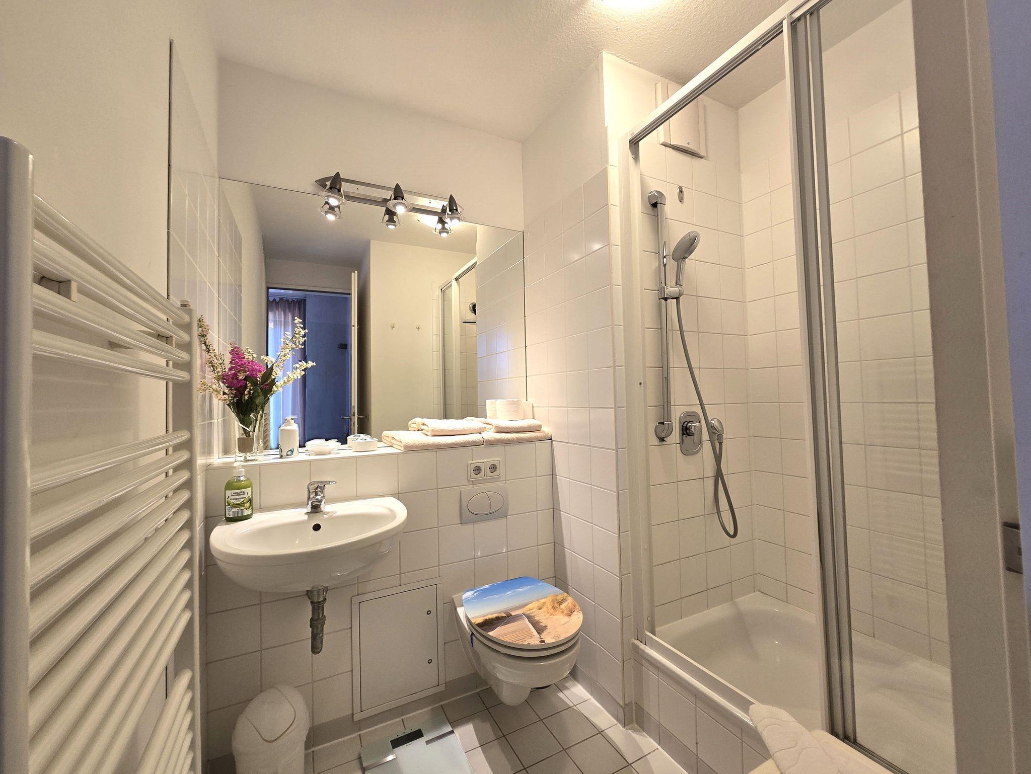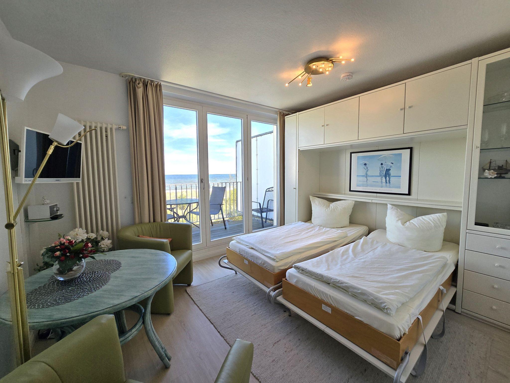 Komfortables, modernes Appartement (30 qm) in der 3. Etage mit Balkon und einem herrlichen Meerblick. Ein kombinierter Wohn-u. Schlafraum, einer Küchenzeile (mit Geschirrspüler, Mikrowelle, E-Herd, Kühlschrank, Kaffeemaschine etc.), W-Lan, Kabel-TV, Radio, Safe sowie ein Bad mit DU/WC + Haarfön. Parkplatz. Die Erstausstattung Bettwäsche und Handtücher ist inklusive.