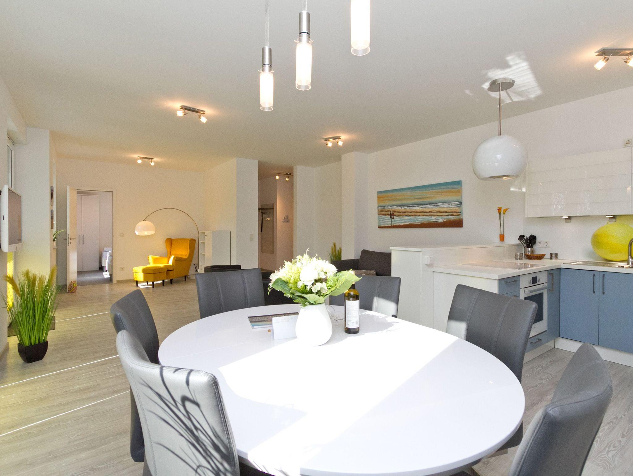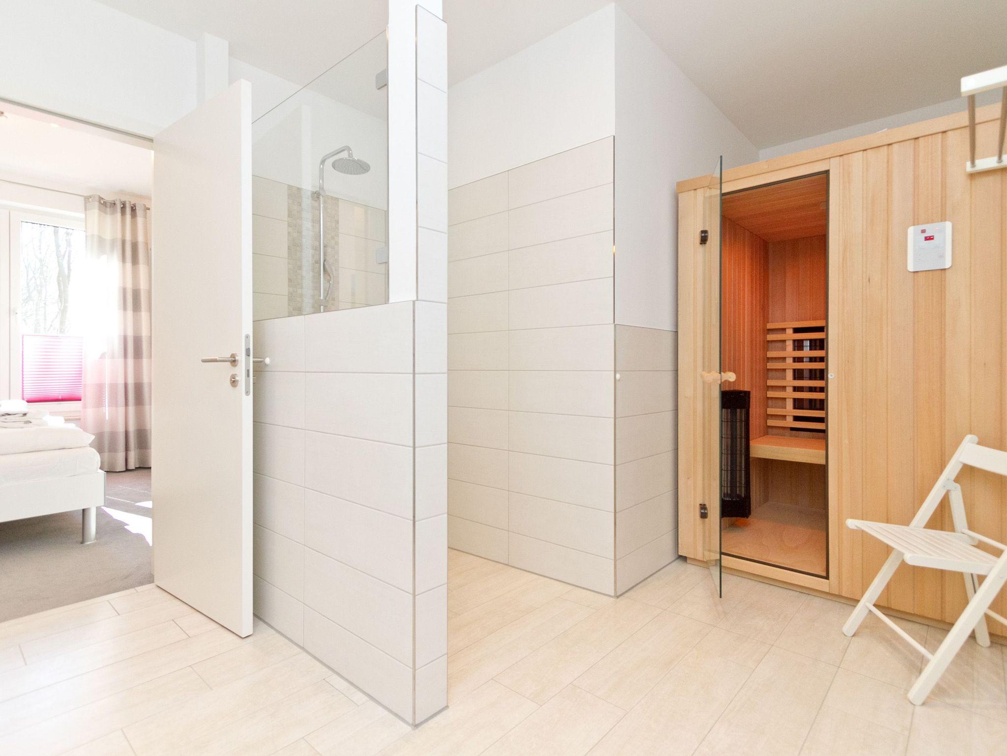 Lass Sonne in dein Leben und Meer. Von Beidem gibt es im Seebad Heringsdorf reichlich. Die Ostsee ist nur einen kurzen Fußmarsch den Kulm hinunter entfernt. Und Sonne flutet den ganzen Tag durch die großen Fenster in dieses großzügige 111 Quadratmeter große Appartement Nummer 10 im Erdgeschoss. Mit seinen zwei Schlafzimmern und der Aufbettungsmöglichkeit im Wohnzimmer können hier bis zu vier Erwachsene und zwei Kinder Auszeiten und es sich zusammen einfach gut gehen lassen. Das große Wohn-Esszimmer wird zum Zentrum für gemeinsame Stunden. Ob am runden Tisch oder kuschelig auf der Couch ? in der Villa Dorian können Sie wunderschöne Stunden und Momente erleben. Den Essplatz mit sechs Stühlen können wir auf Wunsch um einen Kinderstuhl erweitern. Gegen Aufpreis stellen wir auch einen Kinderhochstuhl zur Verfügung. Das Sofa lässt sich zu einem 1,80 m x 2,00 m großen Bett ausziehen. Alles hat ein offenes und helles Flair. Zum Wohn- und Esszimmer gehört eine voll ausgestattete Küche. Hochwertige Markengeräte und feines Geschirr sind hier komplett vorhanden. Wer gerne in Büchern schmökert, für den gibt es eine Leseecke mit urigem Ohrensessel. Vom Wohnzimmer aus haben Sie Zugang zu einer schönen, 31 Quadratmeter großen Terrasse. Sonnenbaden und Essen unter freiem Ostseeinselhimmel ? Willkommen im Paradies. Das Domizil auf Zeit verfügt über zwei Schlafzimmer. Eines wartet mit einem komfortablen und riesigen Doppelbett (2,00 m x 2,00 m) nur darauf, Ihnen erholsame Träume zu bescheren. Das zweite Schlafzimmer hat zwei Einzelbetten (1,00 m x 2,00 m). In beiden Zimmern sind geräumige Schränke vorhanden. Von einem der Schlafzimmer geht?s ins Masterbad mit eigener Infrarotsauna ? eine kreislaufschonende, doch tiefenwirksame Art ins Schwitzen zu kommen. Die großzügig geschnittene Dusche (1,60 m x 1,00 m) bietet Duschspaß für die ganze Familie. Außerdem ist das Bad mit einem Doppelwaschtisch ausgestattet. Das zweite Badezimmer verfügt ebenfalls über eine Dusche, Waschtisch und WC. Das WLAN ist kostenfrei nutzbar. Handtücher liegen bereit und die Betten sind bei Ihrer Anreise bezogen. Zu dem Appartement gehören zwei hintereinander liegende Stellplätze. Und Sie haben einen Briefkasten.