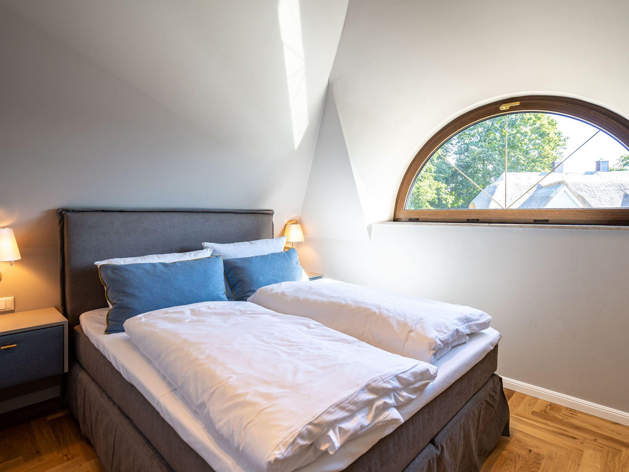 Willkommen im Ferienhaus Reet [&] Meer N°2 im Seebad Heringsdorf. Diese großzügige Doppelhaushälfte erstreckt sich über drei Etagen und bietet Platz für bis zu 8 Personen. Im Erdgeschoss erwartet Sie eine offene Wohnküche mit einem gemütlichen Essplatz und einer einladenden Sitzgruppe. Hier können Sie gemeinsam Mahlzeiten zubereiten und genießen. Ein Flat-TV und ein Kaminofen sorgen für zusätzlichen Komfort und eine behagliche Atmosphäre. Von hier aus gelangen Sie auf die Terrasse, die mit Gartenmöbeln ausgestattet ist und Ihnen eine schöne Möglichkeit bietet, die frische Luft im Freien zu genießen. Das Erdgeschoss verfügt außerdem über ein Badezimmer mit Dusche, WC und einer Finnischen Sauna, in der Sie wunderbar entspannen können. Ein Waschtrockner steht Ihnen ebenfalls zur Verfügung. Im ersten Obergeschoss finden Sie drei Schlafzimmer, jeweils mit einem komfortablen Boxspringdoppelbett (1,80m x 2,00m), einem Einbaukleiderschrank und in zwei der drei Zimmer ein Flat-TV. Hier können Sie sich zurückziehen und erholsame Nächte verbringen. Zusätzlich gibt es ein Badezimmer mit Dusche, Waschtisch und WC. Zwei Schlafzimmer bieten Ihnen zudem Zugang zum Balkon mit Sonnenliegen, von dem aus Sie den Blick auf die Umgebung genießen können. Im Dachgeschoss befindet sich ein weiteres Schlafzimmer (aktuell noch ohne Verdunklungsmöglichkeit) mit einem Boxspringdoppelbett, Flat-TV und einer Kommode. Hier finden Sie auch ein kleines Badezimmer mit Waschtisch und WC. Das Dachgeschoss bietet somit zusätzlichen Platz für Ihre Gäste. Für Ihre Fahrzeuge steht ein Carport mit zwei Stellplätzen (mit E-Ladestation - kostenpflichtig) zur Verfügung, damit Sie bequem an- und abreisen können. Kostenfreies WLAN ist selbstverständlich ebenfalls vorhanden, sodass Sie mit Ihren Lieben in Verbindung bleiben können. Das Ferienhaus Reet [&] Meer N°2 in der Triftstraße 10f verspricht Ihnen einen unvergesslichen Aufenthalt in Heringsdorf. Genießen Sie die Annehmlichkeiten des Hauses, erkunden Sie die malerische Umgebung und erleben Sie erholsame Tage an der Ostsee.