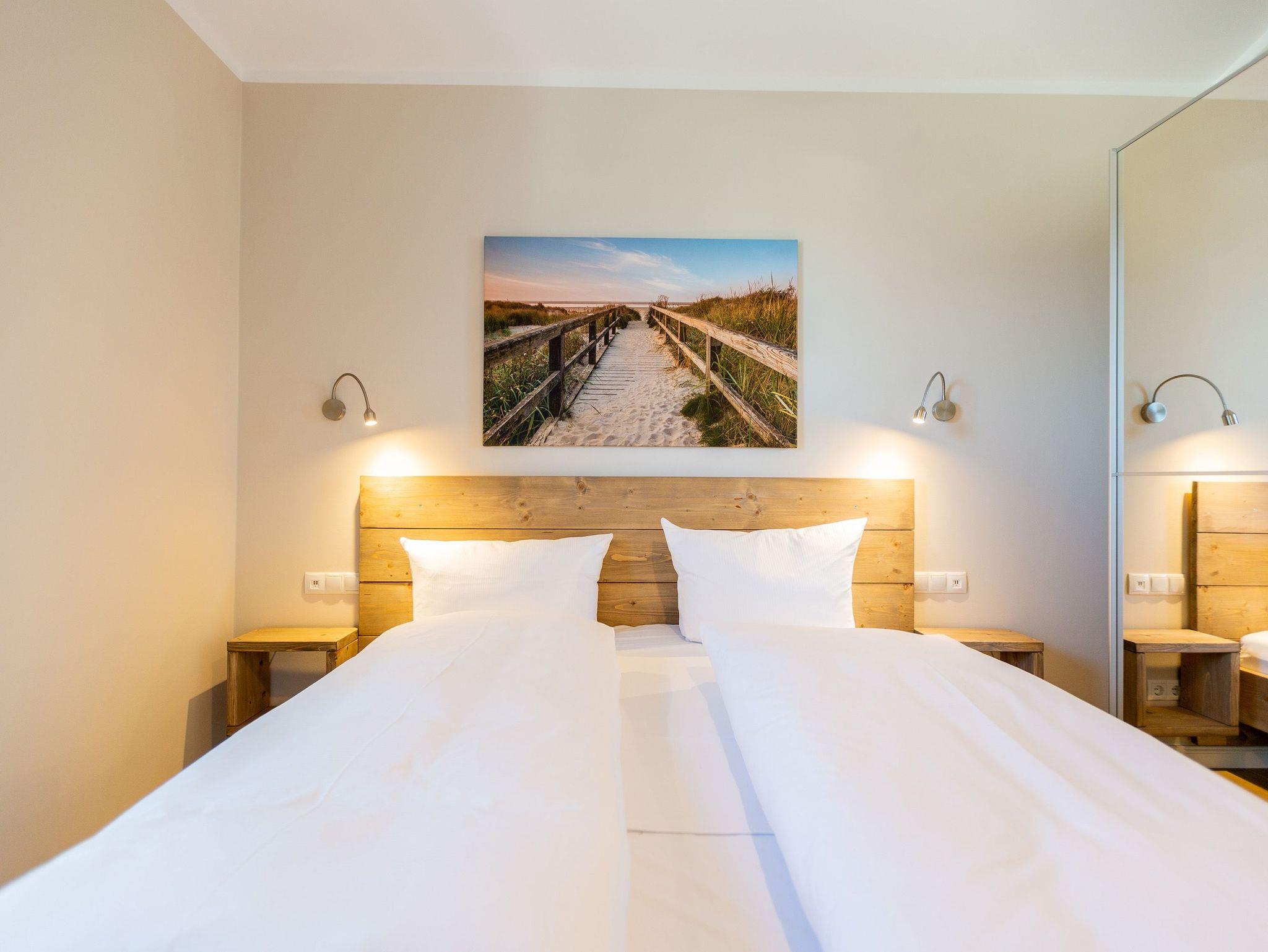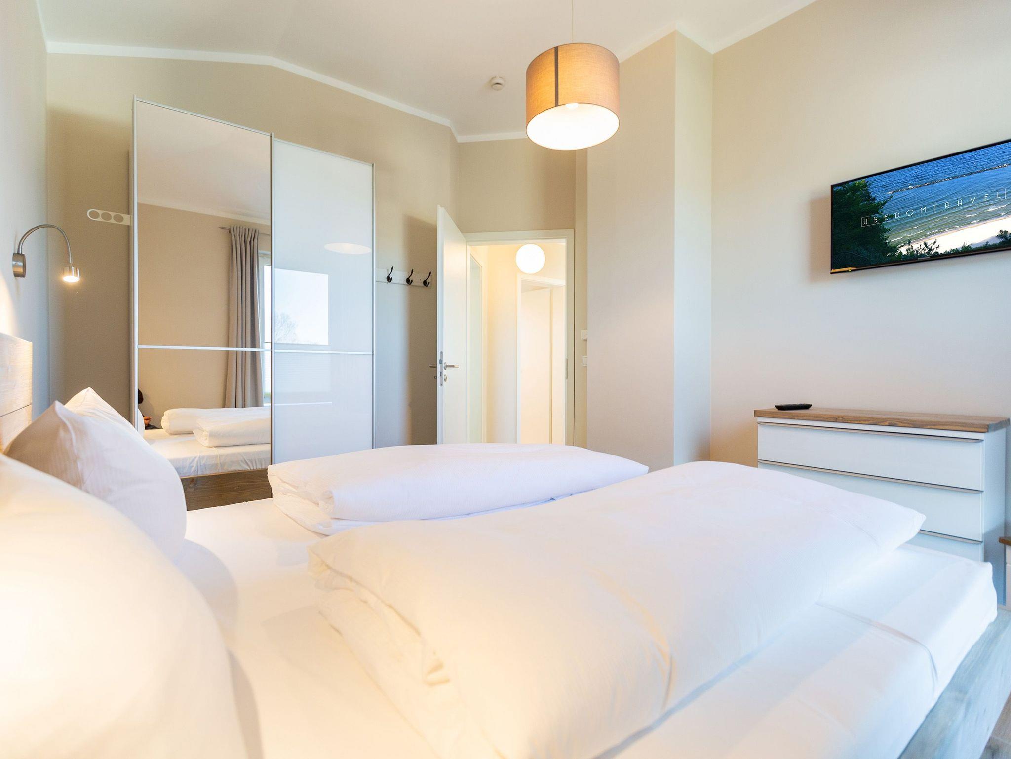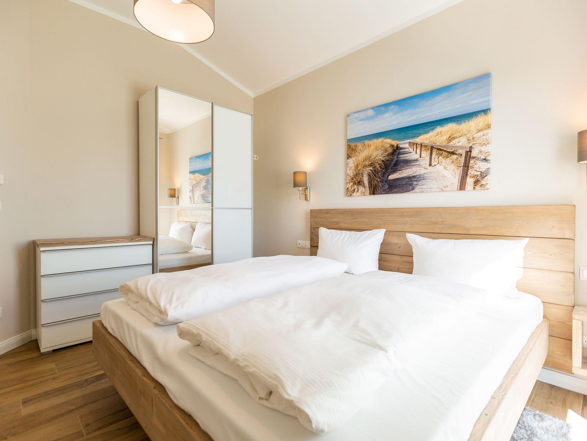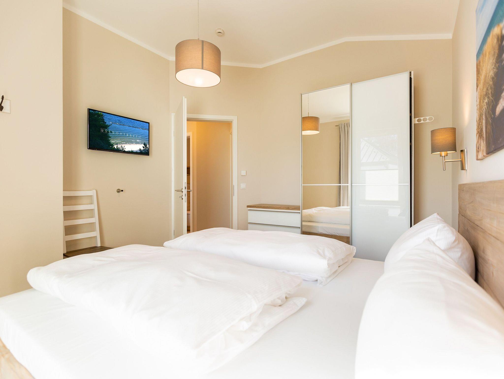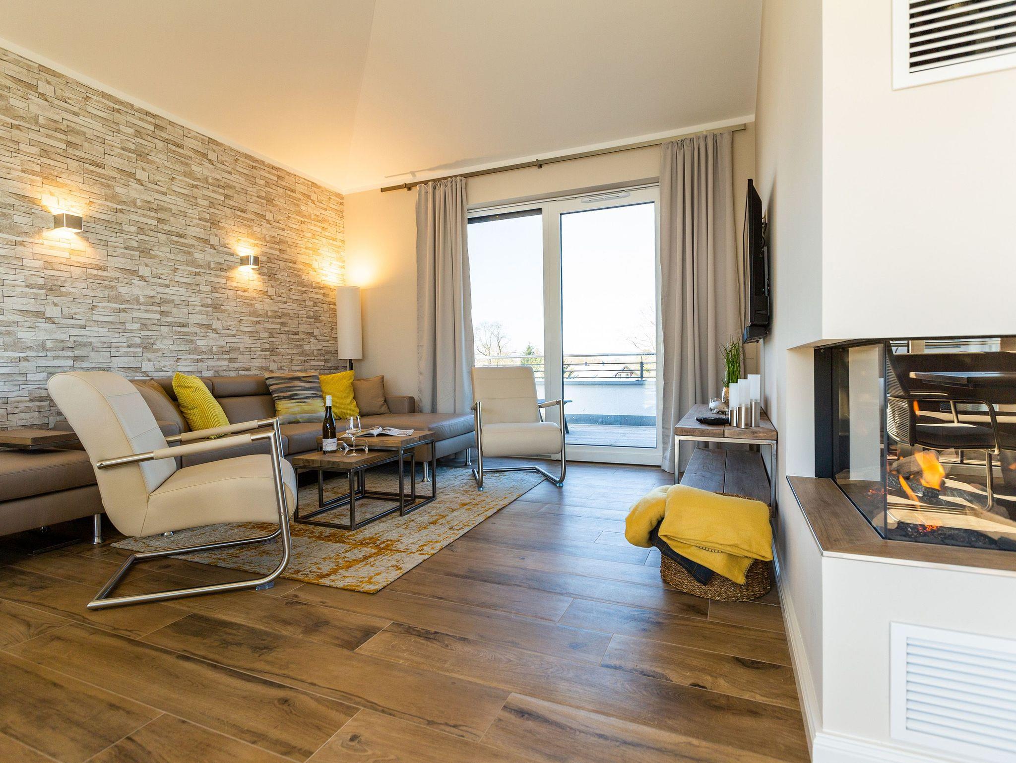 Viel Platz und ein modernes, stylisches Innendesign empfängt Ostseeliebhaber im Penthouse Nummer 5, direkt unter dem Dach des Quartiers am Fischerstrand. Der Fahrstuhl fährt Sie bis in die Wohnung. Hier können bis zu sechs Personen und zwei Kinder bis drei Jahre (im Kinderreisebett) einen schönen Urlaub verleben, denn das Appartement bietet auf seinen 105 Quadratmetern neben einem wunderschönen, offenen Wohn-Esszimmer gleich drei Schlafzimmer. Doch bevor Sie sich zur Ruhe betten, können Sie das helle und stilvoll eingerichtete Wohnzimmer mit Gas-Kamin und Flat-TV genießen. Das große Ledersofa und die Ledersessel sind komfortable Relaxlandschaften, die schnell wieder neue Energie geben. Naturmaterialien wie Holz und Leder geben dem Interieur ein rustikales und natürliches Flair. Die Nutzung des WLANs ist kostenfrei. Das Kochen wird in diesem Feriendomizil zu einem gemeinschaftlichen Event. Denn die frei stehende Kochinsel mit Tresen und Barhockern bietet sich geradezu an, daran gemeinsam zu schnippeln, zu köcheln und zu erzählen. Die offene Küche ist voll ausgestattet mit hochwertigen Markengeräten und feinem ASA-Geschirr. Zum Essen eignen sich der schöne Holztisch und die kultigen Freischwinger ideal. Ist das Wetter schön ? was auf Usedom oft der Fall ist -, kann das Dinner auch gern nach draußen auf den Balkon oder die wunderbar großzügige Sonnenterrasse verlegt werden. Knapp 21 Quadratmeter Wohlfühl-, Sonnentank- und Entspannungszone Richtung Süd-Westen lassen den Stress des Alltags schnell vergessen. Die beiden fast identischen, geräumigen Schlafzimmer verfügen über zwei komfortable Doppelbetten (1,80 m x 2,00 m), Flat-TVs und viel Ablagemöglichkeit. Im dritten Schlafzimmer steht ein Etagenbett (0,90 m x 2,00 m). Auch hier kann in den Schränken viel Urlaubsgepäck verstaut werden. Das schöne Tageslichtbad mit zwei Waschtischen, WC und Regendusche wird durch die Panoramasauna zu einem eigenen, kleinen Spa-Bereich. Entspannen Sie bei kuschelig warmen Temperaturen. In einem Hauswirtschaftraum stehen eine Waschmaschine und ein Trockner zur kostenfreien Nutzung zur Verfügung. Stress gibt es beim Frischmachen in diesem Penthouse nicht. Dafür sorgt ein zweites Badezimmer, in dem ebenfalls eine Regendusche, ein Waschtisch und ein WC vorhanden sind. Für das Rund-um-sorglos-Urlaubspaket sind die Betten bei der Anreise frisch bezogen und Handtücher liegen für Sie bereit. Zu der Wohnung gehören zwei hintereinander liegende Pkw-Stellplätze.