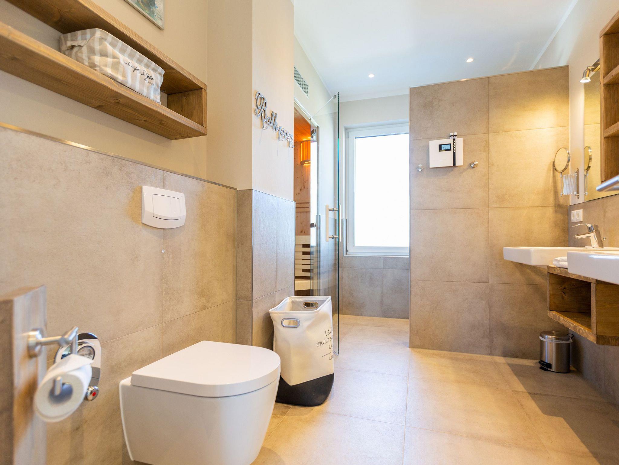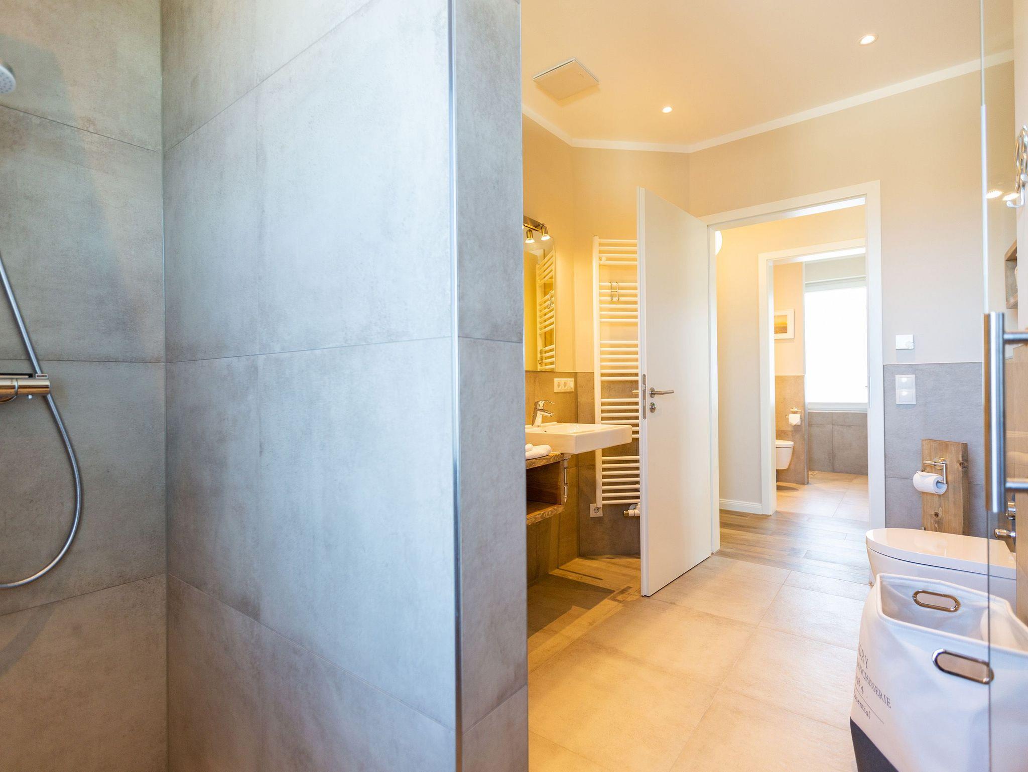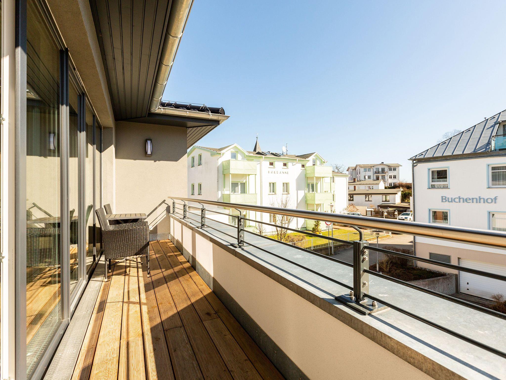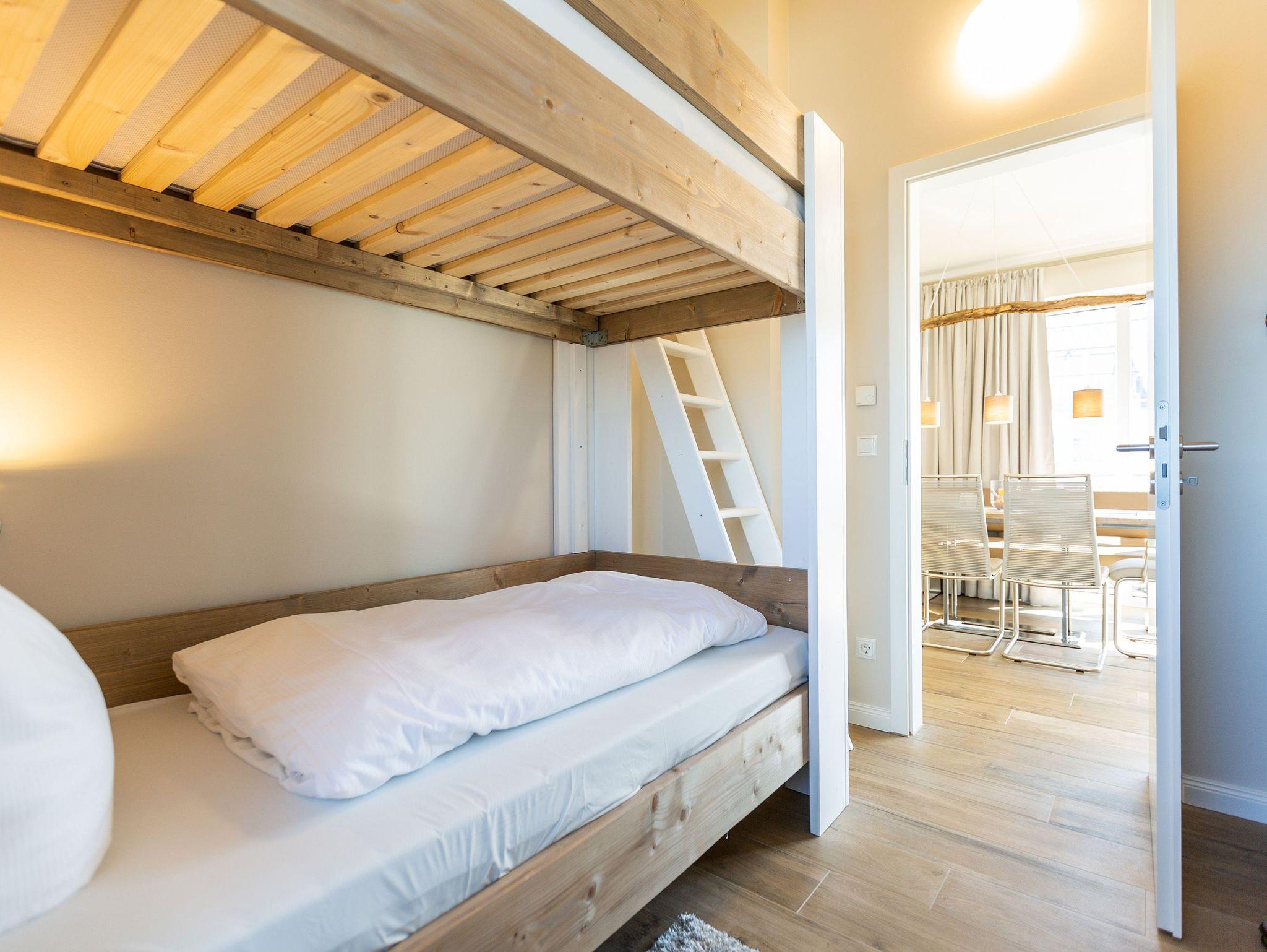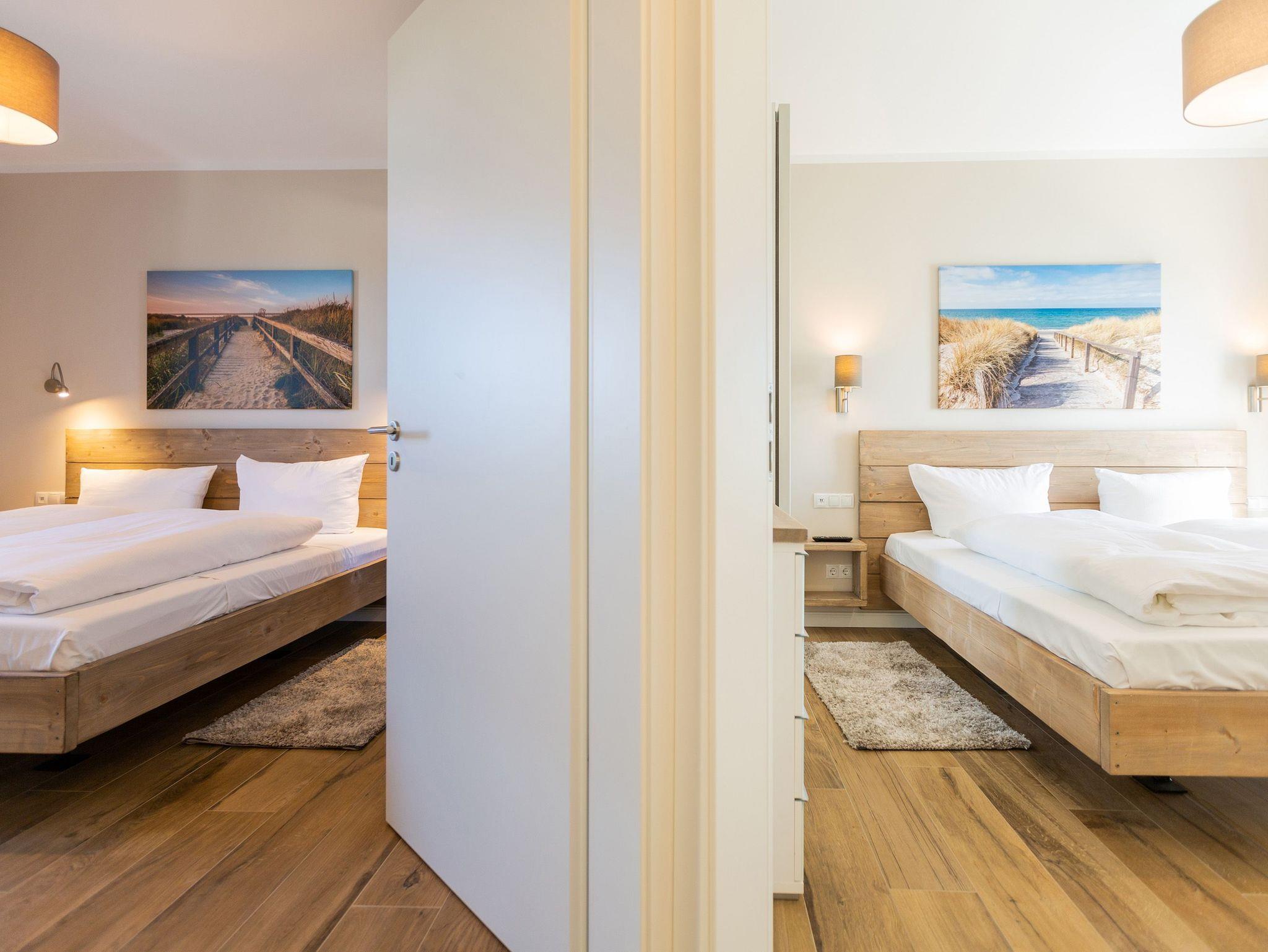 Viel Platz und ein modernes, stylisches Innendesign empfängt Ostseeliebhaber im Penthouse Nummer 5, direkt unter dem Dach des Quartiers am Fischerstrand. Der Fahrstuhl fährt Sie bis in die Wohnung. Hier können bis zu sechs Personen und zwei Kinder bis drei Jahre (im Kinderreisebett) einen schönen Urlaub verleben, denn das Appartement bietet auf seinen 105 Quadratmetern neben einem wunderschönen, offenen Wohn-Esszimmer gleich drei Schlafzimmer. Doch bevor Sie sich zur Ruhe betten, können Sie das helle und stilvoll eingerichtete Wohnzimmer mit Gas-Kamin und Flat-TV genießen. Das große Ledersofa und die Ledersessel sind komfortable Relaxlandschaften, die schnell wieder neue Energie geben. Naturmaterialien wie Holz und Leder geben dem Interieur ein rustikales und natürliches Flair. Die Nutzung des WLANs ist kostenfrei. Das Kochen wird in diesem Feriendomizil zu einem gemeinschaftlichen Event. Denn die frei stehende Kochinsel mit Tresen und Barhockern bietet sich geradezu an, daran gemeinsam zu schnippeln, zu köcheln und zu erzählen. Die offene Küche ist voll ausgestattet mit hochwertigen Markengeräten und feinem ASA-Geschirr. Zum Essen eignen sich der schöne Holztisch und die kultigen Freischwinger ideal. Ist das Wetter schön ? was auf Usedom oft der Fall ist -, kann das Dinner auch gern nach draußen auf den Balkon oder die wunderbar großzügige Sonnenterrasse verlegt werden. Knapp 21 Quadratmeter Wohlfühl-, Sonnentank- und Entspannungszone Richtung Süd-Westen lassen den Stress des Alltags schnell vergessen. Die beiden fast identischen, geräumigen Schlafzimmer verfügen über zwei komfortable Doppelbetten (1,80 m x 2,00 m), Flat-TVs und viel Ablagemöglichkeit. Im dritten Schlafzimmer steht ein Etagenbett (0,90 m x 2,00 m). Auch hier kann in den Schränken viel Urlaubsgepäck verstaut werden. Das schöne Tageslichtbad mit zwei Waschtischen, WC und Regendusche wird durch die Panoramasauna zu einem eigenen, kleinen Spa-Bereich. Entspannen Sie bei kuschelig warmen Temperaturen. In einem Hauswirtschaftraum stehen eine Waschmaschine und ein Trockner zur kostenfreien Nutzung zur Verfügung. Stress gibt es beim Frischmachen in diesem Penthouse nicht. Dafür sorgt ein zweites Badezimmer, in dem ebenfalls eine Regendusche, ein Waschtisch und ein WC vorhanden sind. Für das Rund-um-sorglos-Urlaubspaket sind die Betten bei der Anreise frisch bezogen und Handtücher liegen für Sie bereit. Zu der Wohnung gehören zwei hintereinander liegende Pkw-Stellplätze.