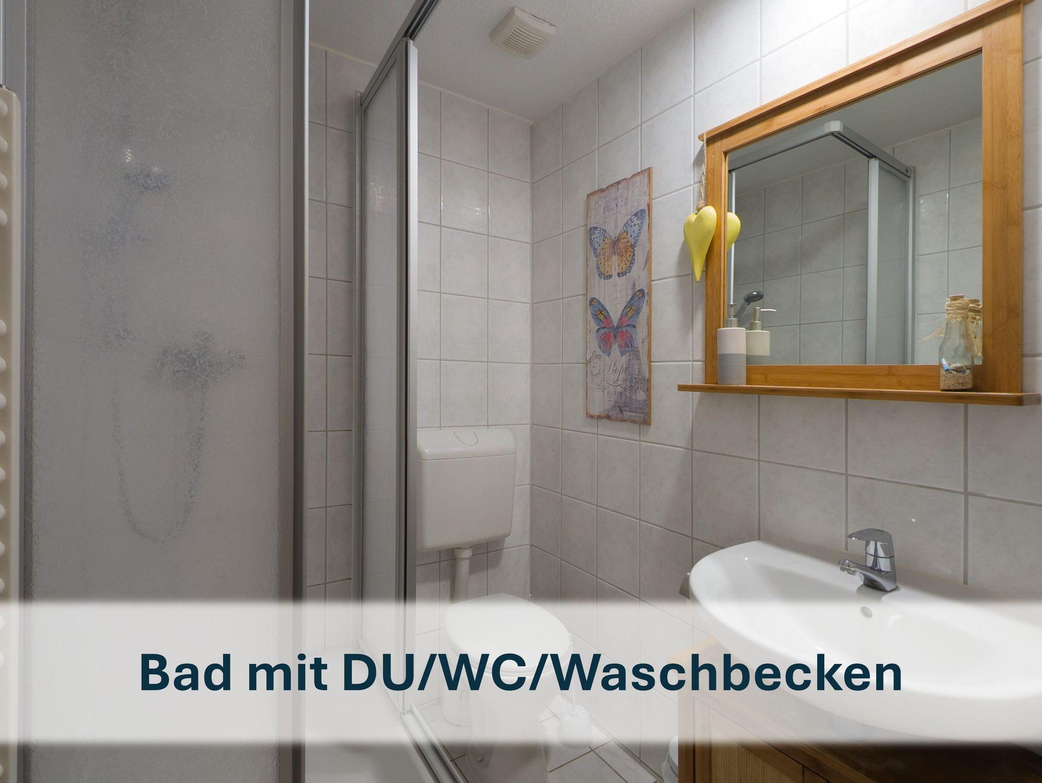 Das Badezimmer ist modern ausgestattet mit Dusche, WC und Haartrockner. Für Ihren Komfort stehen Besen, Handfeger und weitere Reinigungsutensilien bereit.