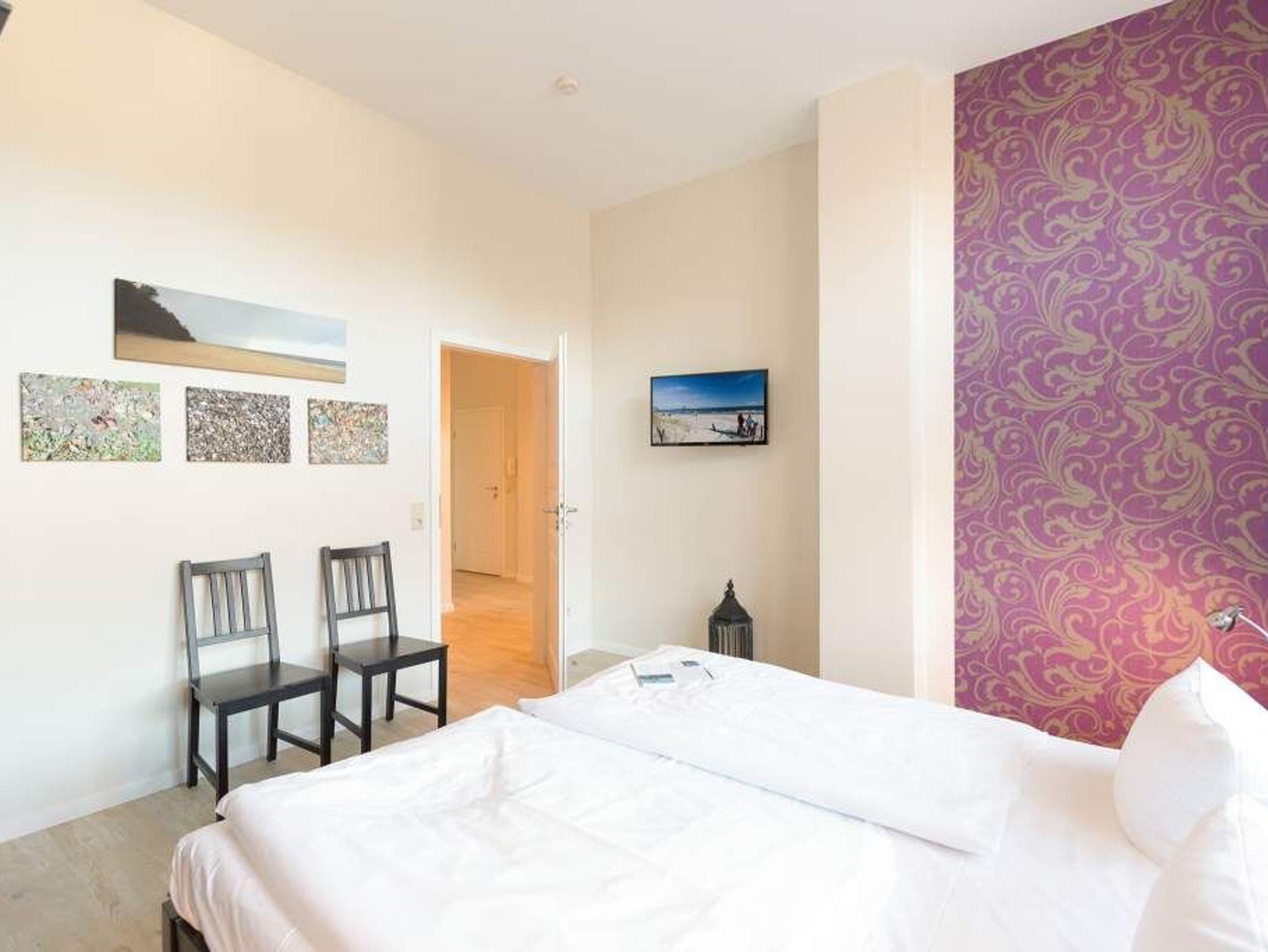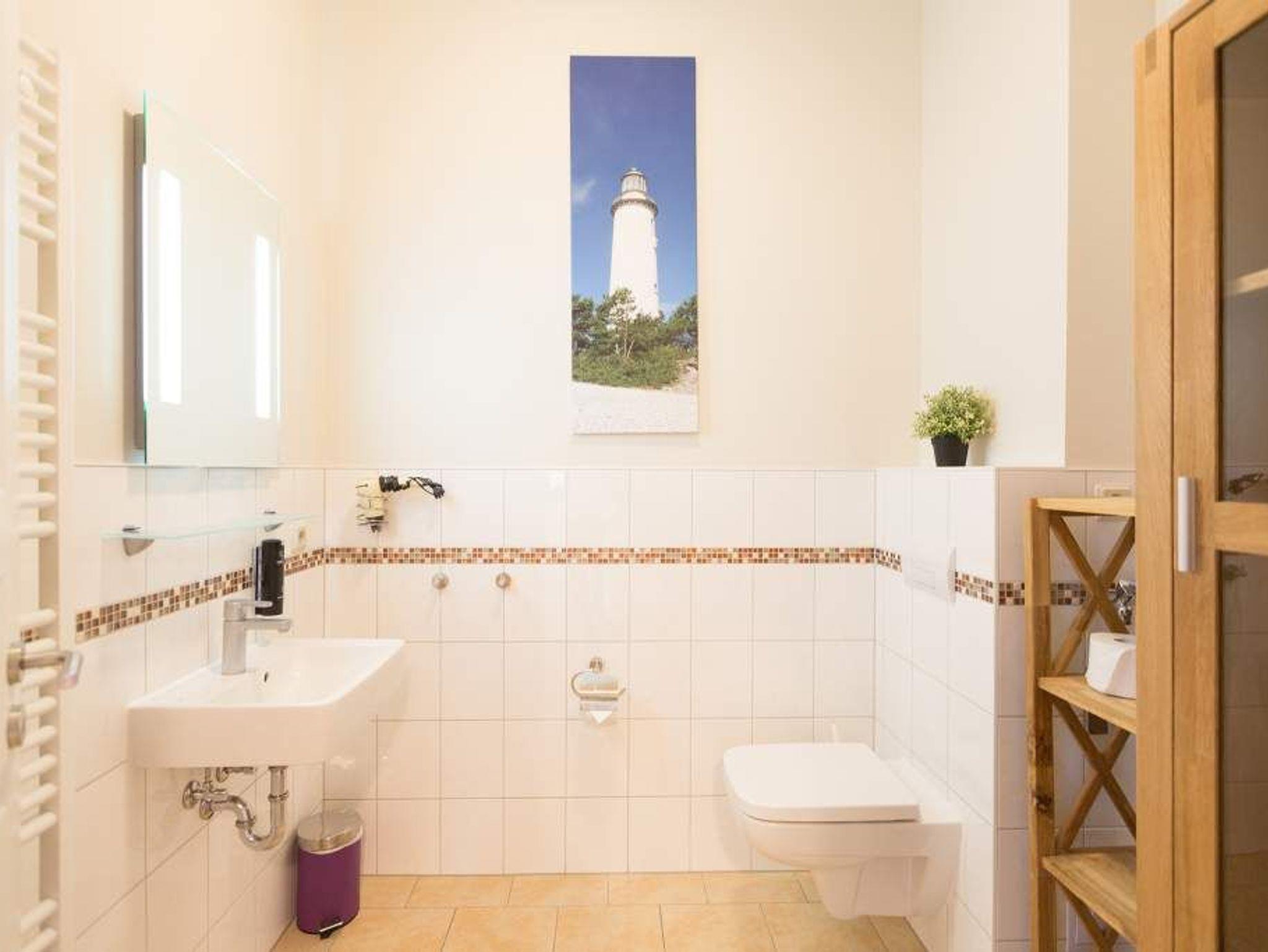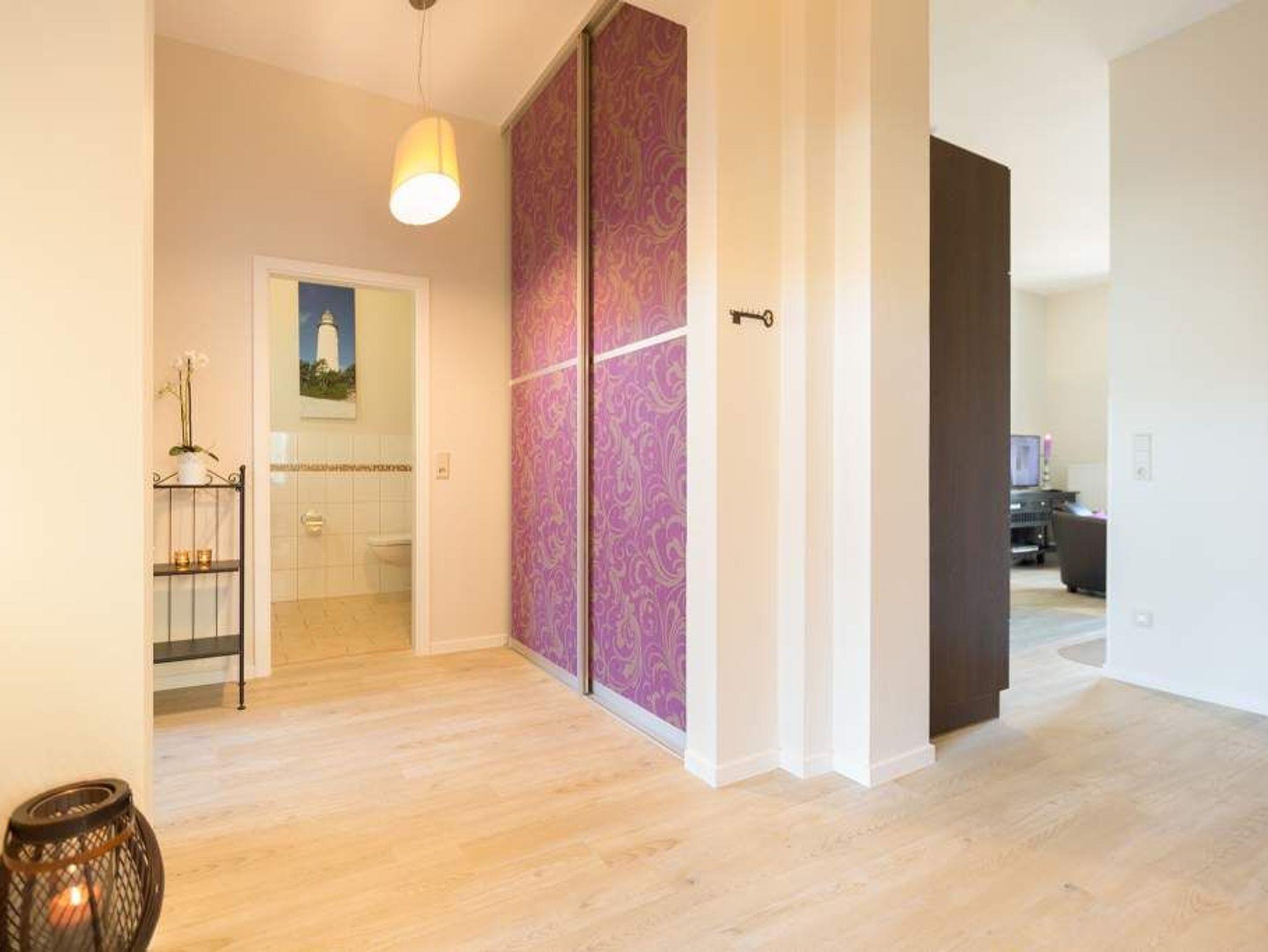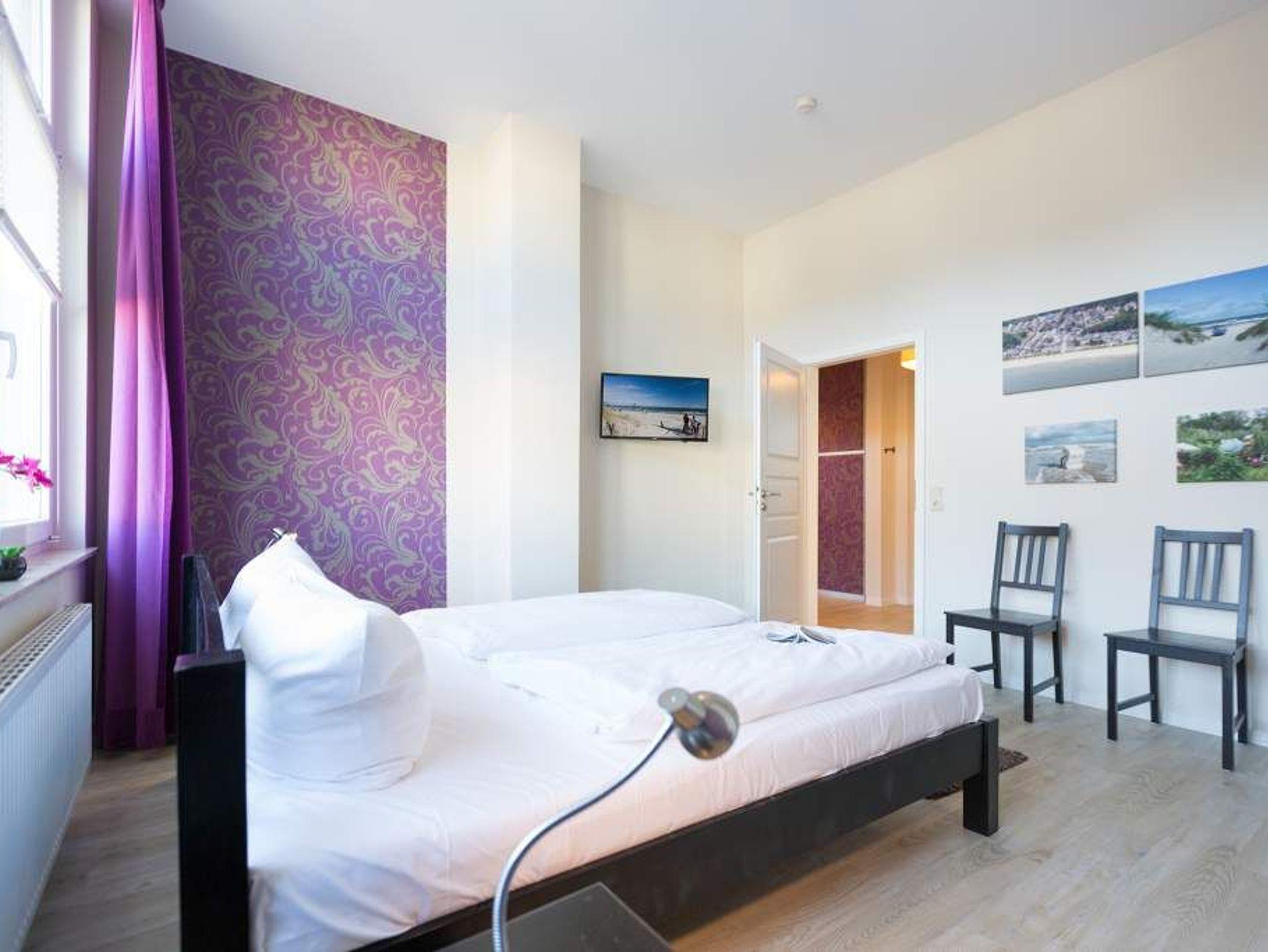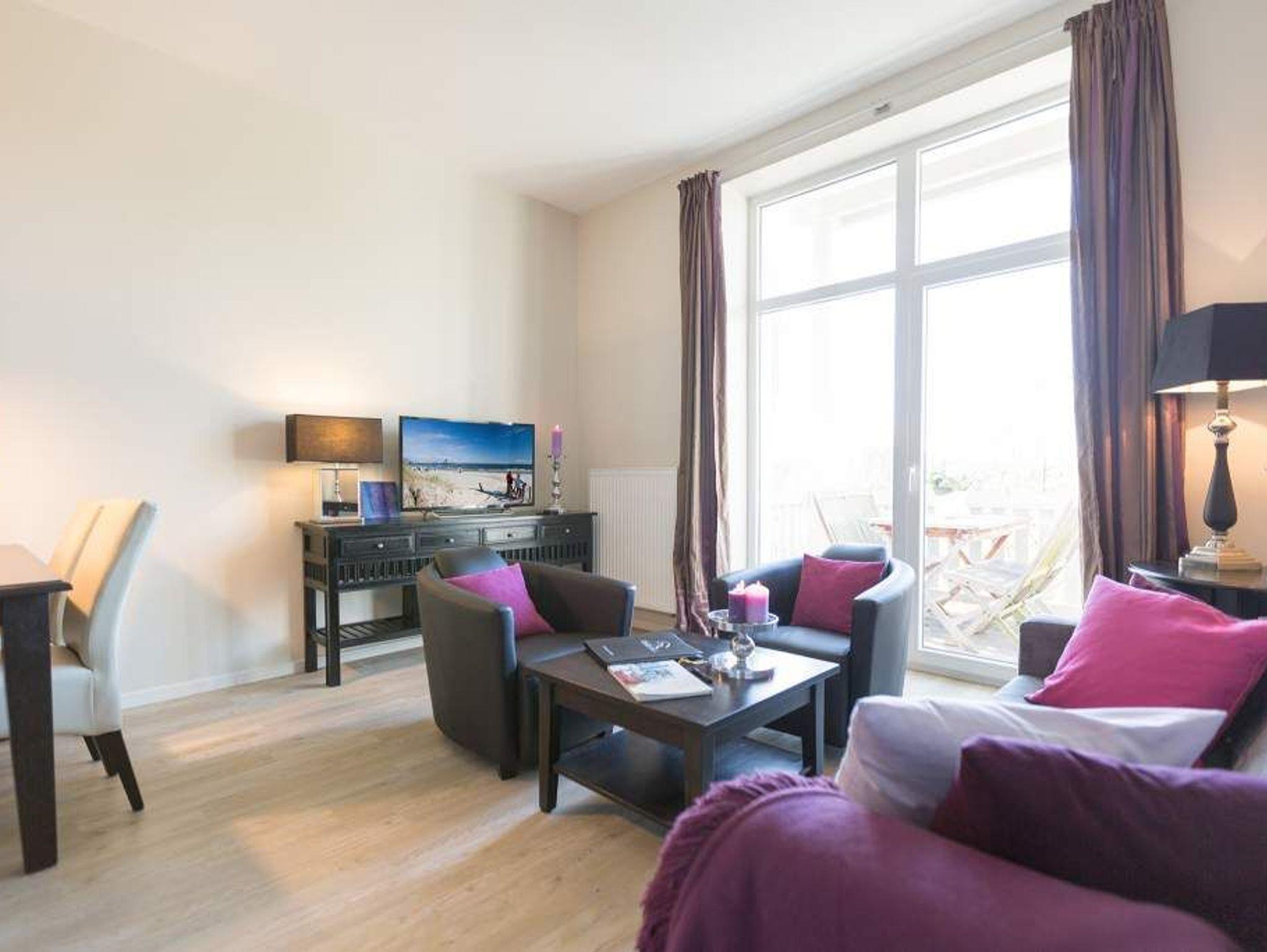 Stylische Farben und ein moderner Look versprühen sofort das passende Urlaubsfeeling. Die schöne 3-Raum-Ferienwohnung (75 qm) befindet sich im 1. Obergeschoss des Hauses und bietet Platz für 4 Erwachsene und ein Kleinkind bis 3 Jahre. An den Wohnbereich mit bequemer Sitzgruppe und schönen Kaminofen schließt sich die offene Küche mit Essplatz an. Auf dem Südbalkon lässt es sich besonders gut relaxen und man genießt den Blick ins Grüne. Die beiden Schlafzimmer mit Doppelbetten und TV, ein Bad mit Dusche und WC und ein Gäste-WC ergänzen die Wohnung. Für die Wohnung steht ein PKW-Stellplatz zur Verfügung. Ein WLAN-Netz im Haus kann kostenfrei genutzt werden. Auf Wunsch stellen wir für unsere kleinen Gäste ein Kinderreisebett (ohne zusätzliche Matratze [&] Bettzeug) und einen Kinderhochstuhl ( gegen einen Aufpreis) zur Verfügung. Für Ihren Komfort sind die Betten bei der Anreise bezogen und Handtücher liegen bereit (Erstausstattung). Für den Tag am Meer steht Ihnen als besonderes Bonbon von Mitte Mai bis Ende September (je nach Witterung) ein Strandkorb am Strand kostenlos zur Verfügung.