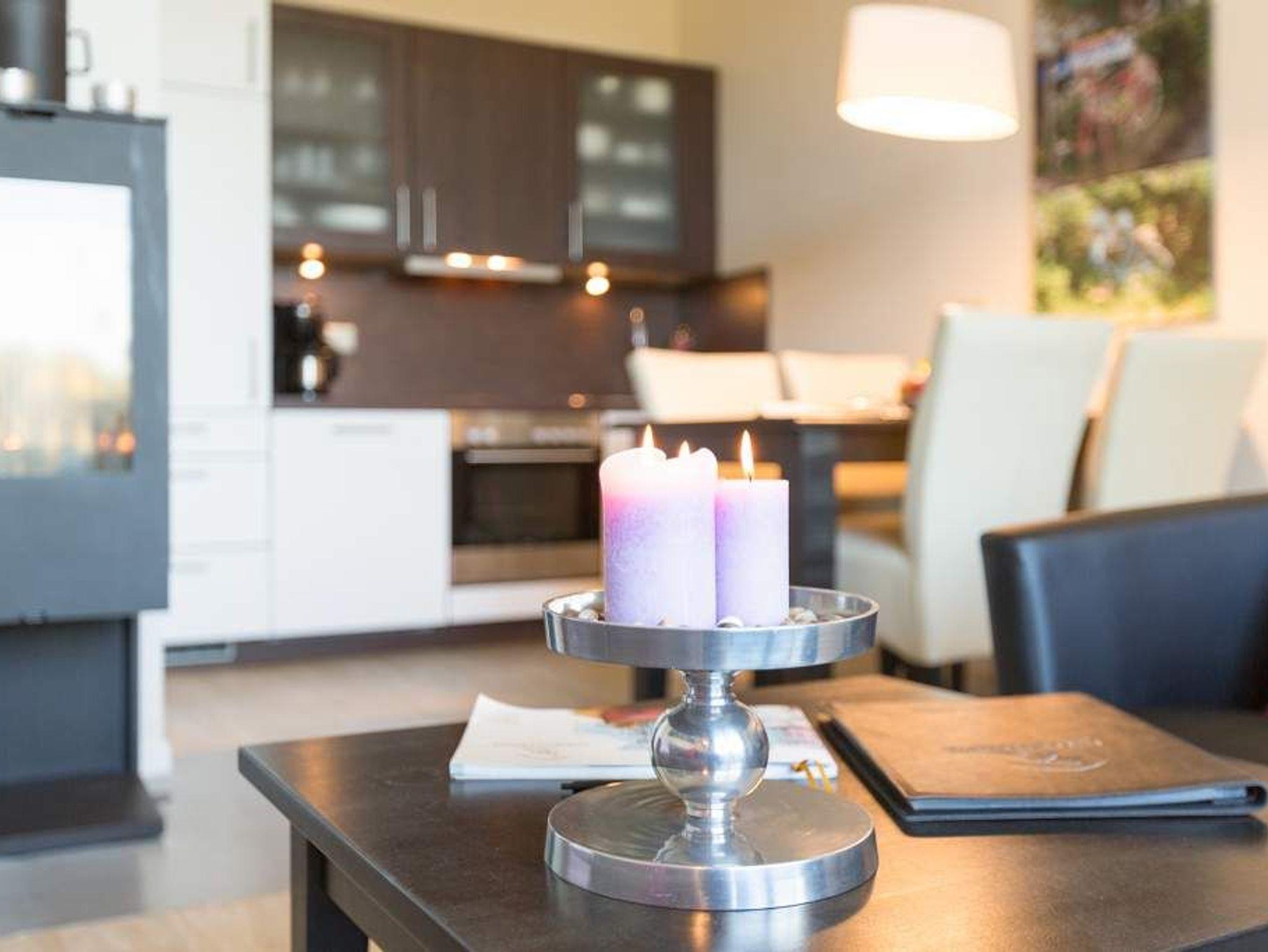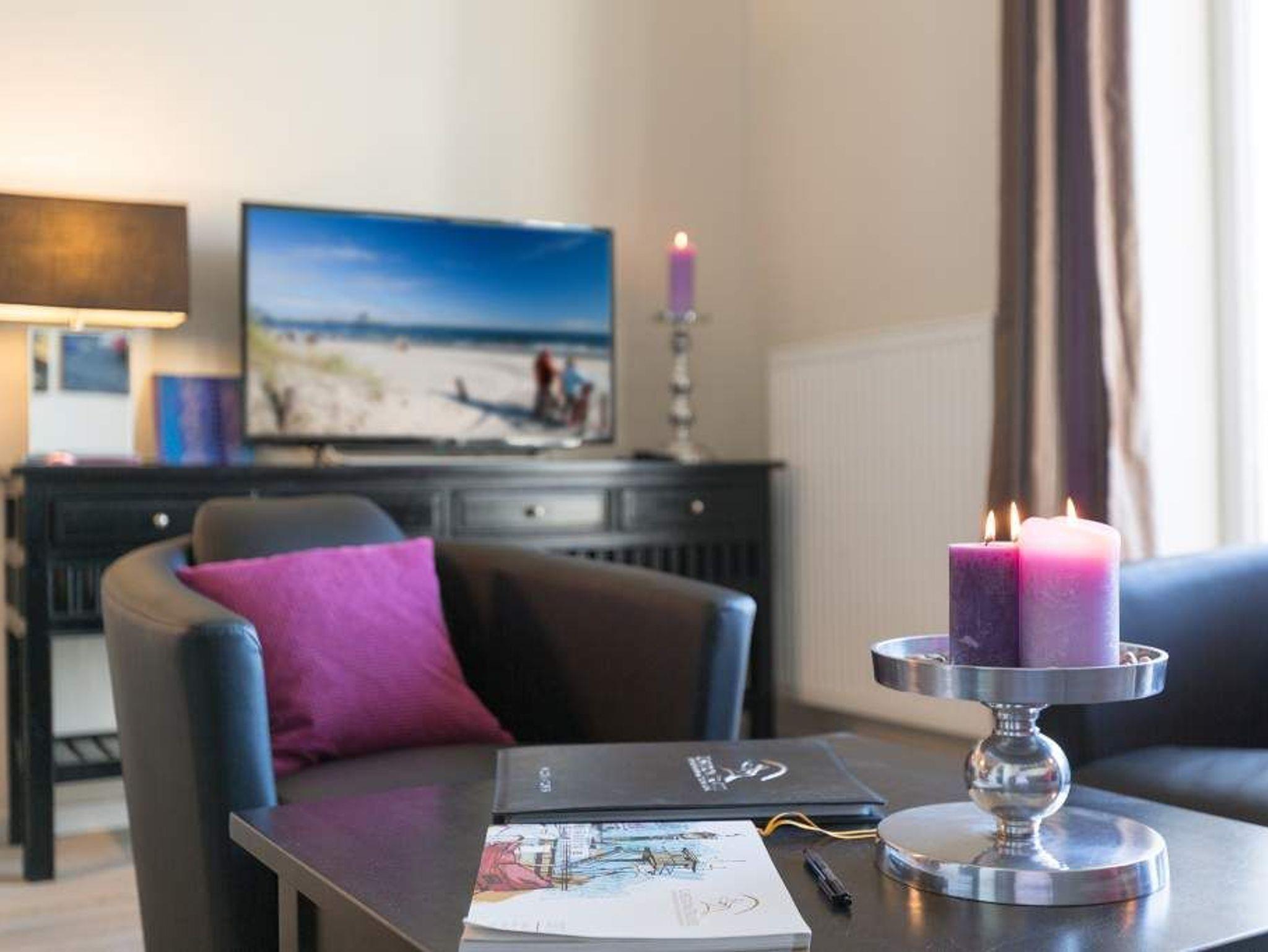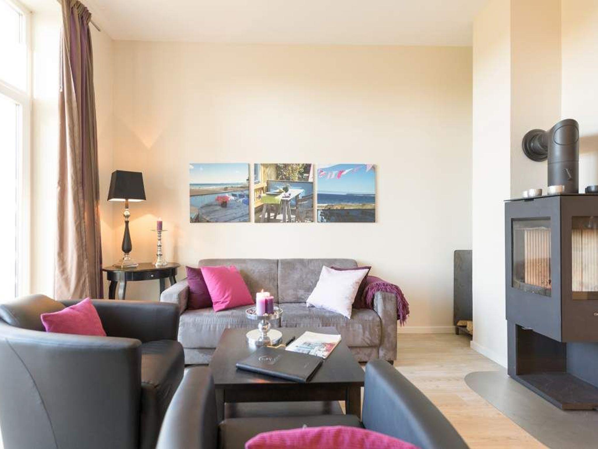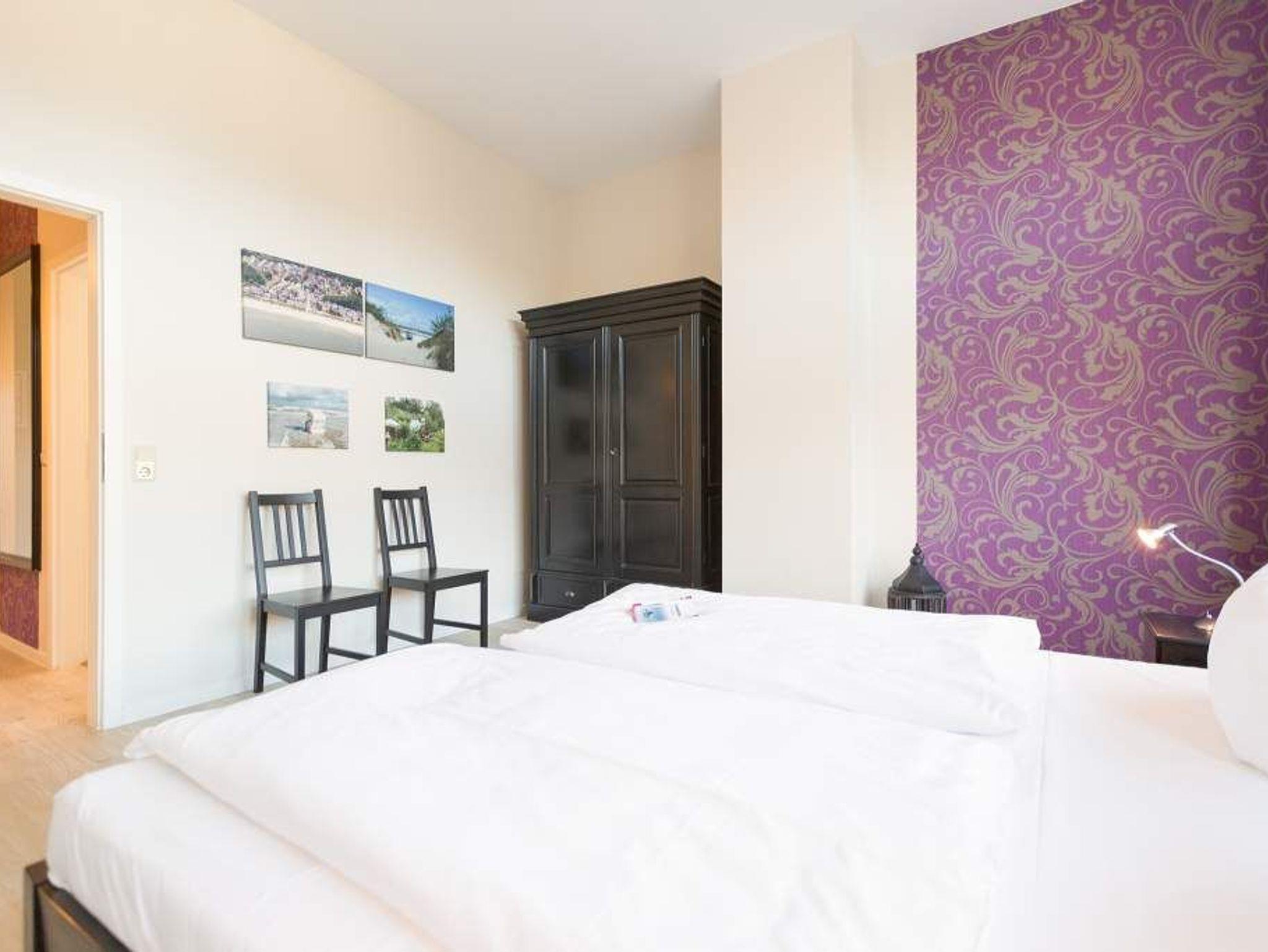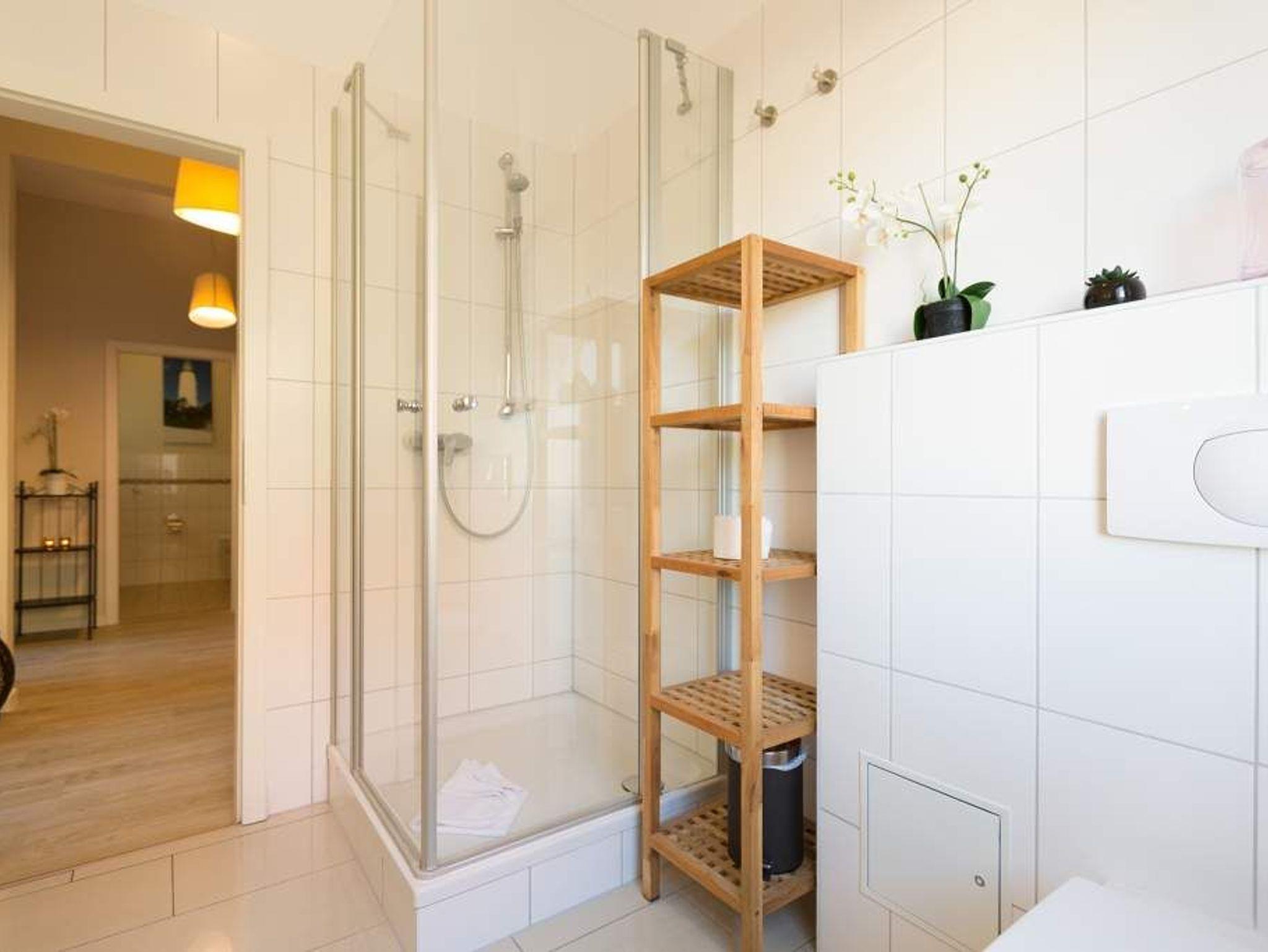 Stylische Farben und ein moderner Look versprühen sofort das passende Urlaubsfeeling. Die schöne 3-Raum-Ferienwohnung (75 qm) befindet sich im 1. Obergeschoss des Hauses und bietet Platz für 4 Erwachsene und ein Kleinkind bis 3 Jahre. An den Wohnbereich mit bequemer Sitzgruppe und schönen Kaminofen schließt sich die offene Küche mit Essplatz an. Auf dem Südbalkon lässt es sich besonders gut relaxen und man genießt den Blick ins Grüne. Die beiden Schlafzimmer mit Doppelbetten und TV, ein Bad mit Dusche und WC und ein Gäste-WC ergänzen die Wohnung. Für die Wohnung steht ein PKW-Stellplatz zur Verfügung. Ein WLAN-Netz im Haus kann kostenfrei genutzt werden. Auf Wunsch stellen wir für unsere kleinen Gäste ein Kinderreisebett (ohne zusätzliche Matratze [&] Bettzeug) und einen Kinderhochstuhl ( gegen einen Aufpreis) zur Verfügung. Für Ihren Komfort sind die Betten bei der Anreise bezogen und Handtücher liegen bereit (Erstausstattung). Für den Tag am Meer steht Ihnen als besonderes Bonbon von Mitte Mai bis Ende September (je nach Witterung) ein Strandkorb am Strand kostenlos zur Verfügung.