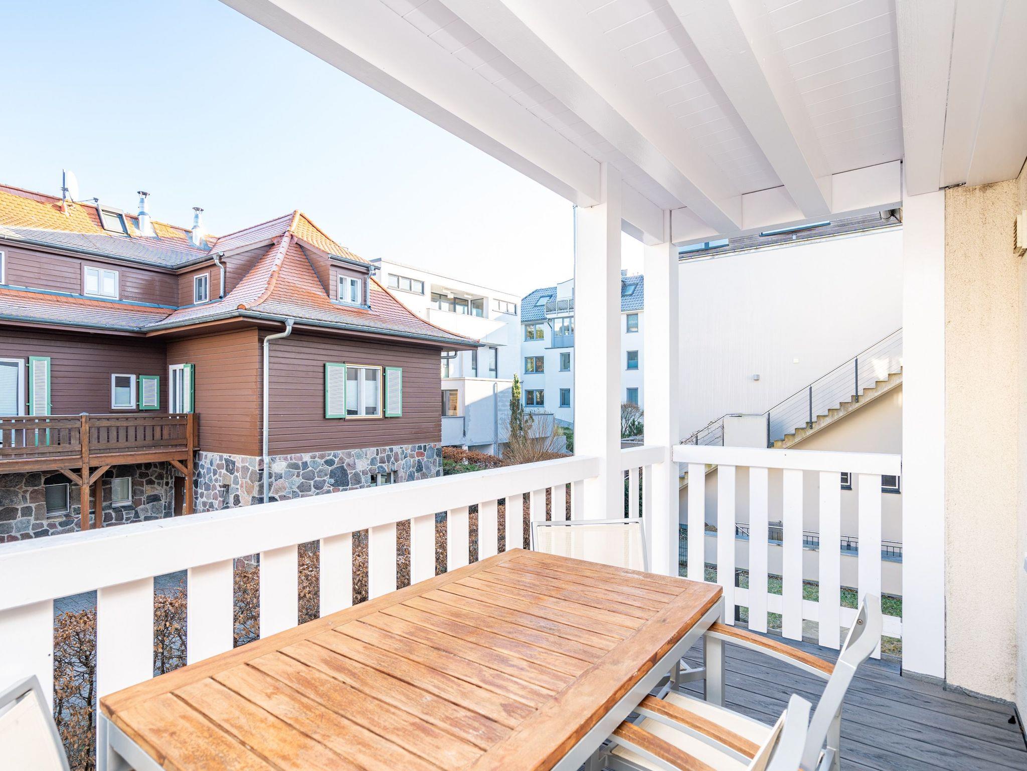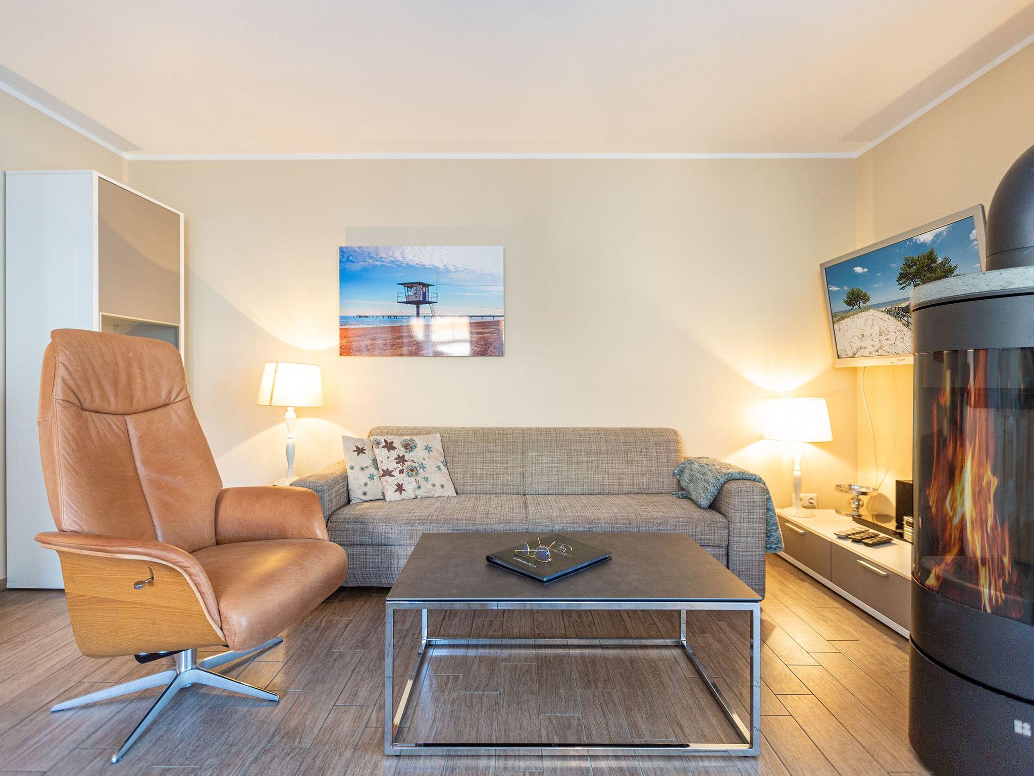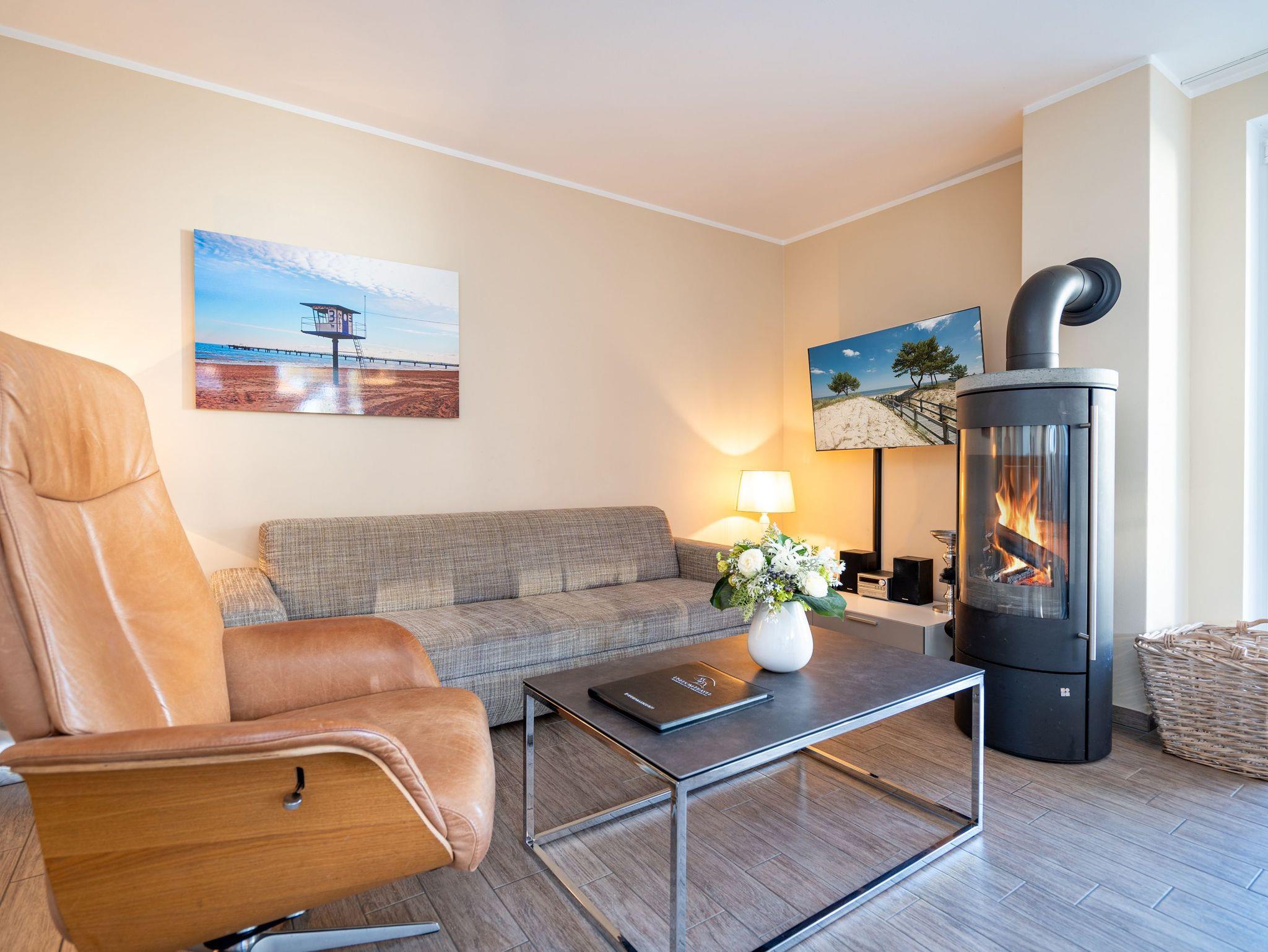 Idyllisch, von viel Grün umgeben und nur einen Steinwurf vom Strand und der Ostsee entfernt, wartet das 61 Quadratmeter große Appartement 06 im ersten Obergeschoss nur darauf, Ihnen den Urlaub mit seiner hellen und freundlichen Atmosphäre zu verschönern und dafür zu sorgen, dass Sie inmitten einer Wohlfühlumgebung neue Energie tanken können. Die Wohnung bietet mit ihren zwei Schlafzimmern Platz für 4 Personen und ein Kleinkind bis 3 Jahre (im Kinderreisebett; eine zusätzliche Matratze [&] Bettzeug müssen mitgebracht werden). Gleich auf drei Balkonen können Sie die frische Ostseeluft spüren und einatmen, sich gemütlich in die Sonne setzen und dem Meeresrauschen lauschen. Das große Wohn-Esszimmer eignet sich bestens zum Runterkommen, Entspannen, Kochen und Genießen. Von der bequemen Couch aus oder dem gemütlichen Sessel haben Sie Blick auf den echten Kaminofen und einen Flat-TV. Die zum Wohnzimmer hin offene Küchenzeile ist mit hochwertigen Geräten und feinem Porzellan ausgestattet. Der Esstisch mit den bequemen Stühlen lädt zum Zusammenkommen und Verweilen ein. Auf Wunsch kann ein Kinderhochstuhl (gegen Aufpreis) bereitgestellt werden. Beide Schlafzimmer sind hell und gemütlich mit jeweils einem großen Doppelbett eingerichtet. Warme Beige- und Brauntöne bringen Sie in eine entspannte Stimmung. Die Schränke bieten viel Ablagefläche. Das geräumige Bad verfügt über eine Dusche, WC und eine Waschmaschine. Außerdem gibt es in der Wohnung noch ein zusätzliches Gäste-WC. Ein Tag am Meer: Lockt das Wetter ans Wasser steht als besonderes Bonbon am Strand kostenfrei ein Strandkorb für Sie zur Verfügung. Genießen Sie Ihre Tage in diesem schönen Dünendomizil von der ersten Minute an. Handtücher liegen für Sie bereit und die Betten sind bei Anreise bezogen. Der WLAN-Anschluss ist kostenfrei nutzbar.