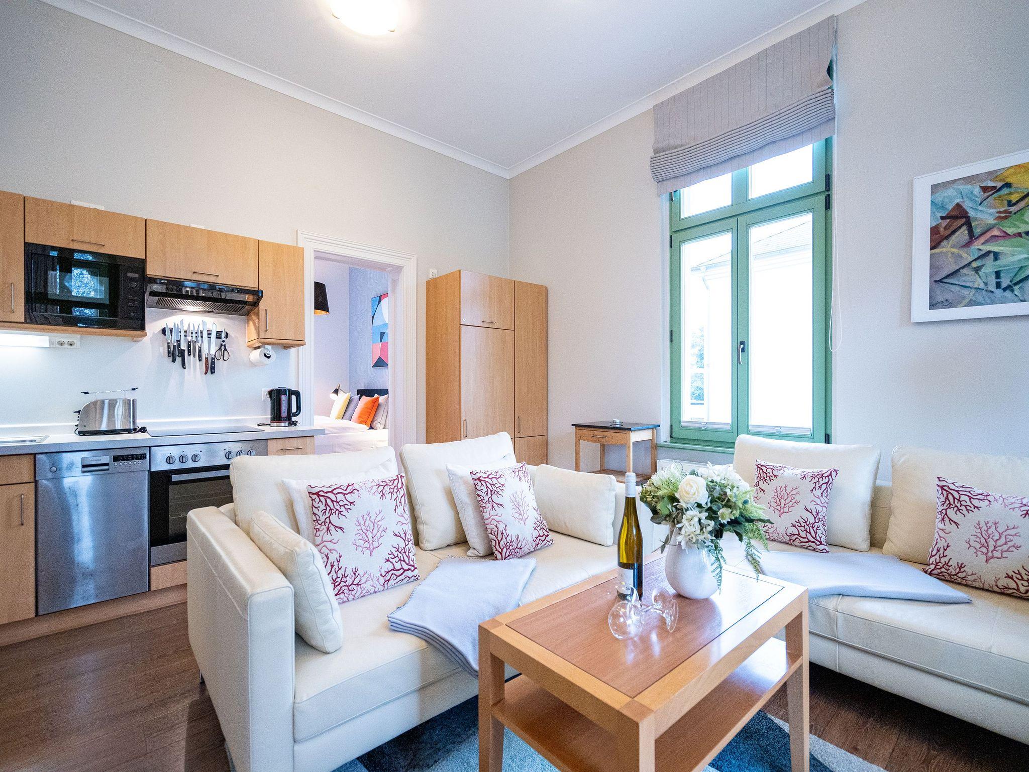 Vier-Sterne-Komfort eingebettet in historischen Gemäuern - so präsentiert sich Ihnen die Villa am Ostseestrand. Wenn Sie Strandnähe suchen sind Sie hier richtig. Ankommen, Handtuch über die Schulter und ab ans Meer, das könnte Ihr erster Tag sein. Die Villa bietet Ihnen vom gemütlichen 1-Raum-Appartement bis hin zur großzügigen exklusiven Ferienwohnung mit 3 Schlafzimmern ein ideales Domizil für den Urlaub zu zweit oder in Familie. Die Appartements verfügen über einen Stellplatz und für Ihren Komfort finden Sie auch eine Waschmaschine und einen Trockner im Haus, der gegen eine Gebühr genutzt werden kann. Einen überdachten Fahrradständer finden Sie hinter dem Haus. Sie werden begeistert sein von der Vielfalt der exklusiven Villen in dieser Lage. Sie finden hier Restaurants in unmittelbarer Nähe und die Ostseetherme in ca. 400 Metern Entfernung, die zum ausgiebigen Entspannen einlädt.