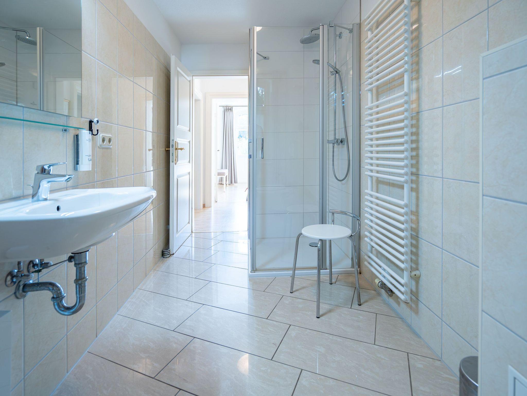 Individuell eingerichtete Wohlfühl-Ferienwohnung für 3 Personen. Hier erwartet Sie ein Wohnbereich mit einer komplett ausgestatteten Küchenzeile und Essbereich, ein Schlafzimmer mit Doppelbett, ein Schlafzimmer mit einem Einzelbett und ein Bad mit Dusche/ WC. Auch im Außenbereich finden Sie viel Platz zum Erholen, denn zur Wohnung gehört eine Terrasse mit Gartenmöbeln. Für Ihren Komfort steht die Erstausstattung Wäsche (Bettwäsche [&] Handtücher) für Sie bereit.