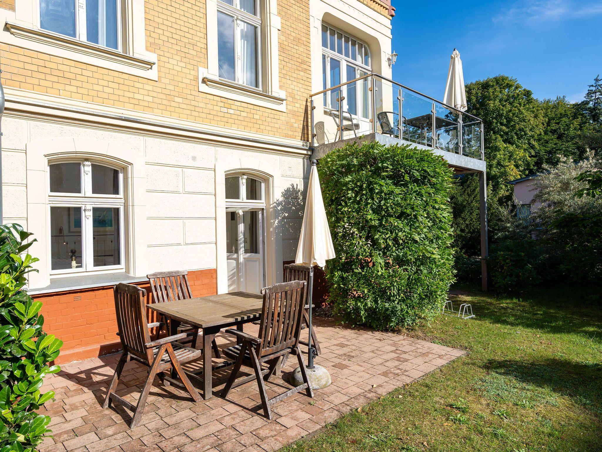 Haus auf dem Hügel - Die Klassische! Diese traumhafte alte Villa direkt hinter den Dünen im Seebad Heringsdorf gelegen, wurde im Jahr 2006 komplett saniert und erstrahlt wieder im neuen alten Glanz! Umgeben von alten Villen verbringen Sie hier Ihren Urlaub auf der Insel Usedom in direkter Strandnähe. Für Ihren Komfort steht ein Pkw-Stellplatz an der Villa zur Verfügung. Auf dem Grundstück befindet sich ein Saunahaus, dass man gegen Gebühr nutzen kann sowie ein Waschraum mit Münzwaschmaschine und Trockner. Ebenfalls verfügt das Haus über ein WLAN, welches kostenfrei nutzbar ist.