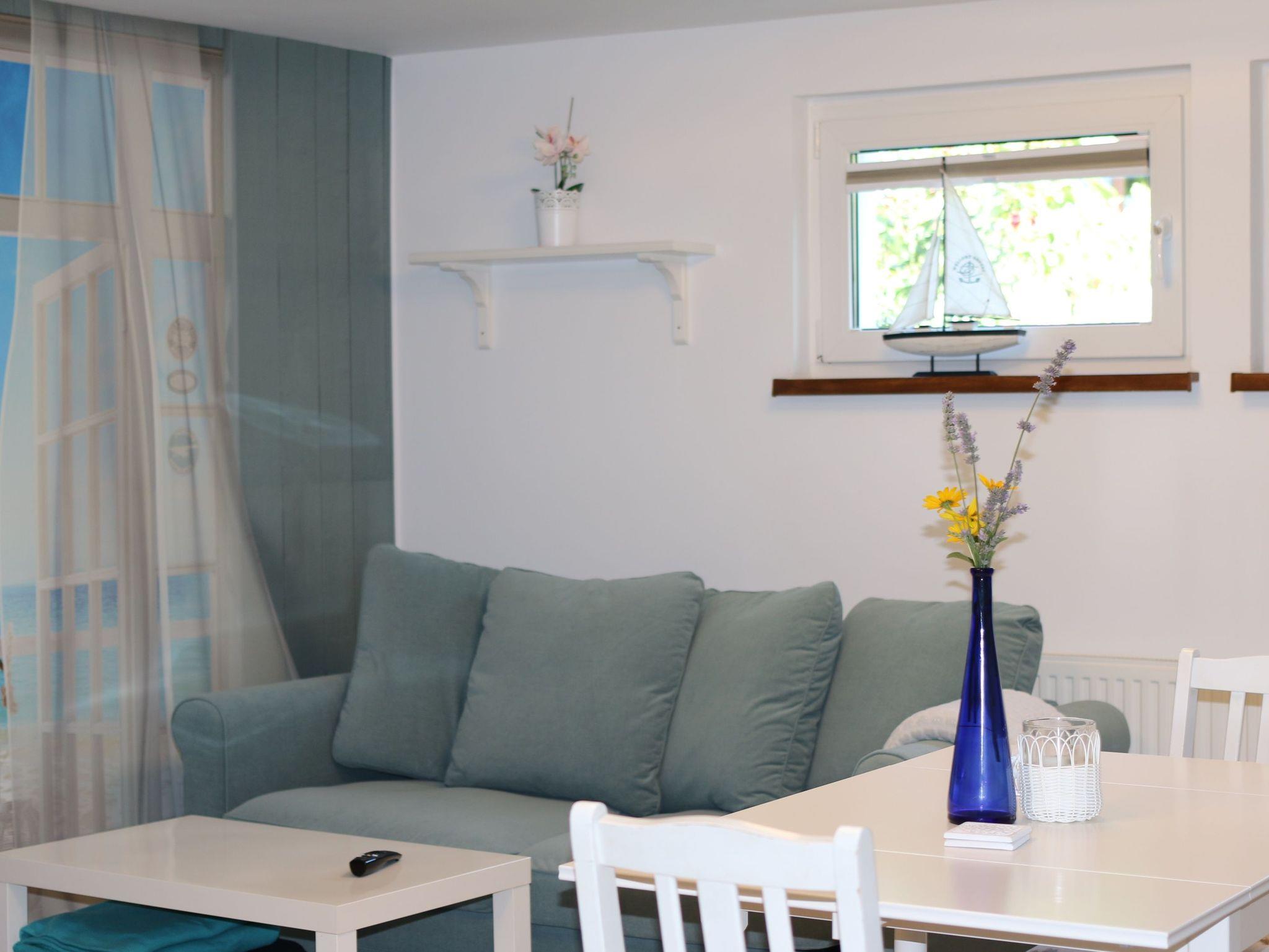 Modern und liebevoll - auf knapp 50 qm bietet diese Ferienwohnung im Souterrain des Einfamilienhauses ein perfektes Urlaubsziel für bis zu 2 Personen. Durch einen separaten Eingang gelangen Sie in die Wohnung. Im Wohnbereich befindet sich neben einer bequemen Couch auch ein Sessel, Flachbild-TV sowie ein Essplatz mit 2 Stühlen. Die offene Küchenzeile mit Ceranherd, Backofen, Geschirrspüler, Mikrowelle, Wasserkocher, Kaffeemaschine und Toaster bietet ideale Voraussetzungen für das gemütliche Frühstück oder das kleine Abendessen zu zweit. Das separate Schlafzimmer hat ein Doppelbett und einen Kleiderschrank mit reichlich Stauraum. Das Badezimmer mit Fenster ist funktional und modern gestaltet: mit ebenerdiger Dusche, WC und Stauraum. Eine Terrasse (Zugang erfolgt außerhalb der Wohnung) lädt schon morgens dazu ein Ihren Kaffee zu genießen oder den Abend bei einem Glas Wein ausklingen zu lassen.