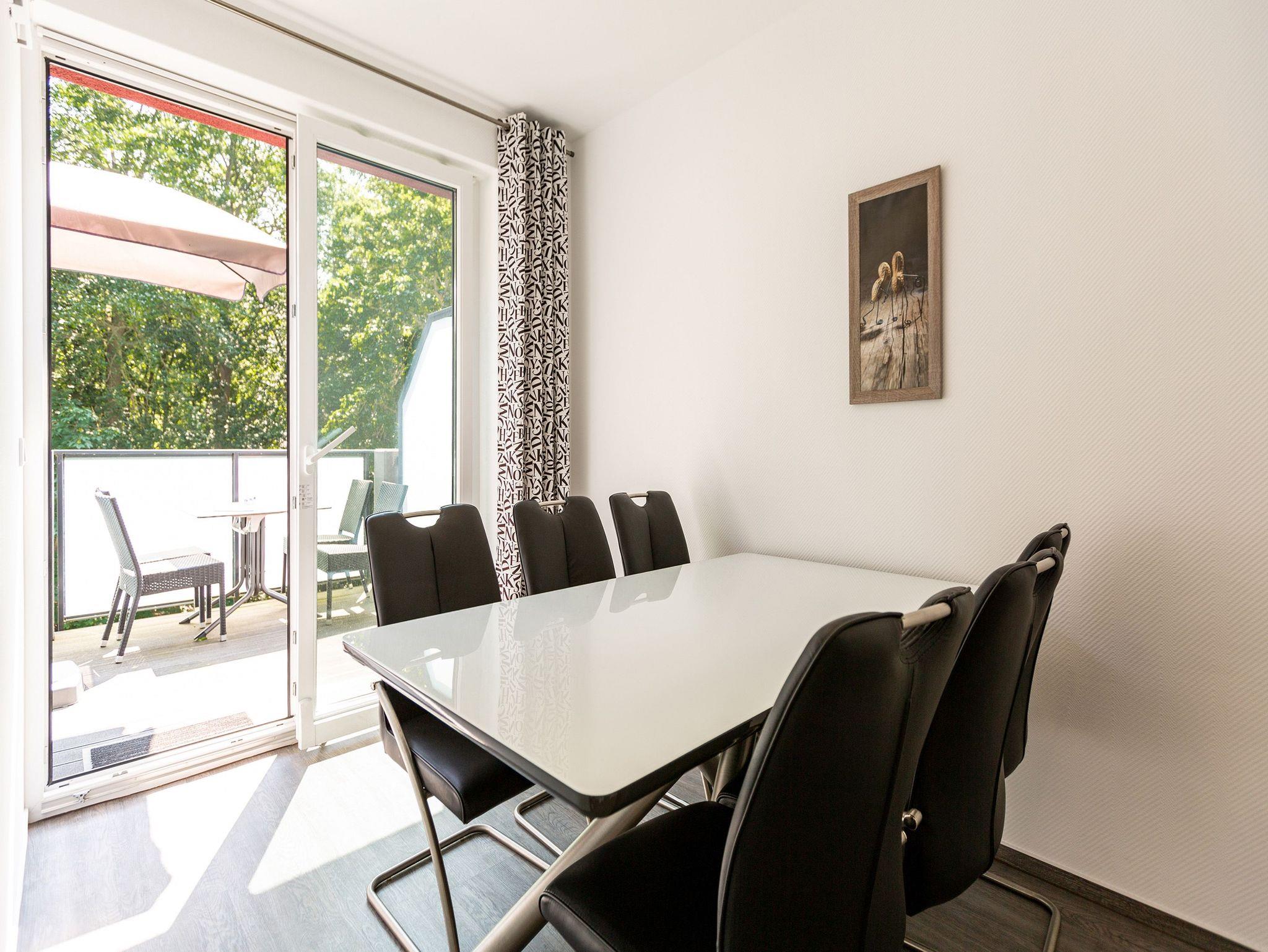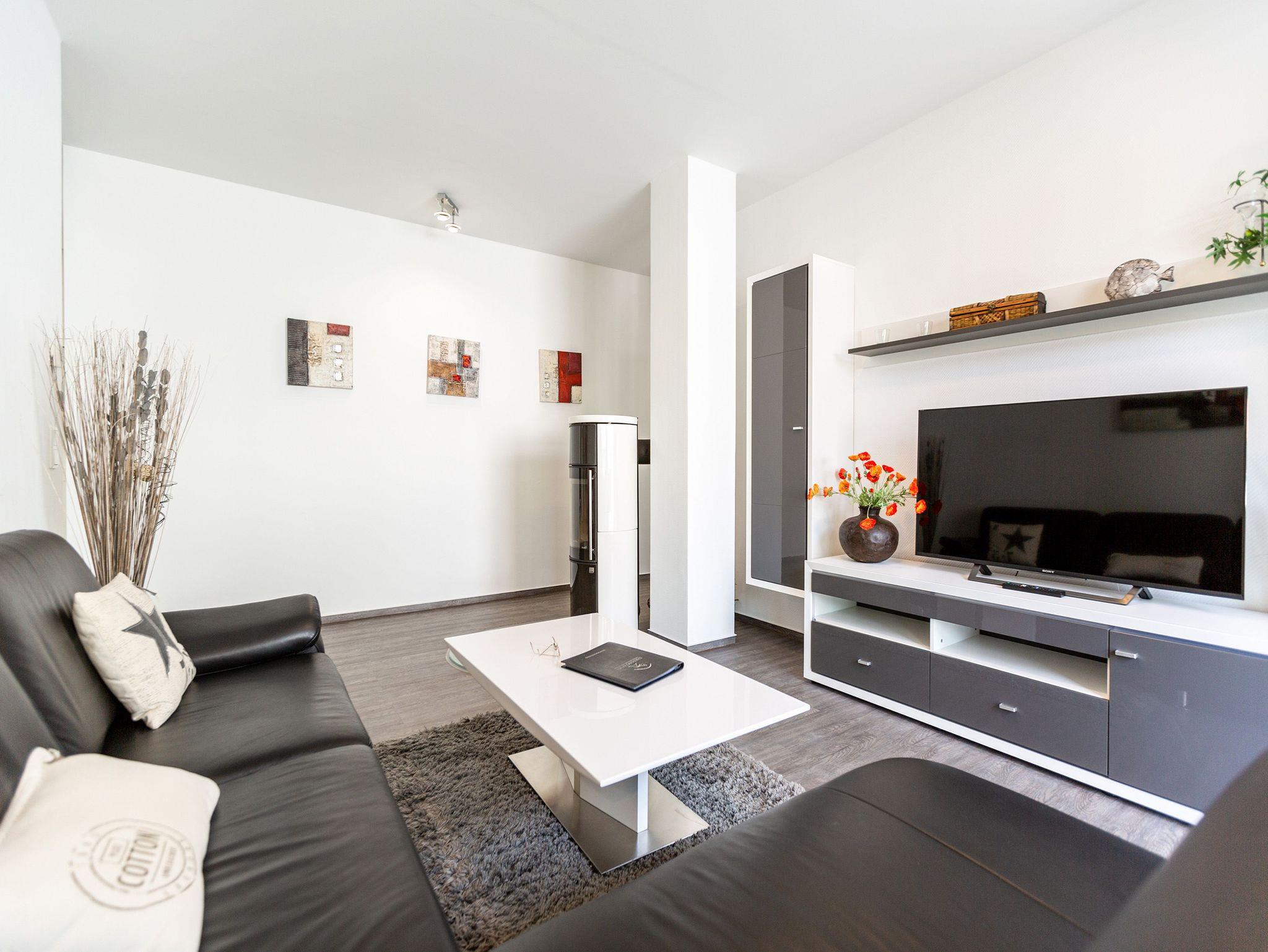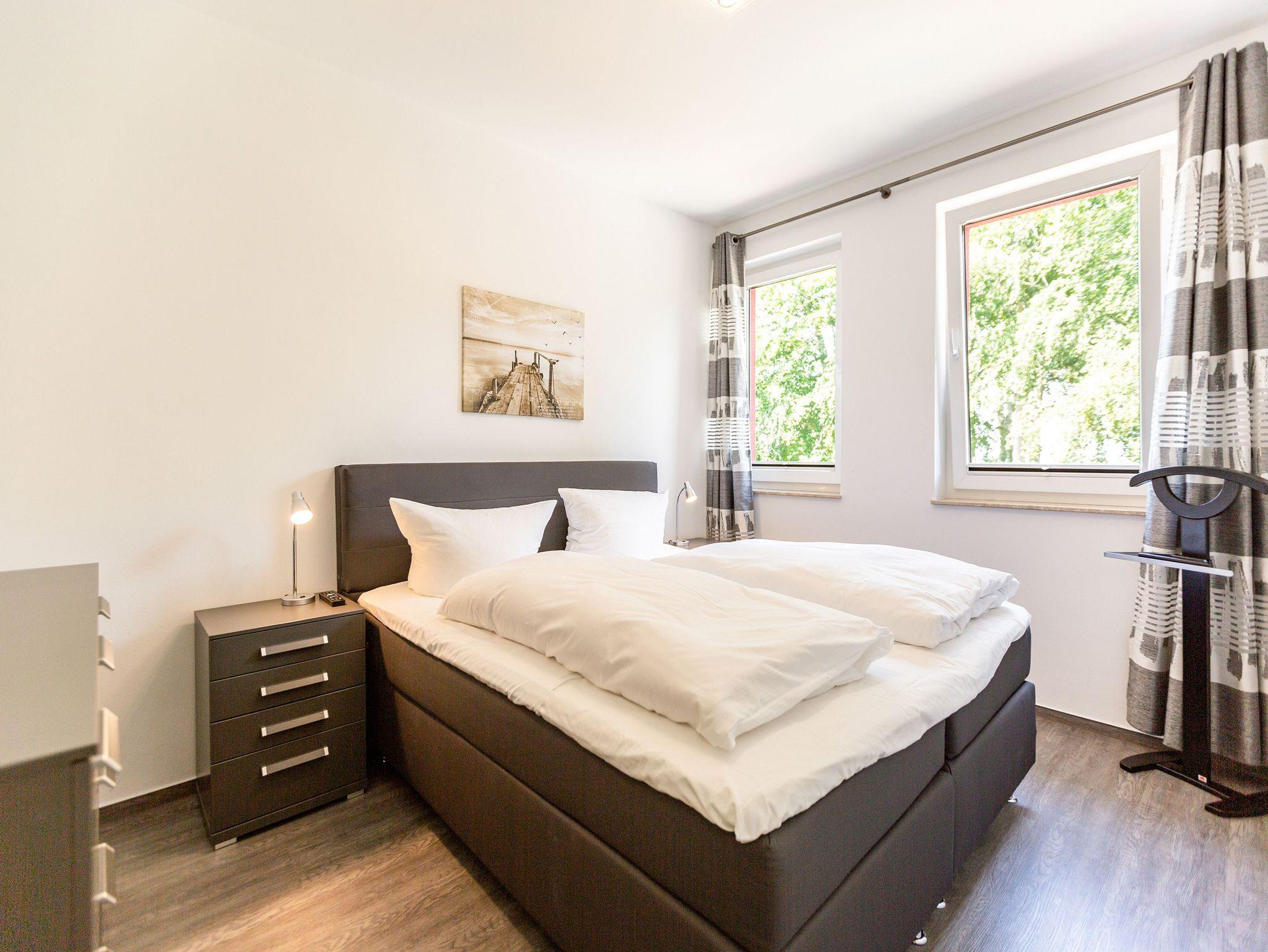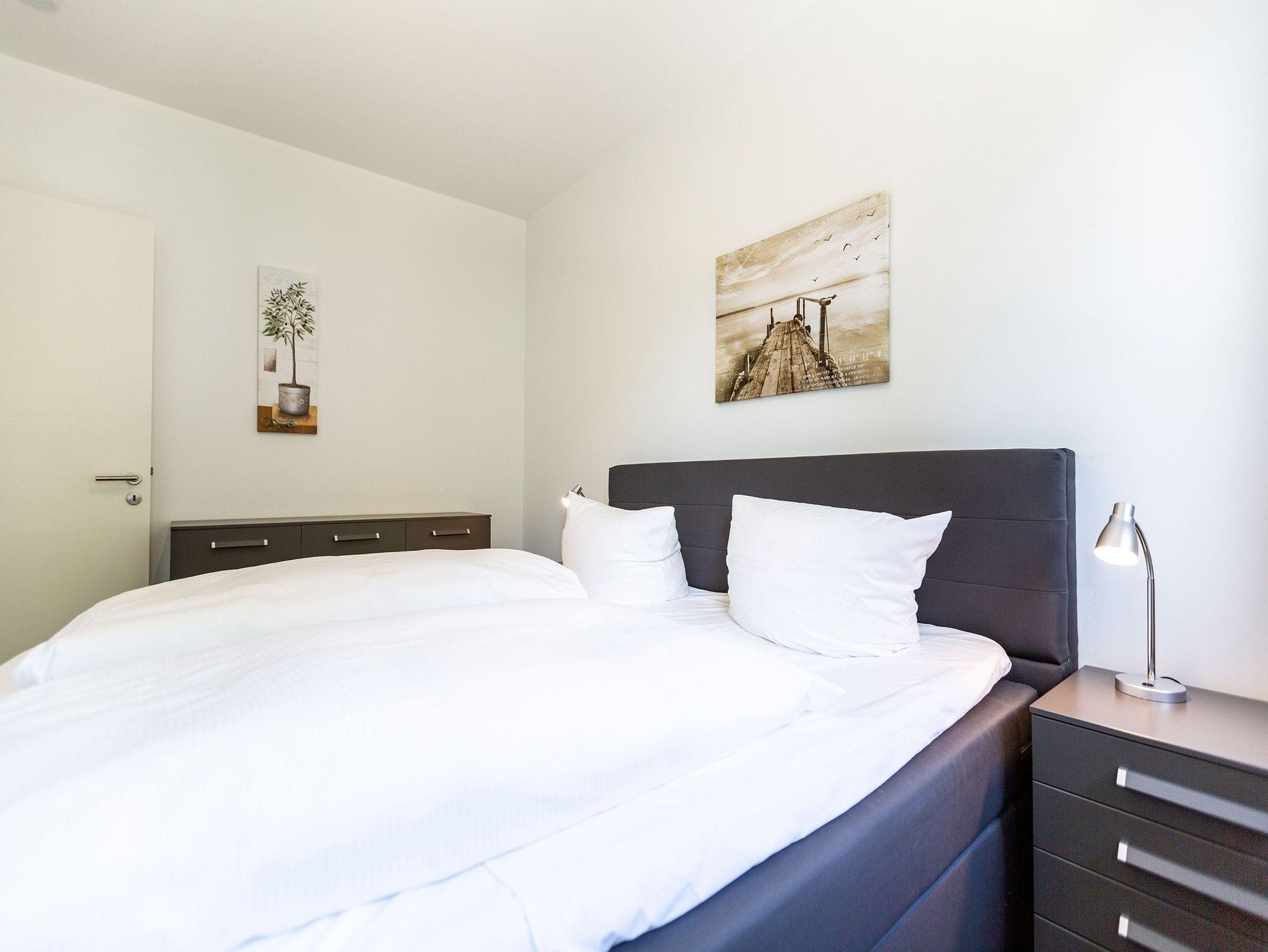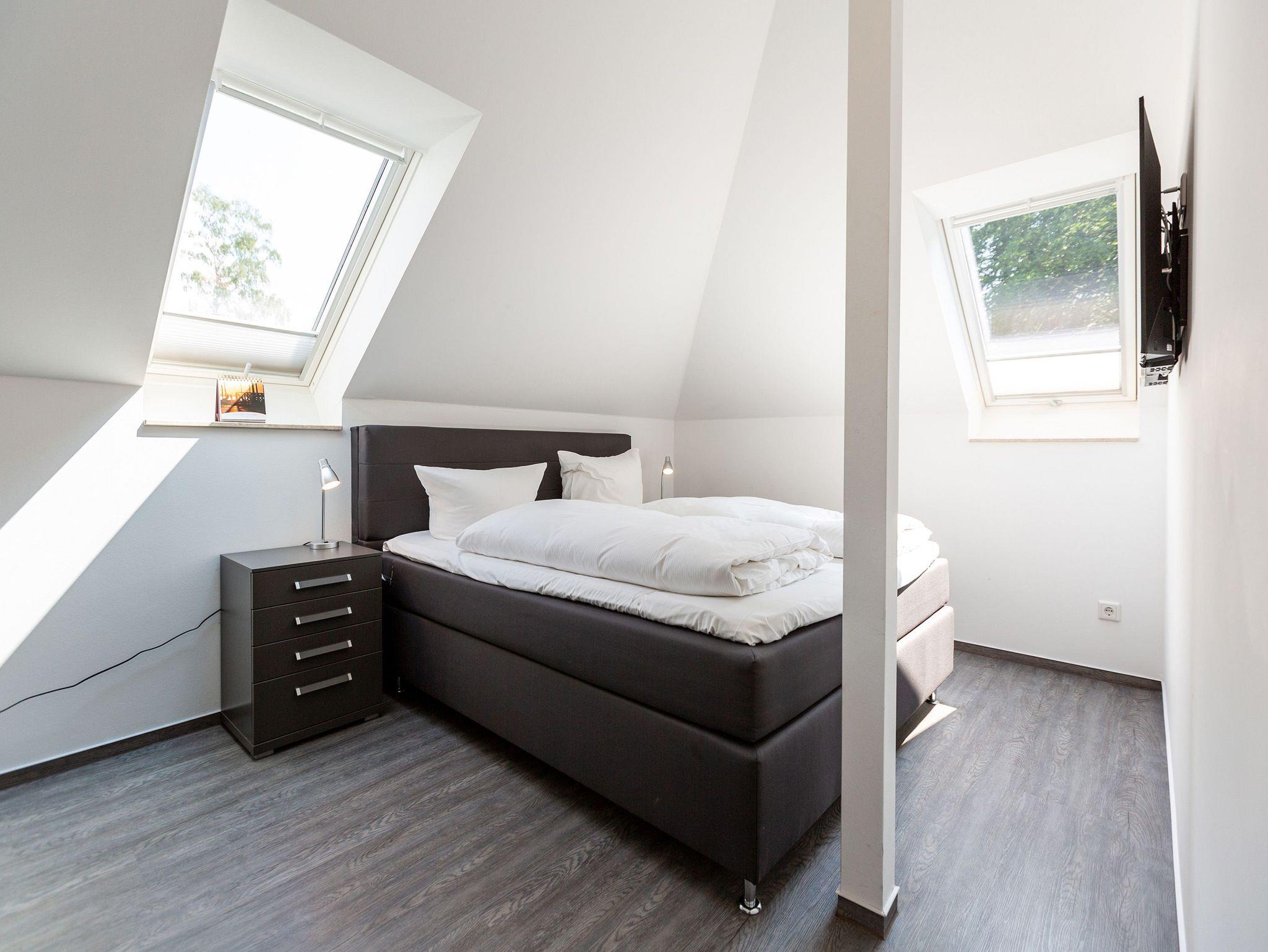 Diese 3-Raum-Dachgeschosswohnung bietet auf 82 Quadratmetern viel Raum für entspannte Urlaubstage. Vier Erwachsene und ein Kleinkind finden hier komfortable Bedingungen, dazu eine klare, moderne Gestaltung. Der Wohnbereich ist großzügig geschnitten, ausgestattet mit einer bequemen Sitzgruppe, Flat-TV und einem Kamin, der an kühleren Tagen schnell für Wärme sorgt. Von hier aus gelangen Sie auf den Balkon zur Südostseite, ideal für das Frühstück in der Morgensonne. Die separate Küche ist vollständig ausgestattet und bietet am Essplatz genügend Raum für gemeinsame Mahlzeiten. Auch von hier führt eine Tür auf den zweiten Balkon, der zur Südseite ausgerichtet ist und am Nachmittag viel Licht bietet. Beide Schlafzimmer sind mit hochwertigen Boxspringdoppelbetten in Übergröße (1,85m x 2,20m) sowie einem eigenen Flat-TV eingerichtet. Das Bad überzeugt mit Badewanne, Dusche, WC und einer kostenfreien Infrarotsauna. Ein separates Gäste-WC ergänzt den Komfort. Bezogene Betten und Handtücher stehen als Erstausstattung bereit. WLAN ist kostenfrei verfügbar. Ein PKW-Stellplatz gehört zur Wohnung, ebenso ein eigener Briefkasten. Für kleine Gäste können ein Kinderreisebett und ein Hochstuhl gegen Aufpreis bereitgestellt werden.