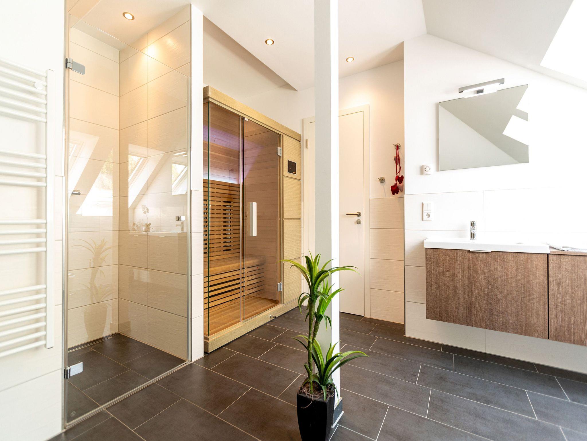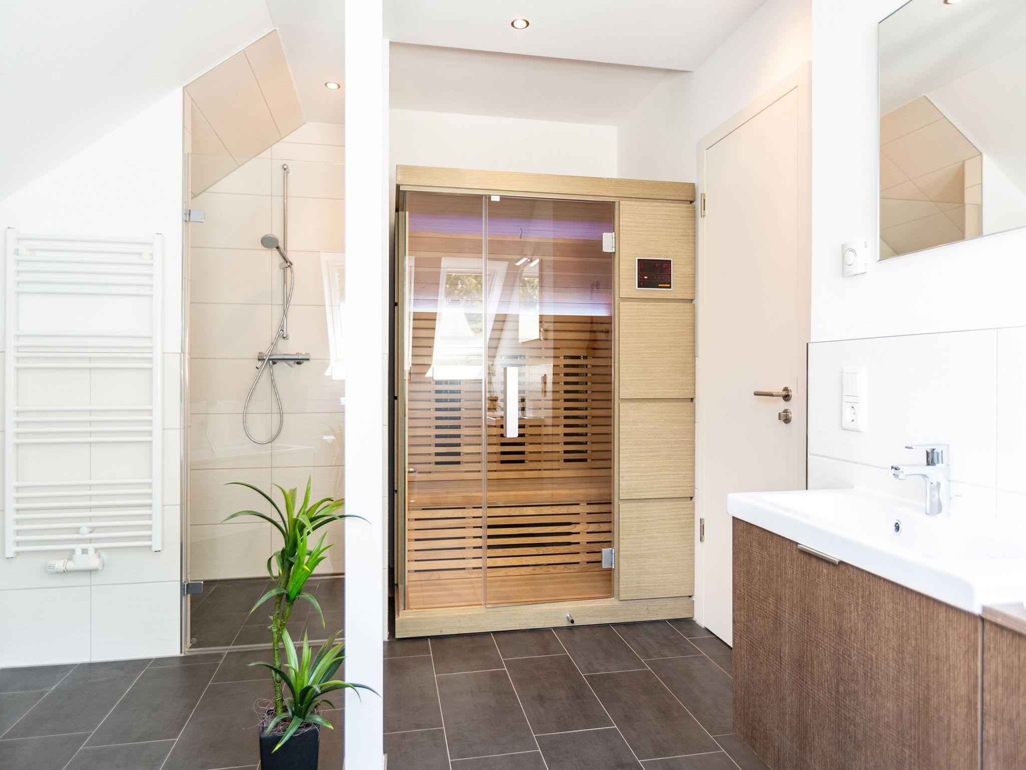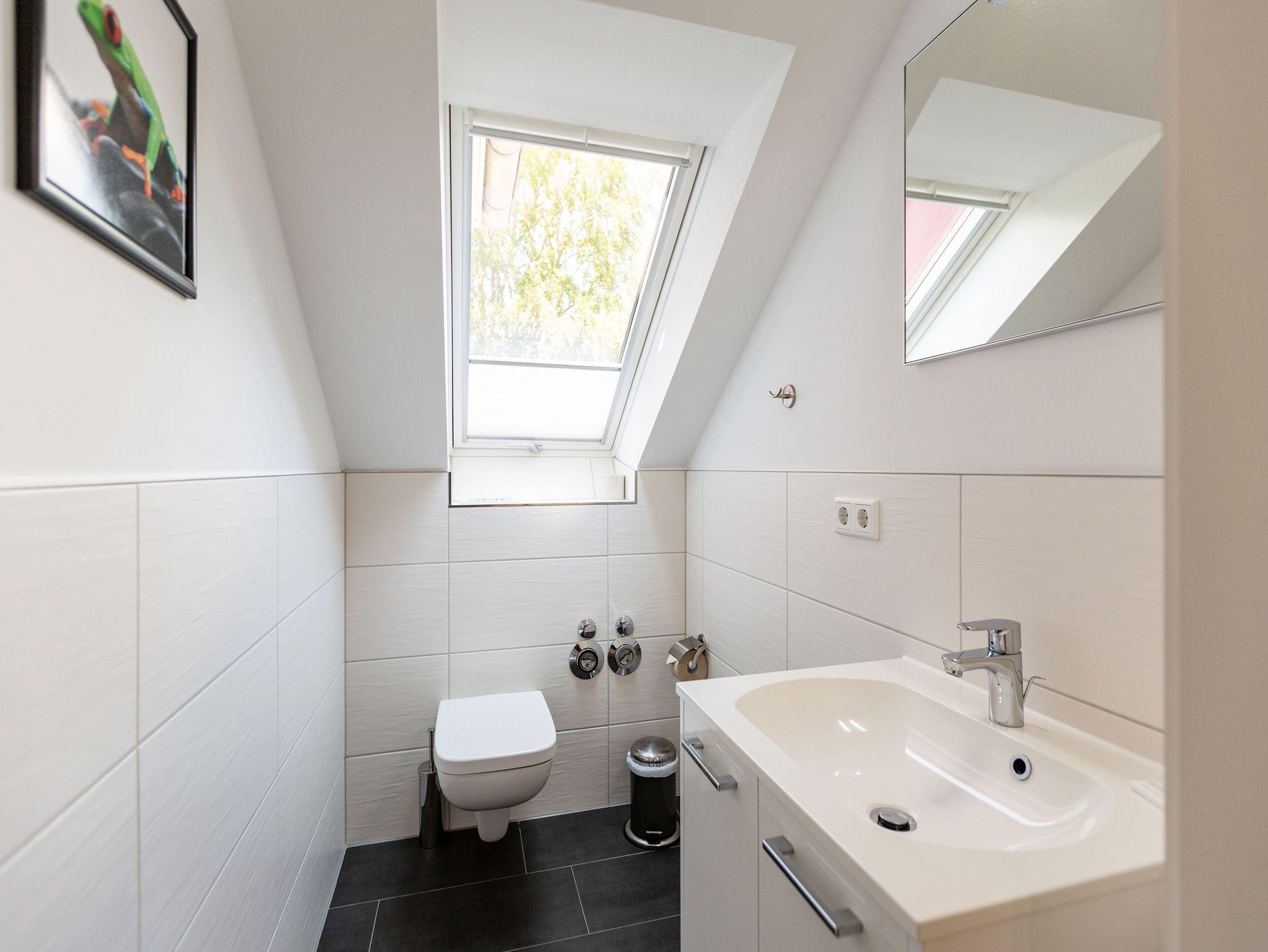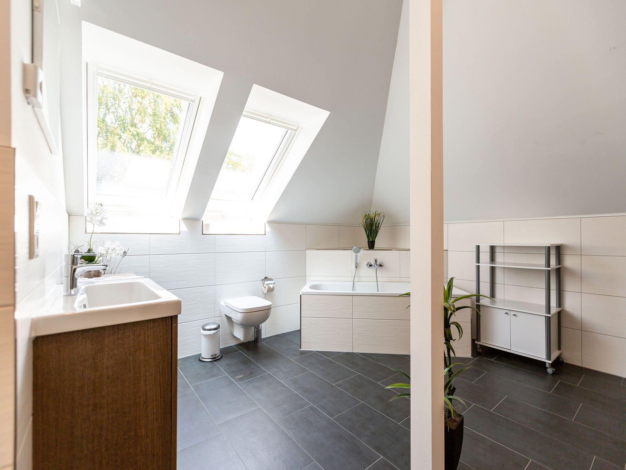 Diese 3-Raum-Dachgeschosswohnung bietet auf 82 Quadratmetern viel Raum für entspannte Urlaubstage. Vier Erwachsene und ein Kleinkind finden hier komfortable Bedingungen, dazu eine klare, moderne Gestaltung. Der Wohnbereich ist großzügig geschnitten, ausgestattet mit einer bequemen Sitzgruppe, Flat-TV und einem Kamin, der an kühleren Tagen schnell für Wärme sorgt. Von hier aus gelangen Sie auf den Balkon zur Südostseite, ideal für das Frühstück in der Morgensonne. Die separate Küche ist vollständig ausgestattet und bietet am Essplatz genügend Raum für gemeinsame Mahlzeiten. Auch von hier führt eine Tür auf den zweiten Balkon, der zur Südseite ausgerichtet ist und am Nachmittag viel Licht bietet. Beide Schlafzimmer sind mit hochwertigen Boxspringdoppelbetten in Übergröße (1,85m x 2,20m) sowie einem eigenen Flat-TV eingerichtet. Das Bad überzeugt mit Badewanne, Dusche, WC und einer kostenfreien Infrarotsauna. Ein separates Gäste-WC ergänzt den Komfort. Bezogene Betten und Handtücher stehen als Erstausstattung bereit. WLAN ist kostenfrei verfügbar. Ein PKW-Stellplatz gehört zur Wohnung, ebenso ein eigener Briefkasten. Für kleine Gäste können ein Kinderreisebett und ein Hochstuhl gegen Aufpreis bereitgestellt werden.