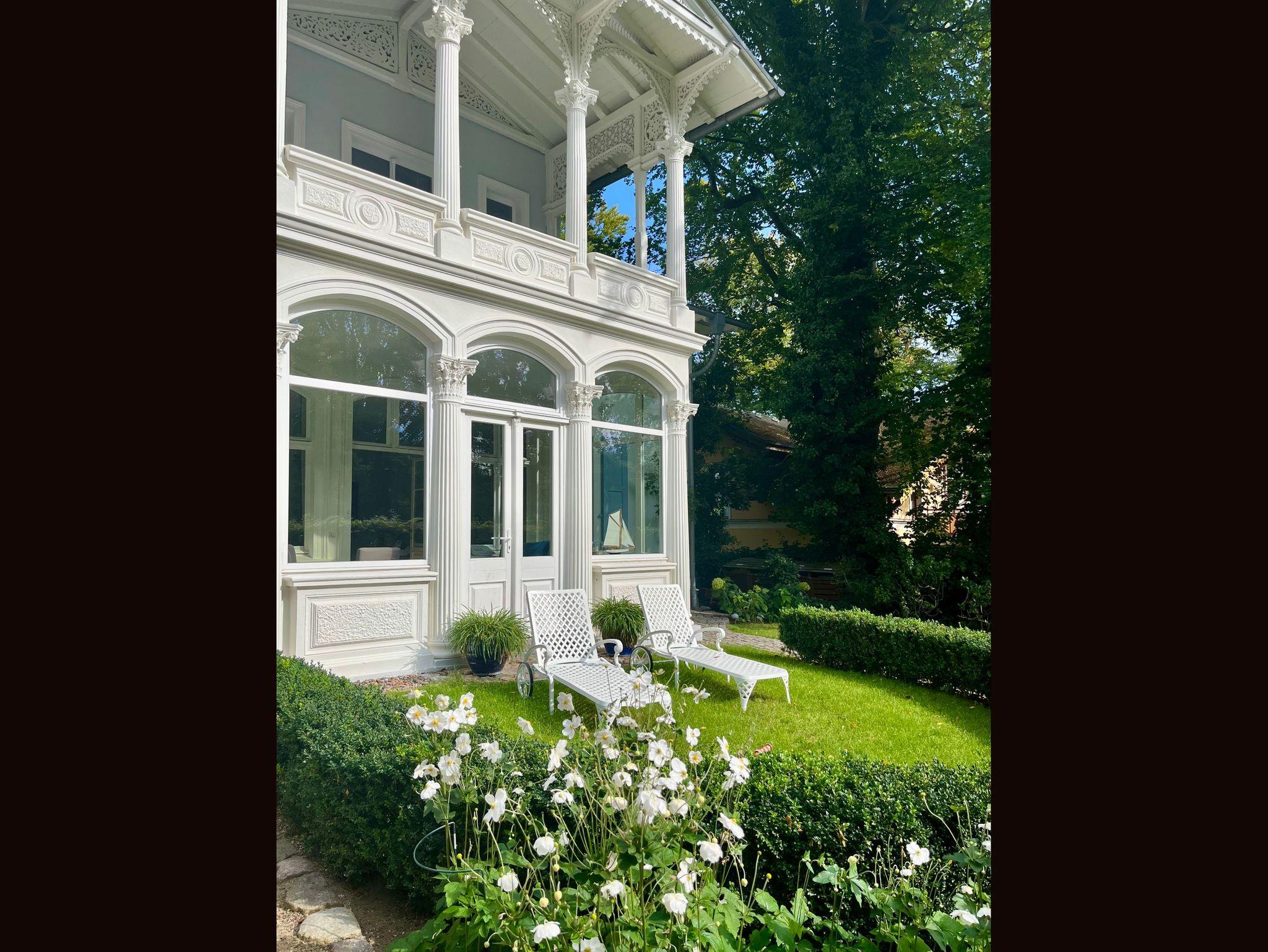 Die bezaubernde 5-Sterne-Villa (erbaut im Jahre 1845) ist eine der ältesten erhaltenen Villen Heringsdorfs. Erhaben liegt sie - mit phantastischem Blick - auf der Anhöhe des Kulms, auf einem großzügigen, gepflegten Grundstück mit altem Baumbestand. Meerseitig wurde das Haus erweitert und öffnet sich zur Ostsee ? mit Meerblick aus allen Wohnungen. Viele Stammgäste kehren immer wieder an diesen erholsamen Ort zurück und schätzen das inhabergeführte Haus.