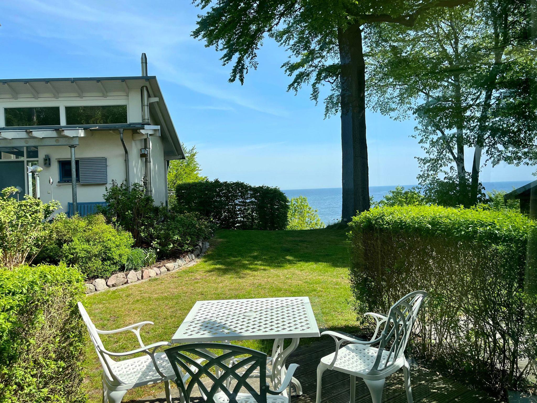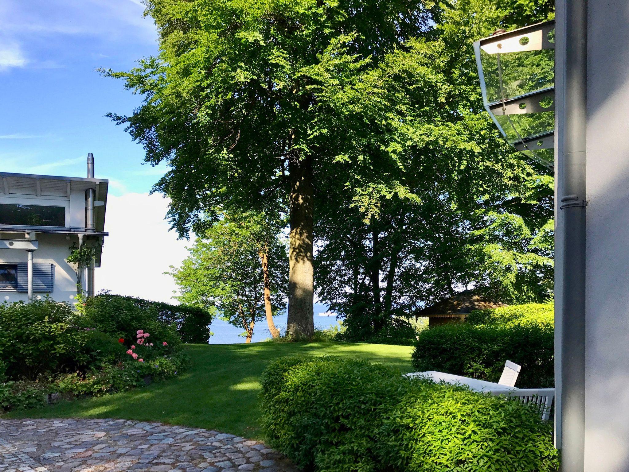 Großzügige Ferienwohnung mit herrlichem Meerblick vom Schlafzimmer und der dazugehörigen Terrasse. Zur Wohnung gehört der historische Verandenvorbau auf der sonnigen Süd-/Westseite mit Blick in den gepflegten Vorgarten und in die Kronen der stattlichen Bäume. All unsere Wohnungen sind geschmackvoll und individuell eingerichtet. Ausgesuchte Möbelstücke und Bilder, Echtholz-Parkett - teils mit hochwertigen Teppichen belegt ? prägen den Stil des Hauses. Das Meerblick-Schlafzimmer ist mit einem manufakturgefertigten Edelstahlbett, Einbauschrank incl. Safe, Flachbild-TV und Verdunklung ausgestattet, die Terrassentür ist mit Insektenschutz versehen. Als zusätzliche Schlafgelegenheit befindet sich im Wohnbereich eine komfortable ausklappbare Ledercouch. Zur Ausstattung gehört ein Smart-TV mit Soundbar - zur einfachen Verbindung mit Ihrem Smartphone, iPad oder anderen bluetoothfähigen Geräten - sowie ein DVD-Player. Die komplett ausgestattete Küche (Kühlschrank mit Gefrierfach, Backofen, Cerankochfeld, Dunstabzug, Mikrowelle, Toaster, Wasserkocher, Filter-Kaffeemaschine u. Nespresso-Kapselmaschine, Rührgerät etc.) ist in sich abgeschlossen. Es gibt ein Tageslicht-Badezimmer mit Wanne und eine Dusche.