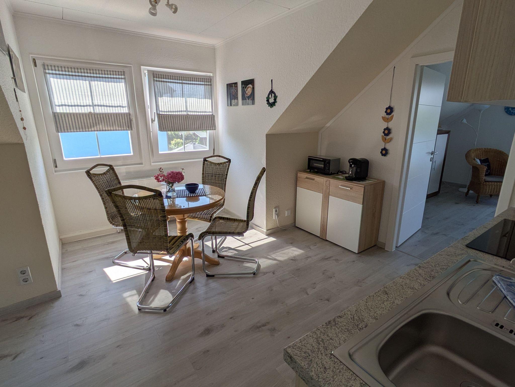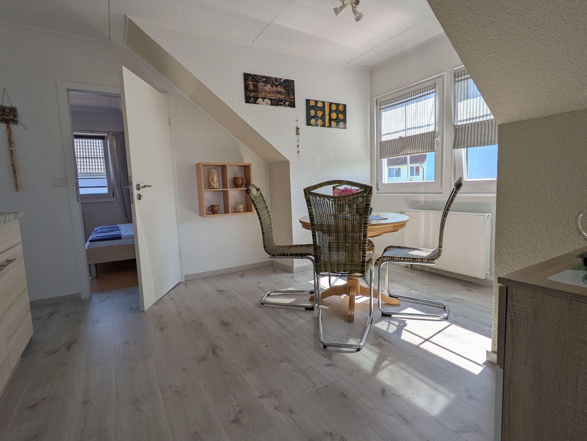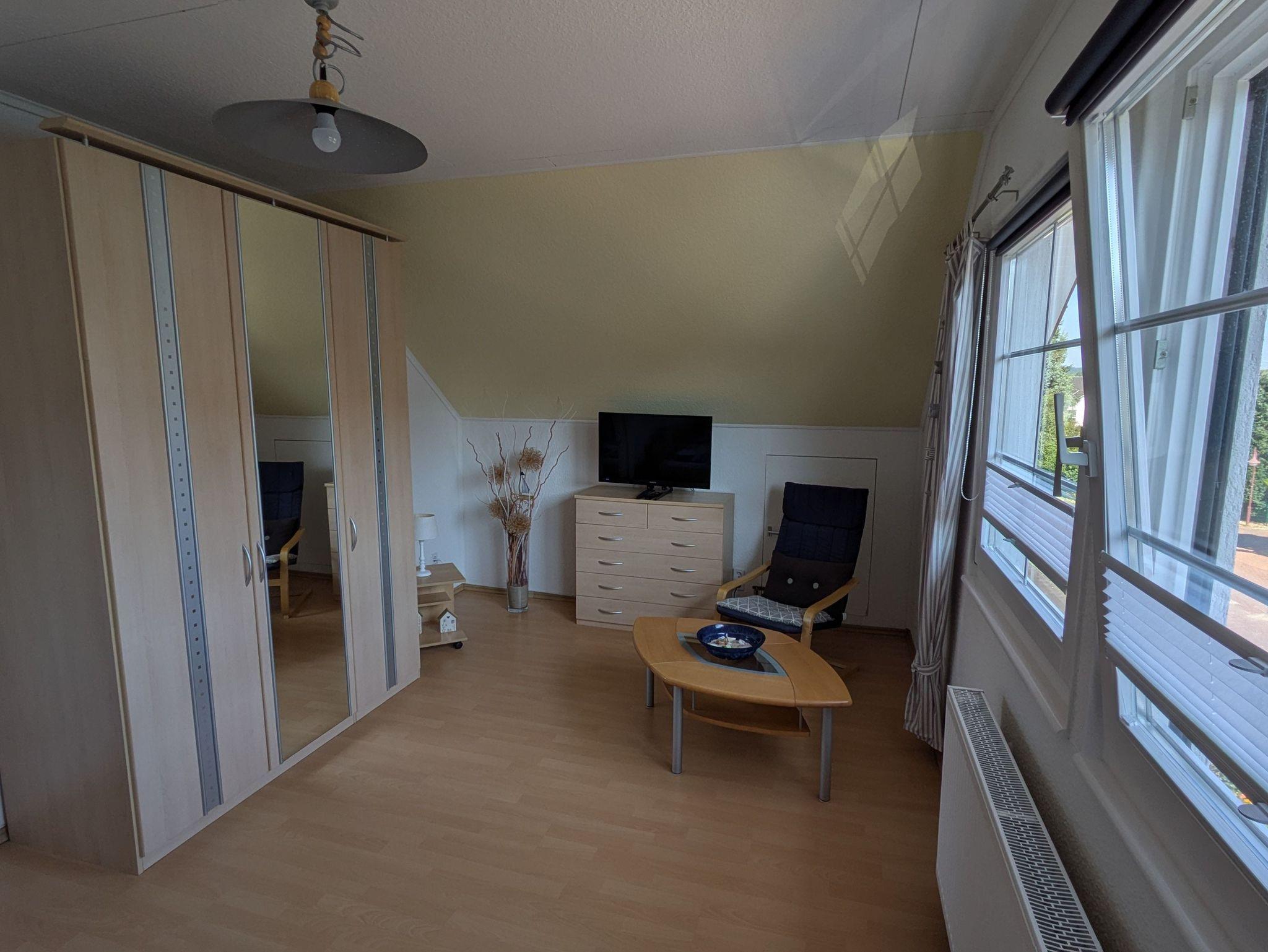 Die Ferienwohnung verfügt über ein Wohnzimmer, ein Schlafzimmer (Doppelbett 1,80 x 2,00m) und einer Küche mit Sitz- und Essgelegenheit. Das Badezimmer ist mit einer Badewanne ausgestattet.