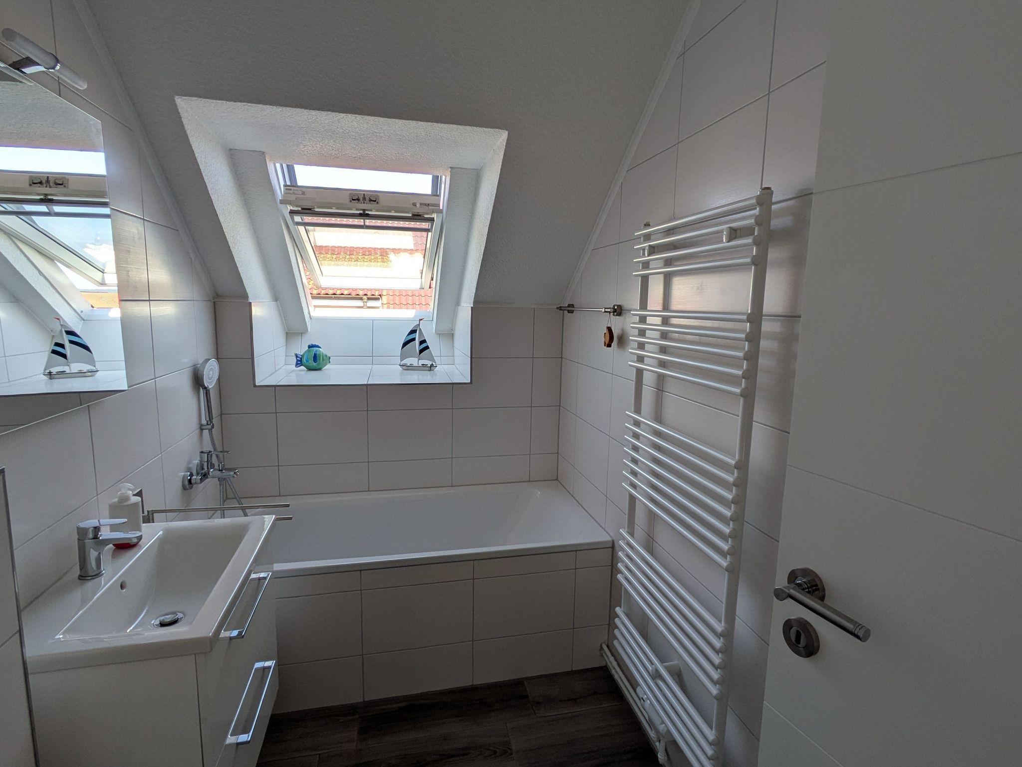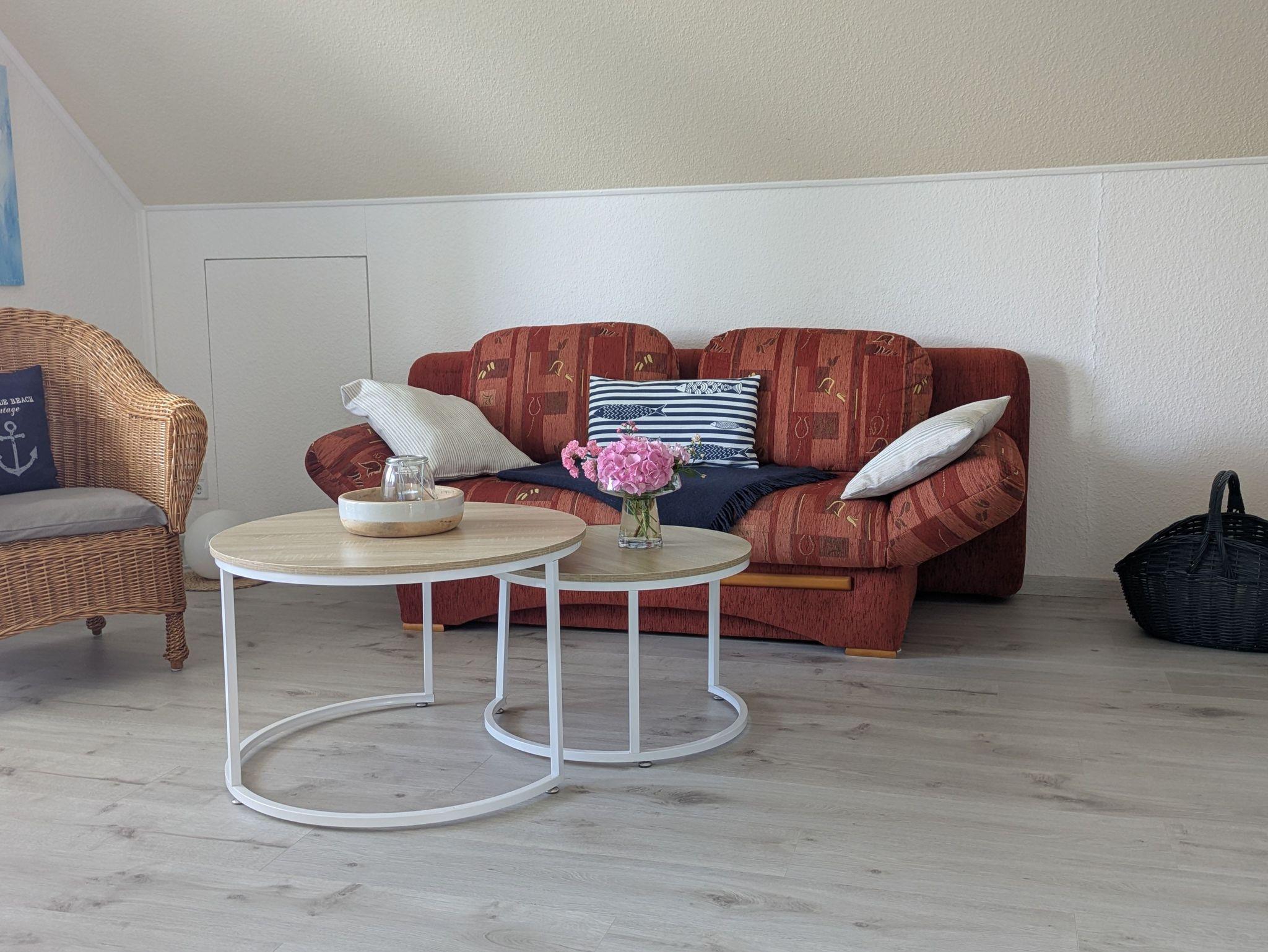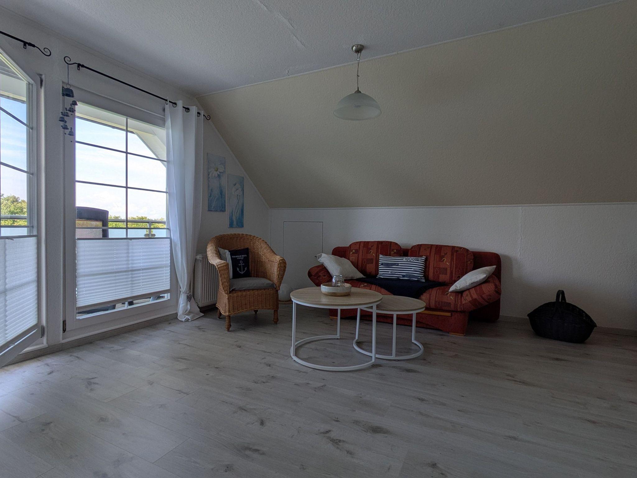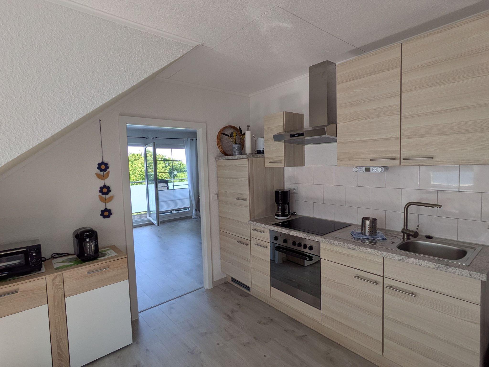 Die Ferienwohnung verfügt über ein Wohnzimmer, ein Schlafzimmer (Doppelbett 1,80 x 2,00m) und einer Küche mit Sitz- und Essgelegenheit. Das Badezimmer ist mit einer Badewanne ausgestattet.
