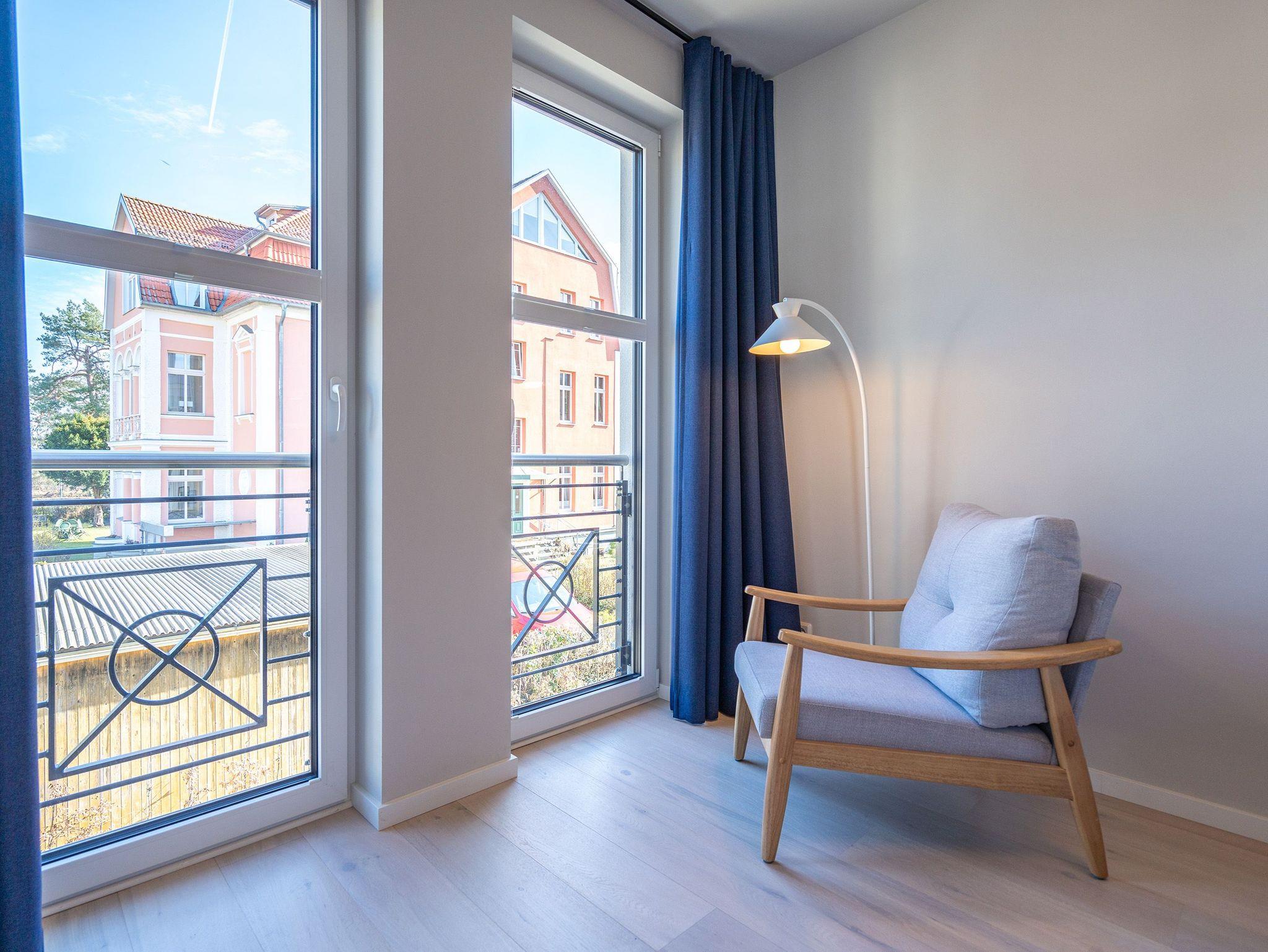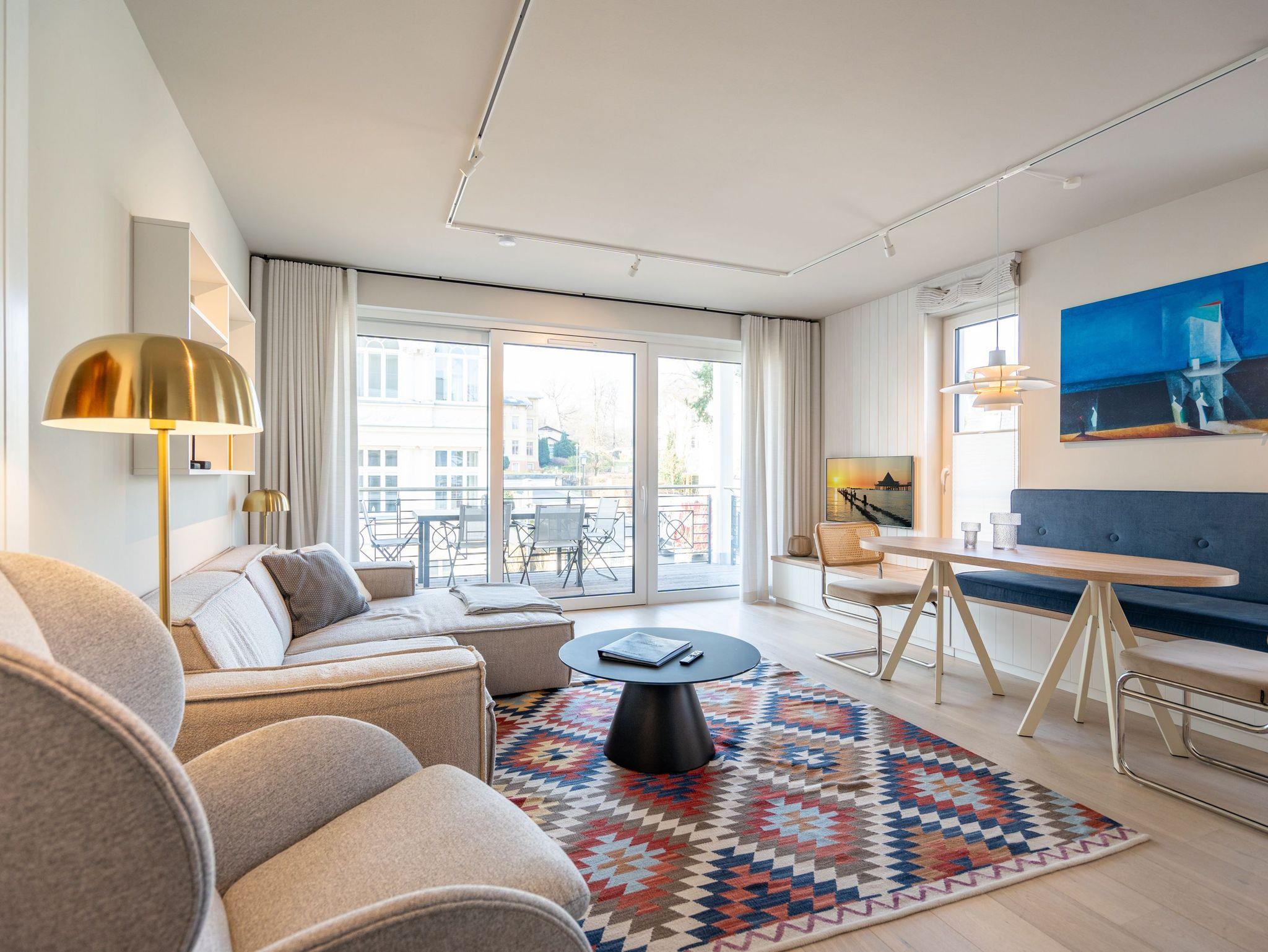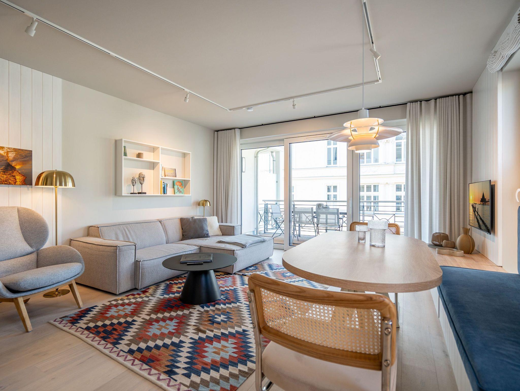 Nur 50m vom Strand entfernt und in einer kleinen Nebenstraße gelegen, empfängt Sie unser neues Domizil Quartier am Strand. Als zweites Objekt am Platz direkt an der schönen Strandpromenade gelegen, fügt sich die Anlage stilvoll zwischen Bäderstilvillen und Strandumgebung ein. Die insgesamt 9 Appartements und 2 Penthouses verfügen über helle und modern eingerichtete 2 bis 3 Zimmer. An kühleren Tagen sorgen Saunen und Kamin, die zu jedem Appartement gehören, für Entspannung in Ihrem Urlaub. Dem Klang der Wellen können Sie bequem von den Terrassen, Balkonen und Dachterrassen aus zuhören, denn jedes Appartement besitzt einen separaten Außenbereich. Der Blick auf die Ostsee ist Ihnen aus einigen Appartements möglich, aus den Penthouses garantiert. Offene Wohnbereiche und voll ausgestattete Küchen komplettieren das neue Objekt Quartier am Strand. Zudem gibt es eine hauseigene Tiefgarage (Einfahrthöhe 2,05 m) sowie einen Außenstellplatz (für Appartement 3), so dass ein eigener PKW-Stellplatz garantiert ist. Zu den weiteren Annehmlichkeiten des Objektes zählt ein Fahrstuhl, der Sie von der Tiefgarage bequem bis in die Etage Ihres Urlaubsdomizils leitet. Kostenfreies W-Lan rundet das Domizil ab. Wir wünschen Ihnen einen schönen Urlaub!