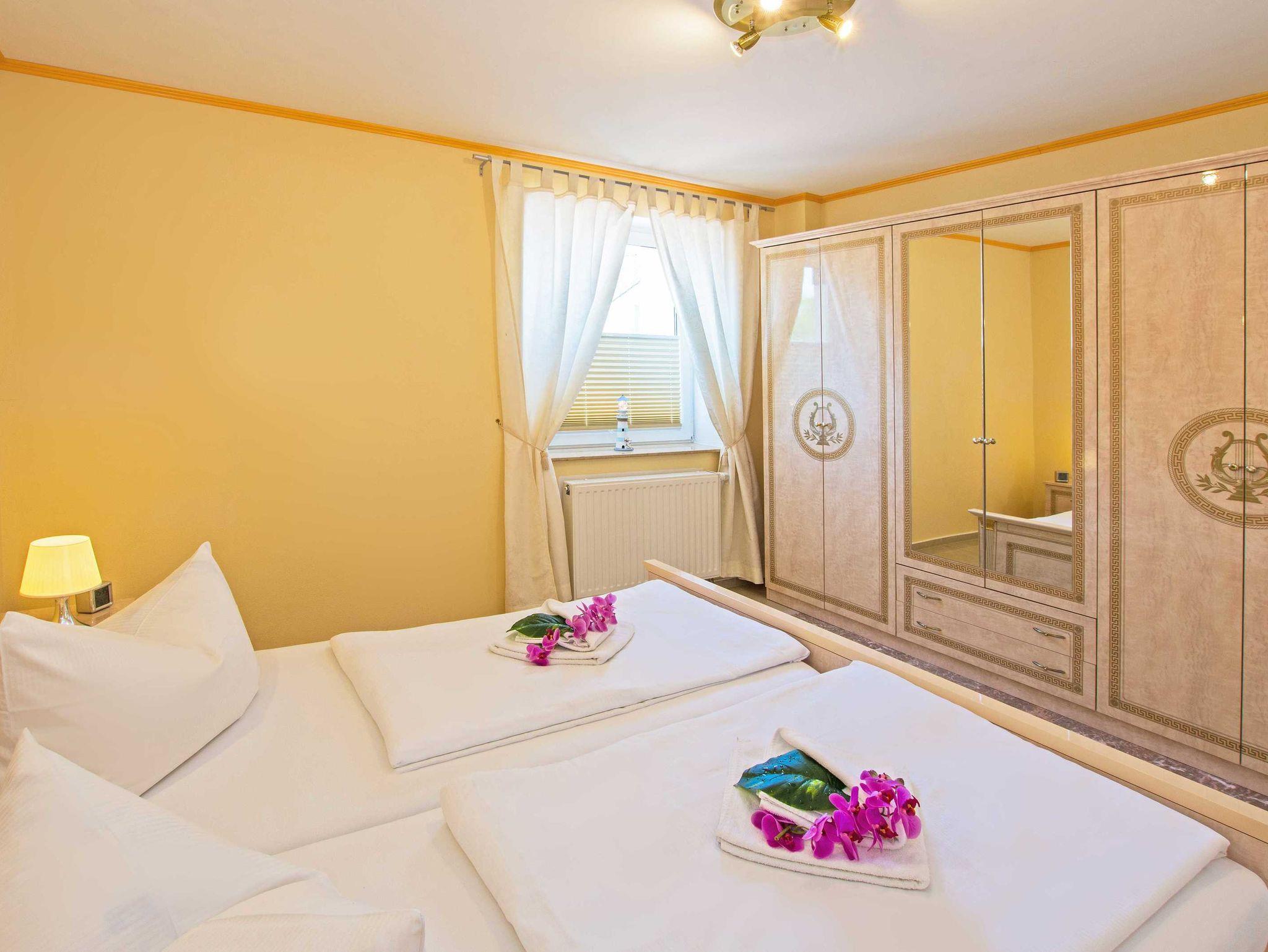 Im Erdgeschoss gelegen, unterteilt sich die Wohnung in ein Schlafzimmer mit einem großen Doppelbett, einen offenen Wohn-, Koch-, und Essbereich und ein Duschbad mit Handwaschbecken, Bidet und WC. Im Schlafzimmer finden Sie Komfort und Funktionalität im großzügigen Ehebett mit zwei Nachttischen und einem geräumigen Kleiderschrank mit Spiegeltüren.