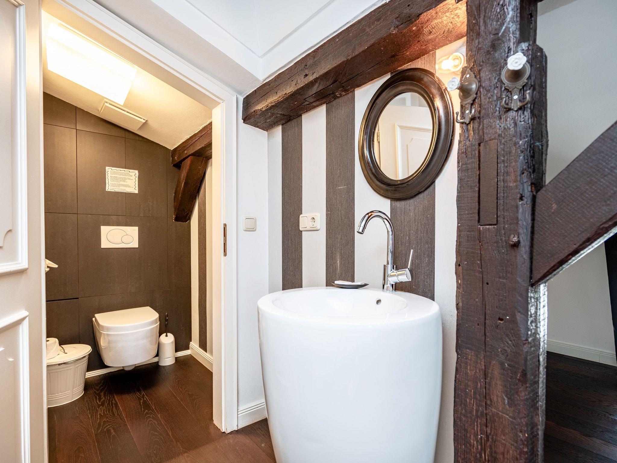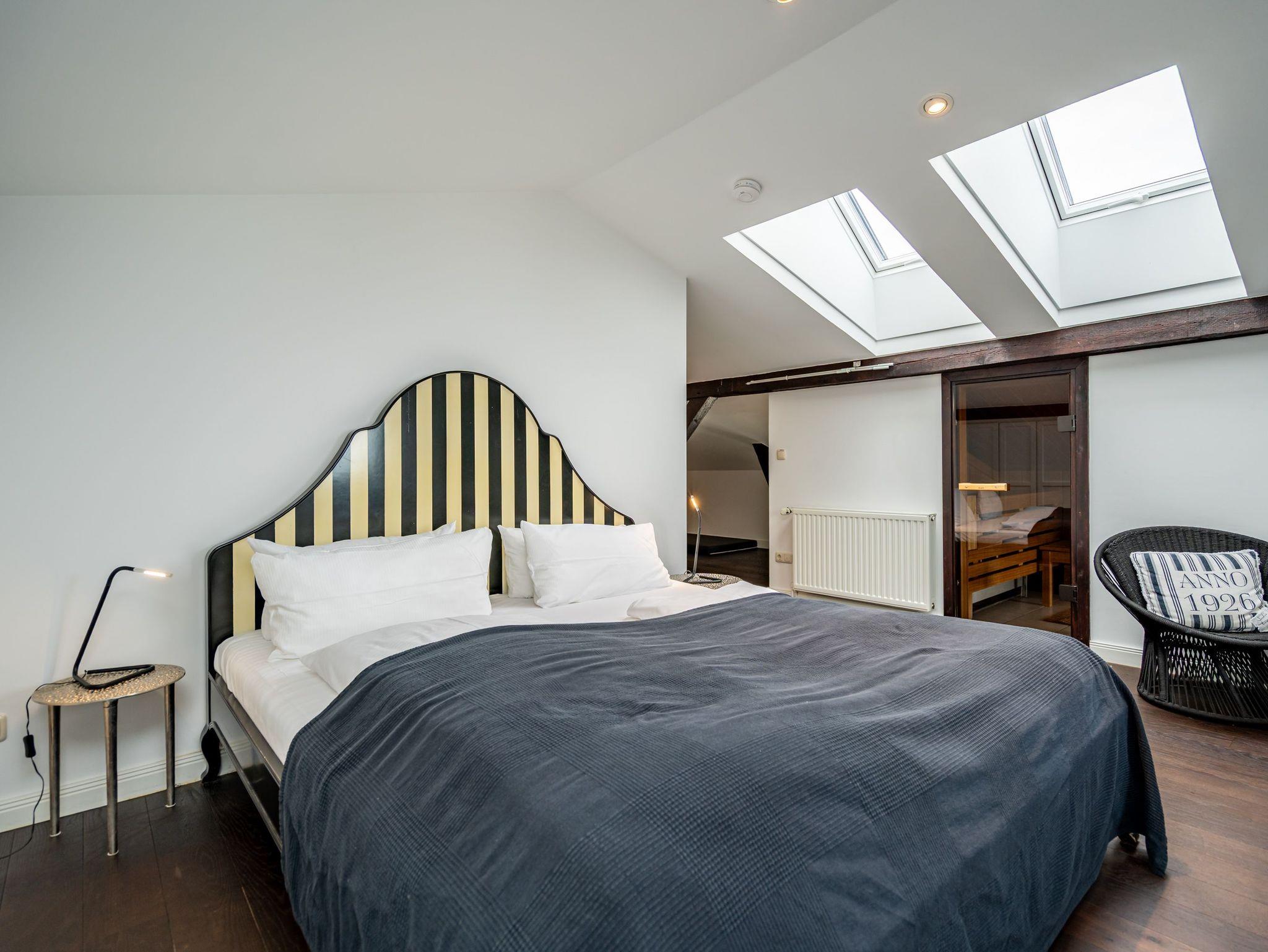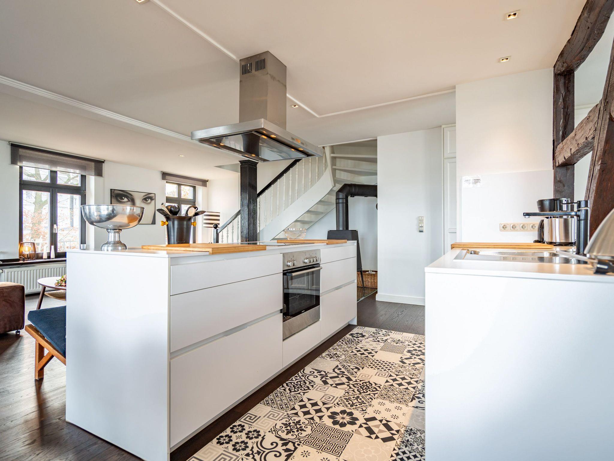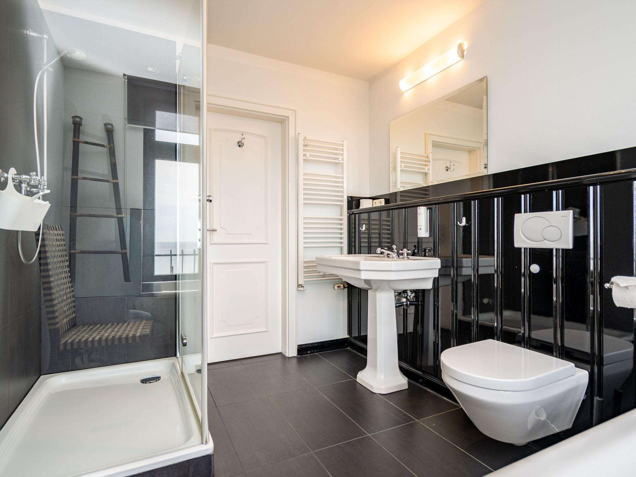 Black [&] White. Urbanes, frisches Leben, mitten in Heringsdorf. Für alle, die Außergewöhnliches lieben! Schwarzes Eichenparkett, stilvolle, moderne Möbel, ausgesuchte Designerstücke und dazu ein grandioser Meerblick. Die üppige 104 qm Maisonnette-Ferienwohnung hat noch mehr zu bieten. Ein großzügiger Wohnbereich mit Kamin und einer offenen, komplett ausgestatteten Küche empfängt Sie im unteren Bereich der Wohnung. Hier befindet sich auch das stilvolle Bad mit Badewanne und Dusche. Natürlich auch mit Meerblick. Zwei Balkone bieten Freiraum zum Sonne tanken. Unter dem Dach, in der zweiten Etage gibt es zwei Schlafzimmer. Das Kleinere gemütlich unter der Dachschräge mit einem Doppelbett (1,40m) und einer Schlafmatratze für ein Kleinkind. Das größere Schlafzimmer mit etwas mehr Platz, eigenem WC und frei stehendem Waschtisch, Schlafecke für ein Kind und einer Sauna mit Meerblick. Ein perfektes Hideway für 4 Erwachsene und zwei Kleinkinder (bis 3 Jahre). Ein PKW-Stellplatz steht auf dem abgeschlossenen Grundstück zur Verfügung.