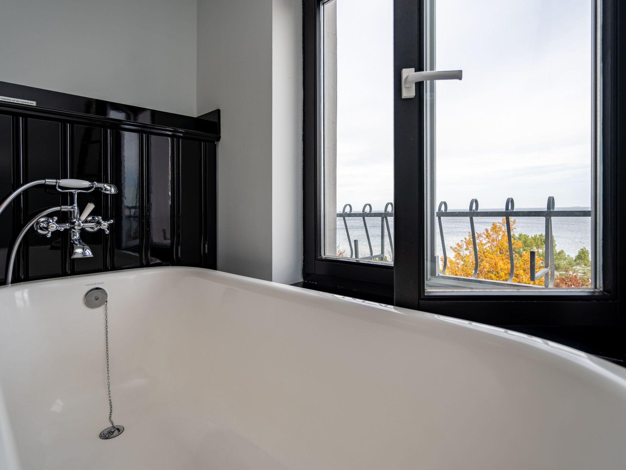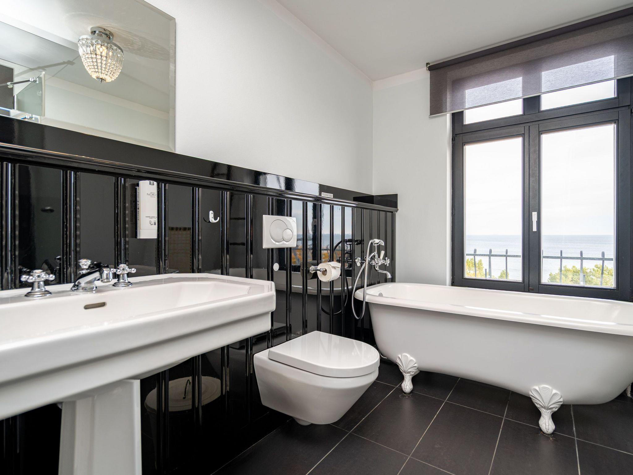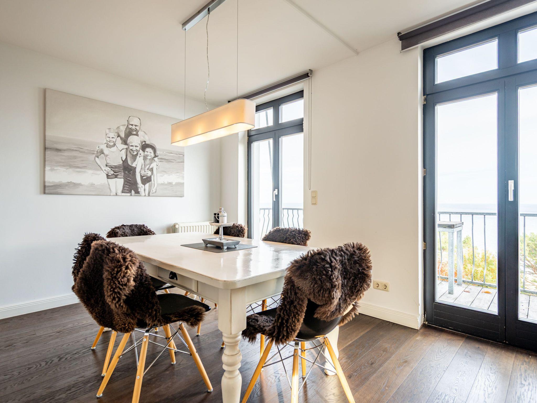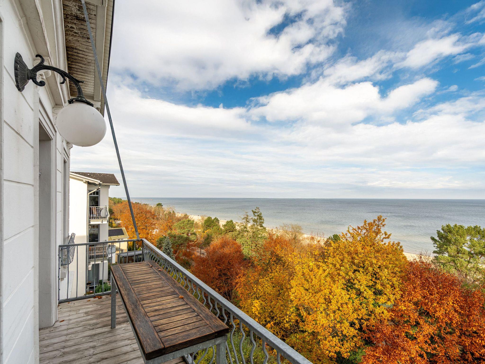 Villa Schering - außen klassisch, innen modern und stylisch. Urlauben Sie in einer stilvollen, kleinen Villa, direkt auf der Steilküste in bester Lage Heringsdorfs. Hier überzeugt neben der besonderen Ausstattung des Appartements, besonders der Blick auf die Ostsee, denn das Meer ist nur einen Steinwurf entfernt. Für die Wohnung steht ein kostenfreier Pkw-Stellplatz am Haus zur Verfügung. Münzwaschmaschine und Trockner können im Nachbarhaus genutzt werden.
