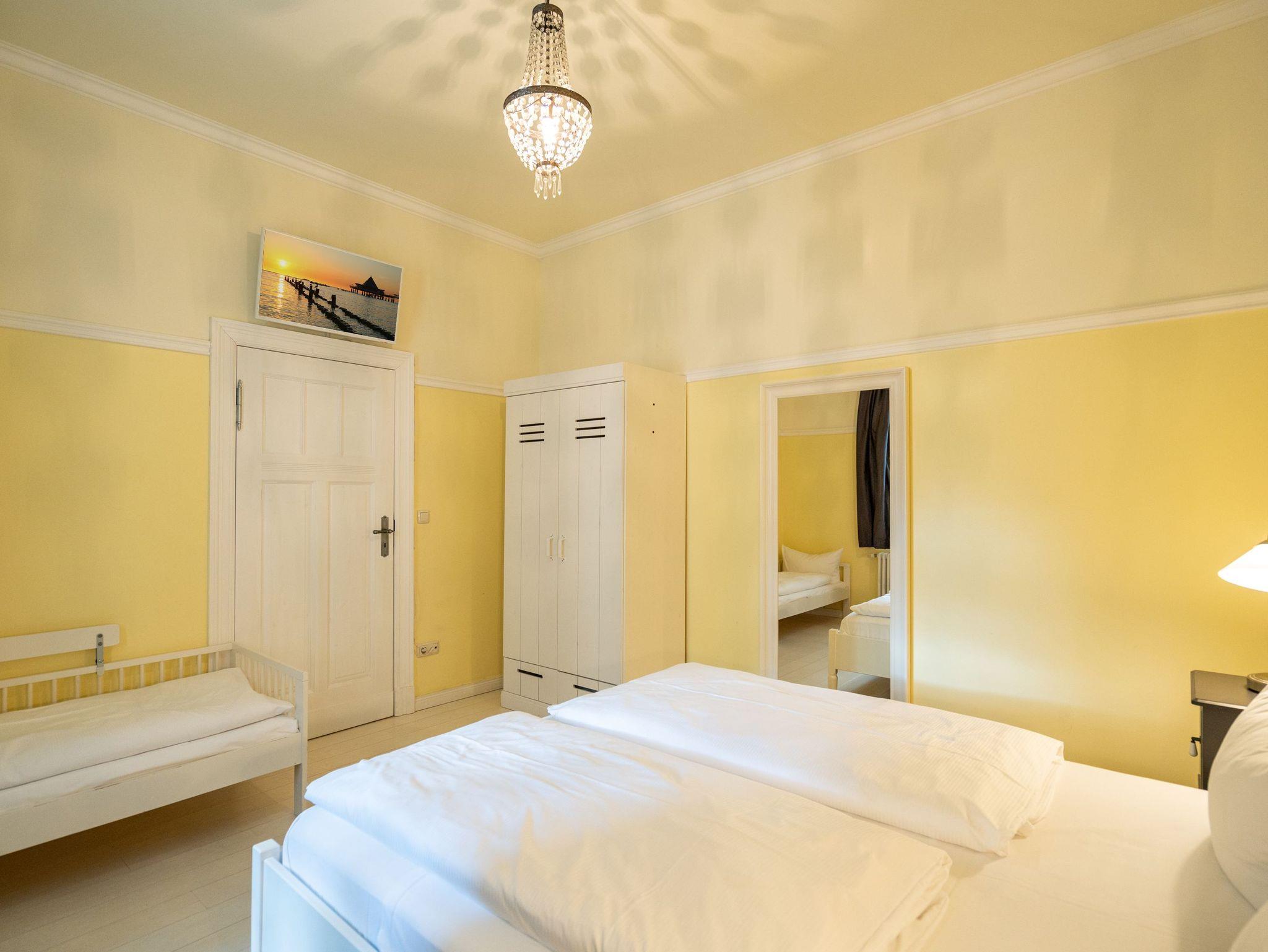 Leichtigkeit, Esprit und Charme versprüht unser neues Urlaubsdomizil im Erdgeschoss der Villa Saphira. Ob sie zu zweit oder mit kleiner Familie reisen (2 Erwachsene und 1 Kind bis 5 Jahre), diese 2-Raum-Ferienwohnung ( 59 qm) versprüht sogleich Urlaubsfreude. Helle Farben, ein weißer Holzfußboden und wunderbar kombinierte Möbel verleihen dem Appartement ein ganz besonderes Flair. Der hübsche Wohnbereich ist mit bequemer Sitzgruppe und Flat-TV ausgestattet, die seitliche kleine Veranda mit Bank und Tisch lädt zum Verweilen ein. Das Schlafzimmer mit Doppelbett (1,60m x 2,00m) bietet außerdem eine Schlafmöglichkeit durch ein zusätzliches Juniorbett (0,70m x 1,60m). Die Küche mit angrenzender Terrasse (mit Gartenmöbeln ausgestattet und zur Südseite gelegen) findet in der zweiten Veranda Platz. Luftig und hell mit einer schönen Essgruppe gestaltet, lädt sie ein, ganz entspannt in den Tag zu starten und dabei den Blick auf die Heringsdorfer Promenade zu genießen. Die Wohnung wird komplettiert mit einem Wellnessbad mit einer Finnischen Sauna, Dusche, WC und Waschbecken. Ein Pkw-Stellplatz befindet sich direkt am Haus. Auf Nachfrage ist es möglich ein 2. Kind ( bis 2 Jahre im Kinderreisebett) mitzubringen. Bei Ihrer Anreise sind die Betten bezogen und Handtücher liegen bereit (als Erstausstattung). Das WLAN-Netz im Haus kann kostenfrei genutzt werden. Für den Tag am Meer steht Ihnen von Mitte Mai bis September (je nach Witterung) ein Strandkorb am Strand zur Verfügung. Sie planen einen größeren Familienausflug - dann lässt sich diese Wohnung super mit der Wohnung 07 ( im Obergeschoss) kombinieren. Beide Appartements befinden sich in einem Haus und sind über den selben Haupteingang zu nutzen.