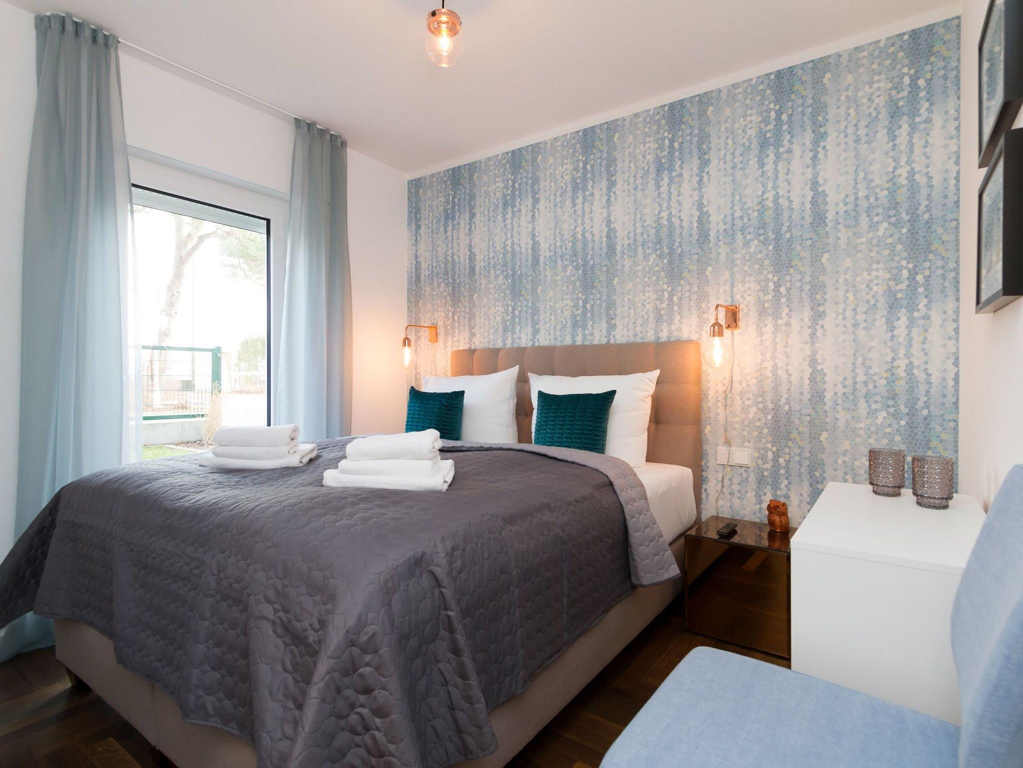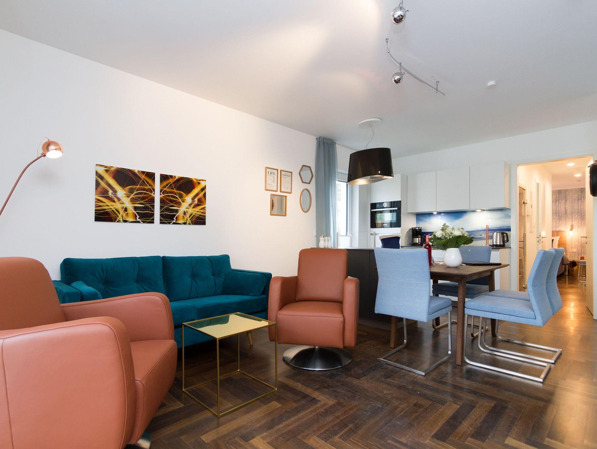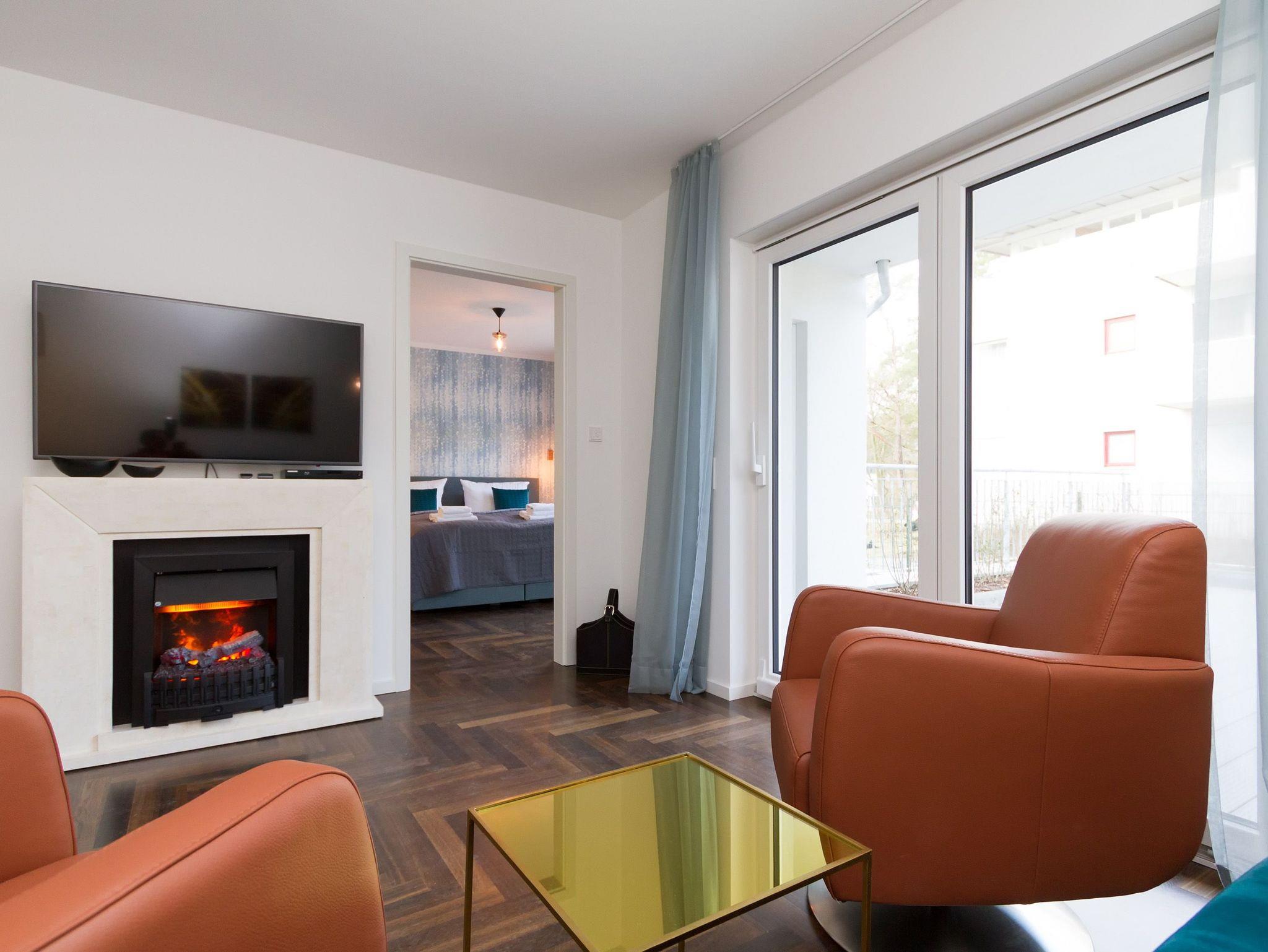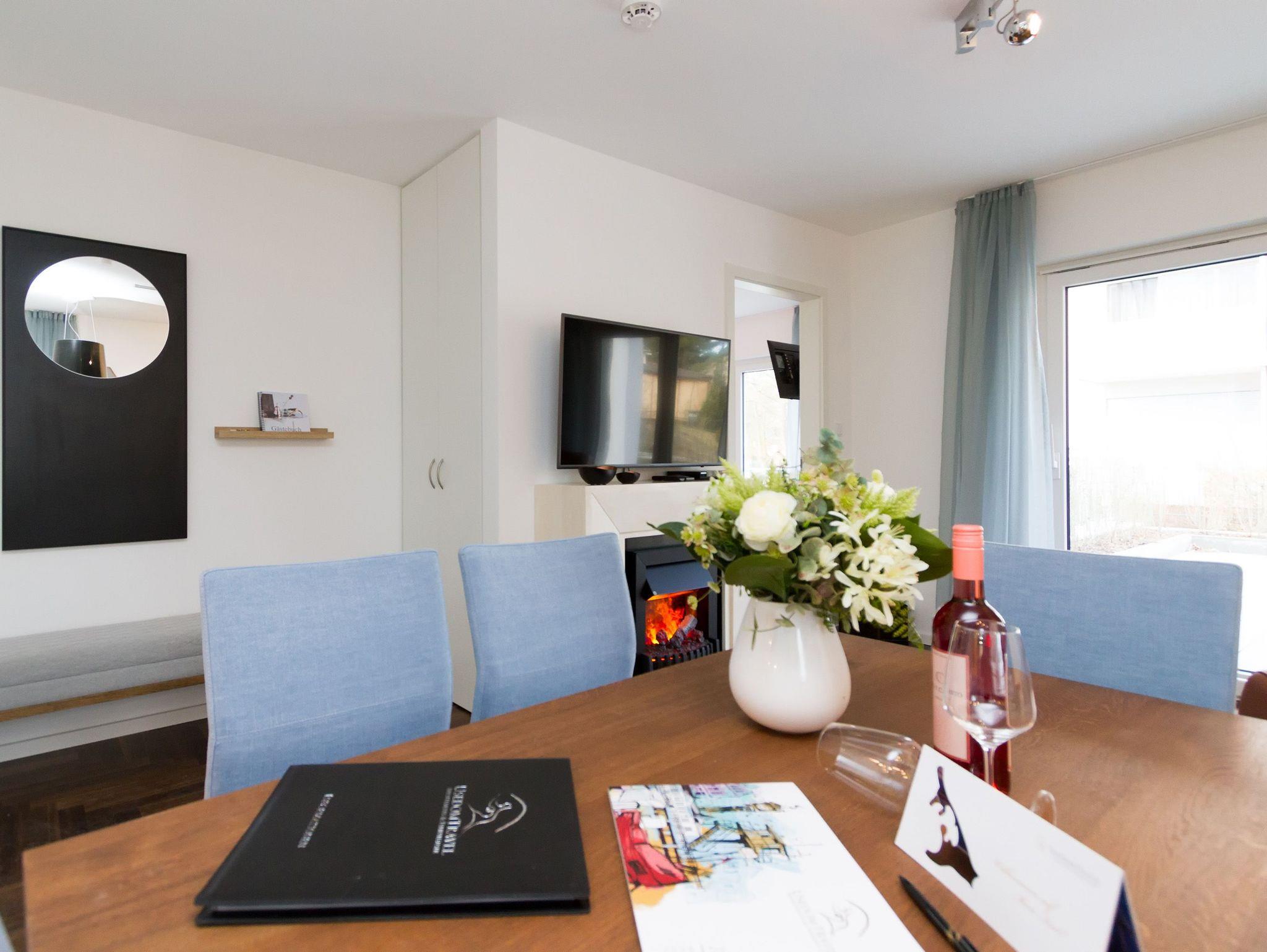In der Ferienwohnung 01 (Erdgeschoss) erwartet Sie eine frische, moderne Urlaubswelt, die durch Hochwertigkeit, Stil und geschmackvolle Ausstattung überzeugt. Klare Linien - dennoch kuschelig, moderne Farben und cooler Style. Die von Innenarchitektenhand designte 3-Raum-Ferienwohnung (60 qm) ist für 2 bis 4 Personen (inklusive Kleinkind) ideal, um erholsame Tage auf Ihrer Lieblingsinsel zu verbringen. Schon nach dem Eintreten öffnet sich der Blick in den Wohnbereich mit gemütlicher Sitzgruppe, Flat-TV und modernem Elektrokamin, der per Knopfdruck Wohlfühlatmosphäre schafft. Der gut ausgestattete Küchenbereich mit schönem Essplatz schließt sich an. Das erste Schlafzimmer ist mit einem komfortablen Boxspringbett (1,80m x 2,00m), Einbauschrank und Flat-TV ausgestattet. Von hier hat man ebenfalls Zugang zur Terrasse und zum eigenen kleinen Duschbad mit WC. Das zweite Schlafzimmer verfügt über ein komfortables Boxspringbett (1,60m x 2,00m) und einen Flat-TV, auch hier steht ein eigenes Duschbad mit WC zur Verfügung. Klein aber fein, die wohnungseigene Sauna bietet nicht nur in der kalten Jahreszeit eine erholsame Abwechslung. Das Appartement punktet nicht nur innen, auch die großzügige Nord-West Terrasse (20qm) verspricht Usedomer Sonne, ausgestattet mit wertigen Gartenmöbeln und einem Strandkorb, lässt es sich hier wunderbar entspannen. Für Ihren Komfort sind die Betten bei der Anreise bezogen und Handtücher liegen bereit. Ein Pkw-Stellplatz steht in der Tiefgarage zur Verfügung (max. Einfahrtshöhe 1,93 m). Für den Tag am Meer steht Ihnen als besonderes Bonbon von Mitte Mai bis Ende September (je nach Witterung) ein Strandkorb am Strand kostenlos zur Verfügung.