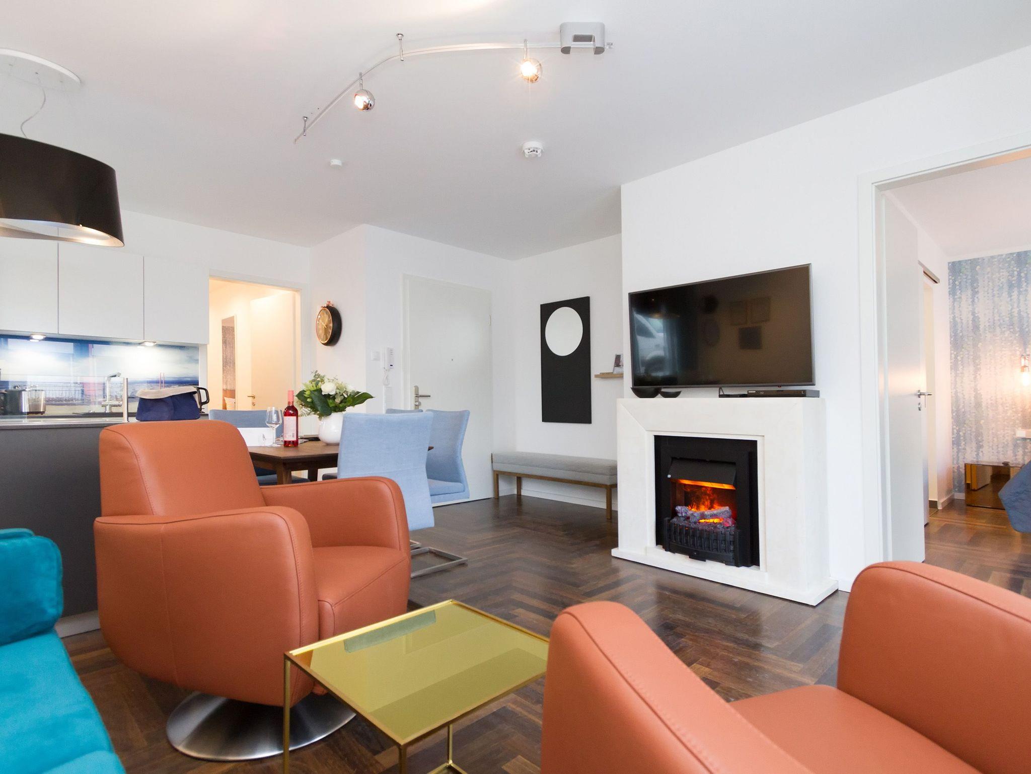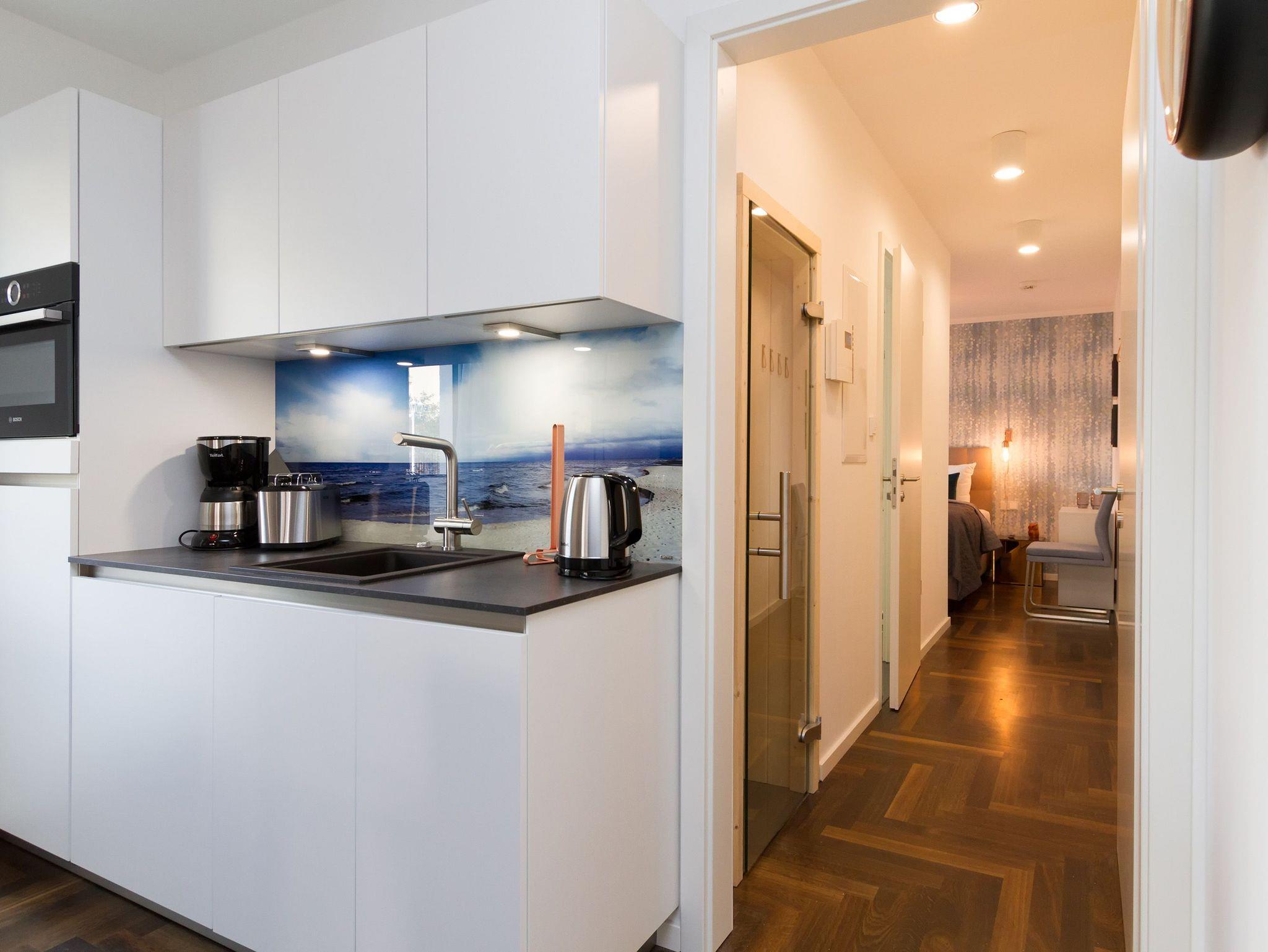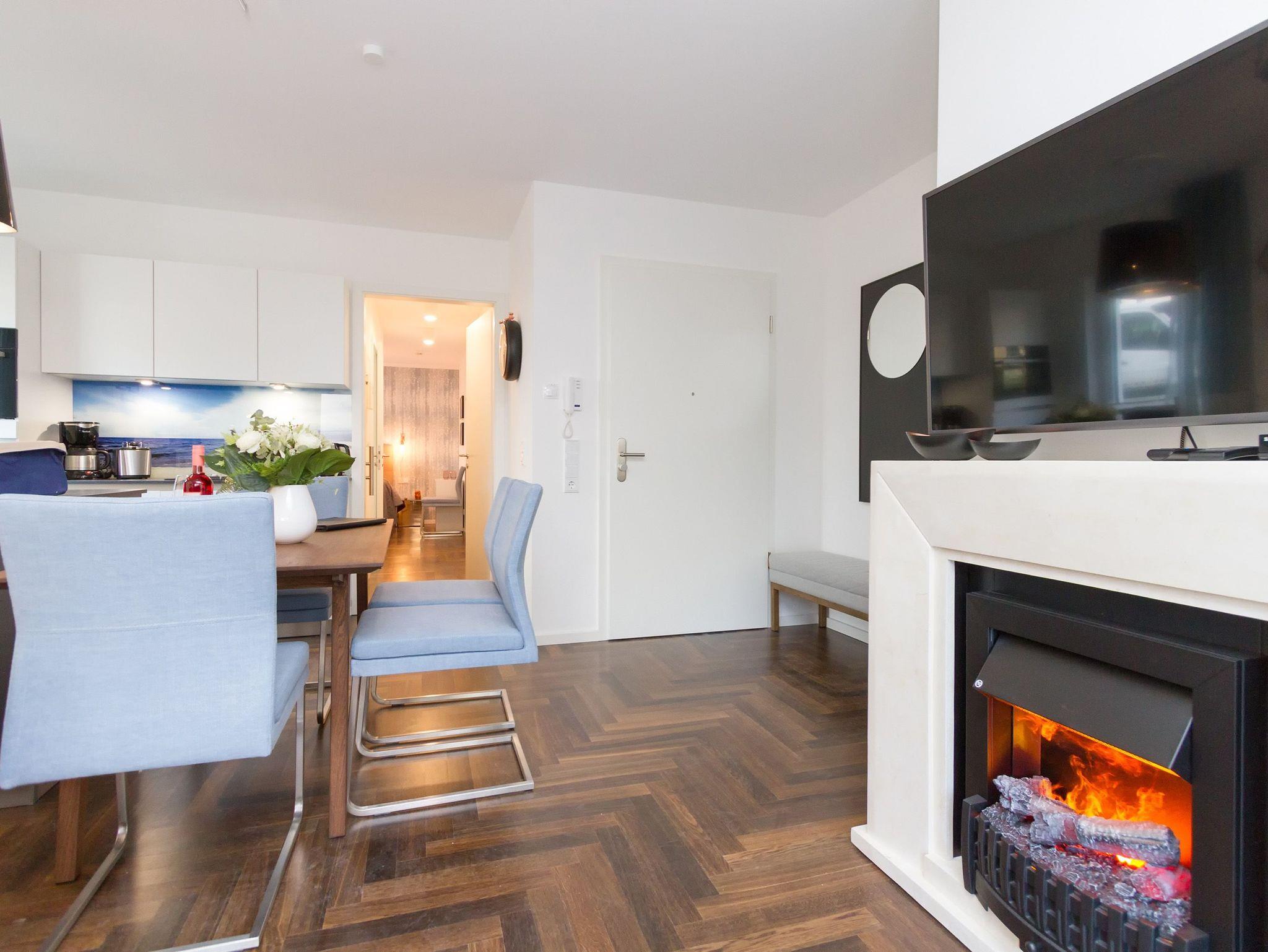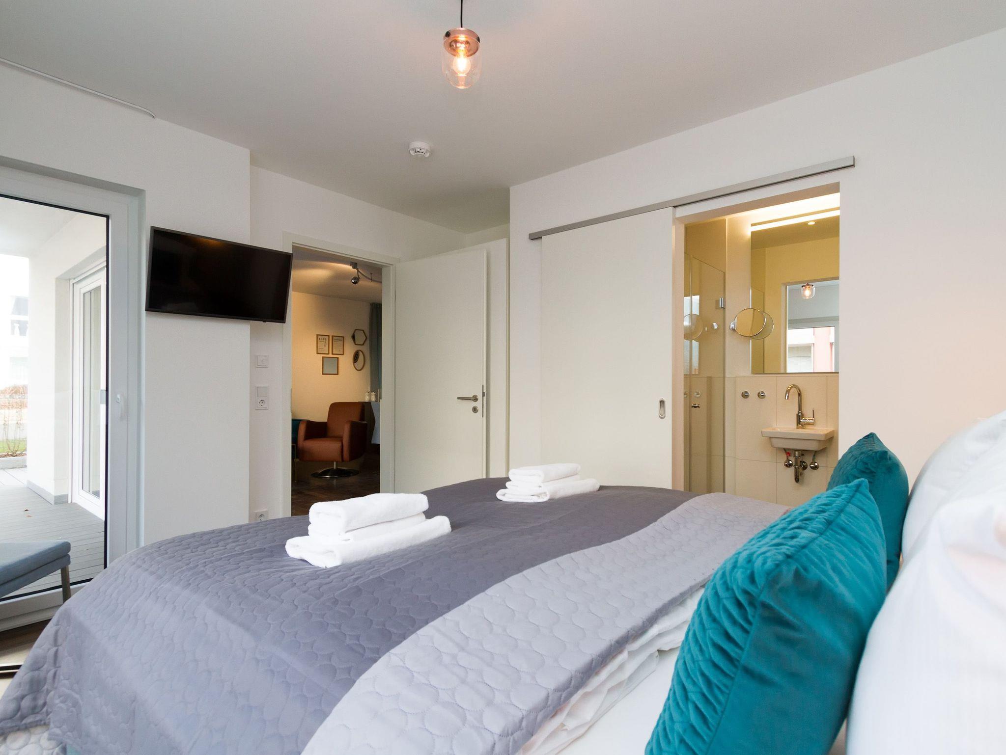 In der Ferienwohnung 01 (Erdgeschoss) erwartet Sie eine frische, moderne Urlaubswelt, die durch Hochwertigkeit, Stil und geschmackvolle Ausstattung überzeugt. Klare Linien - dennoch kuschelig, moderne Farben und cooler Style. Die von Innenarchitektenhand designte 3-Raum-Ferienwohnung (60 qm) ist für 2 bis 4 Personen (inklusive Kleinkind) ideal, um erholsame Tage auf Ihrer Lieblingsinsel zu verbringen. Schon nach dem Eintreten öffnet sich der Blick in den Wohnbereich mit gemütlicher Sitzgruppe, Flat-TV und modernem Elektrokamin, der per Knopfdruck Wohlfühlatmosphäre schafft. Der gut ausgestattete Küchenbereich mit schönem Essplatz schließt sich an. Das erste Schlafzimmer ist mit einem komfortablen Boxspringbett (1,80m x 2,00m), Einbauschrank und Flat-TV ausgestattet. Von hier hat man ebenfalls Zugang zur Terrasse und zum eigenen kleinen Duschbad mit WC. Das zweite Schlafzimmer verfügt über ein komfortables Boxspringbett (1,60m x 2,00m) und einen Flat-TV, auch hier steht ein eigenes Duschbad mit WC zur Verfügung. Klein aber fein, die wohnungseigene Sauna bietet nicht nur in der kalten Jahreszeit eine erholsame Abwechslung. Das Appartement punktet nicht nur innen, auch die großzügige Nord-West Terrasse (20qm) verspricht Usedomer Sonne, ausgestattet mit wertigen Gartenmöbeln und einem Strandkorb, lässt es sich hier wunderbar entspannen. Für Ihren Komfort sind die Betten bei der Anreise bezogen und Handtücher liegen bereit. Ein Pkw-Stellplatz steht in der Tiefgarage zur Verfügung (max. Einfahrtshöhe 1,93 m). Für den Tag am Meer steht Ihnen als besonderes Bonbon von Mitte Mai bis Ende September (je nach Witterung) ein Strandkorb am Strand kostenlos zur Verfügung.